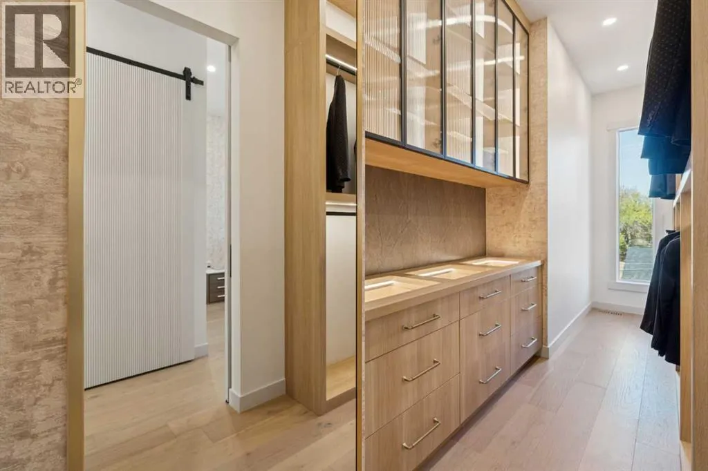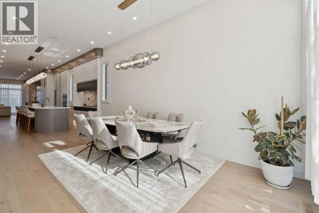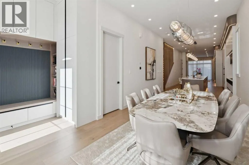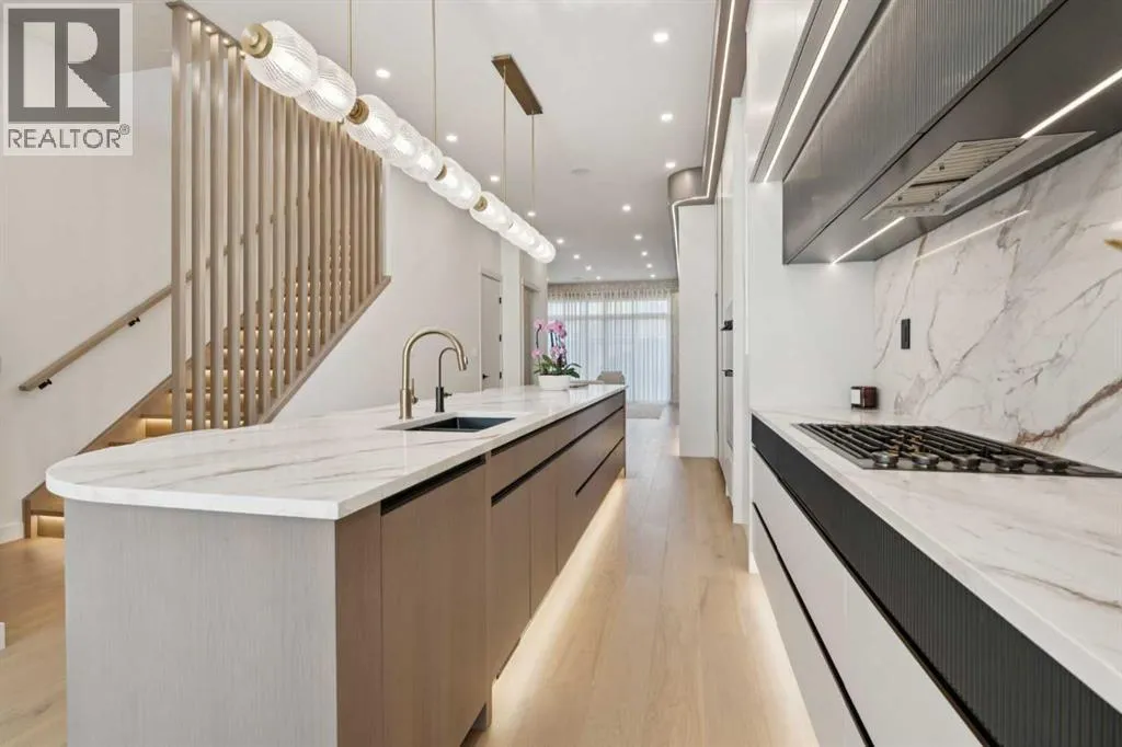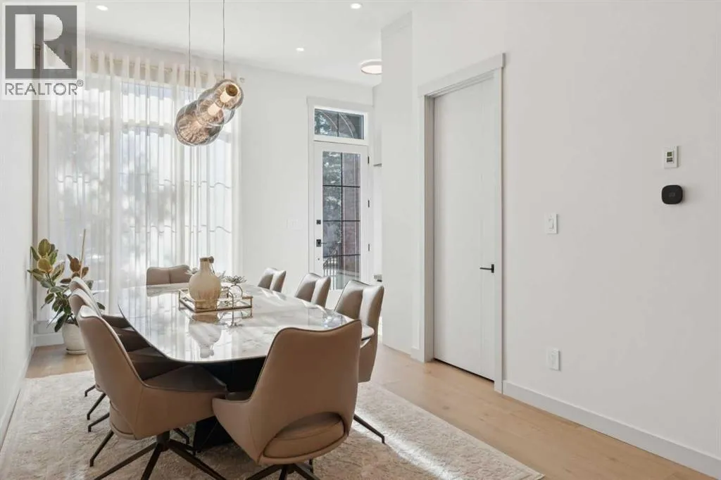 Modern Luxury Meets Urban Living in InglewoodWelcome to this stunning brand-new detached home in one of Calgaryâs most sought-after inner-city communities â Inglewood. Thoughtfully designed and originally built by the owner for his own family, this residence showcases an extraordinary level of craftsmanship and detail rarely found in new construction.Step inside to a bright, open-concept main floor featuring 11-foot ceilings, large-plank white oak engineered hardwood, and floor-to-ceiling custom storage. The inviting front patio sets the tone for urban living, perfect for morning coffee or evening conversation. The chef-inspired kitchen is an entertainerâs dream, complete with an oversized island, Fisher & Paykel built-in refrigerator, Cove/Sub-Zero dishwasher, 6-foot wine fridge, and elegant glass-enclosed lighted shelving. A cozy gas fireplace, natural stone powder room with smart bidet toilet, and functional side entrance mudroom with built-in seating complete the main floor.Upstairs, natural light floods the space through expansive windows. A flex/bonus area offers versatility for an office or reading nook. The primary retreat is a true sanctuary featuring a freestanding soaker tub, dual vanities, glass-enclosed steam shower with heated floors, and a custom walk-in closet with floor-to-ceiling built-ins, lighted glass drawers, and cupboards. Enjoy breathtaking views of the Bow River and nearby park â a rare find in urban living. Two additional bedrooms, each with their own 3-piece ensuite and custom walk-in closets, provide exceptional comfort and privacy. The laundry room with extra storage and sink adds convenience to the upper level.The fully developed basement offers incredible flexibility with two bedrooms (one with a private ensuite), an additional 3-piece bath, full kitchen with Samsung stainless steel appliances, separate laundry, and roughed-in in-floor heating. While currently set up as an illegal suite, it includes a dedicated side entrance and al l the essentials should a future owner wish to pursue legal secondary suite status.Outside, the backyard oasis features a large vinyl deck, low-maintenance landscaping with exposed concrete, and a detached double garage equipped with a dedicated electrical panel and dual overhead doors â ideal for entertaining or practical use.Additional features include a high-end New York lighting package, $9,000 water softener and filtration system, and separate Nu-Air HRV systems for both upper and lower levels.Ideally located in vibrant Inglewood, youâll enjoy easy access to parks, pathways, shops, restaurants, and downtown Calgary â all while embracing the best of inner-city living. (id:27476)