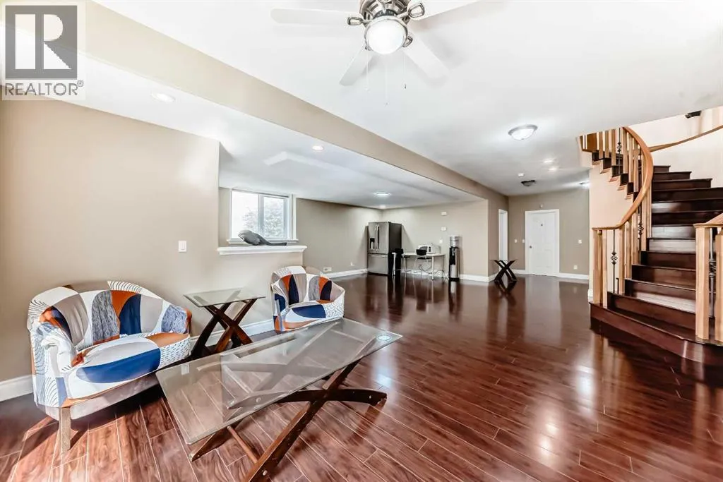 Welcome to this stunning, high-class luxury bungalow offering exceptional comfort and convenience!Brand New paved driveway! Brand New water heater! Ideally located just minutes from top-rated public and private schoolsâincluding Griffith Woods School, Ernest Manning High School, Rundle College, and Webber Academyâthis beautiful home is surrounded by all the essentials. You'll find a nearby bus stop, the WB 69 Street C-Train Station, shopping centers, and Westside Recreation Centre just steps away.This elegant bungalow features over 3,300 sq ft of total living space with Central Air Conditioner and two furnaces, an open floor plan with expansive views, and a sunny south-facing backyard backing onto a large green space.The main floor boasts brand-new water-proof engineered hardwood flooring and 9â to 11â high ceilings throughout. Enjoy a spacious living room, formal dining area, and a large kitchen complete with built-in stainless steel appliances, granite countertops, and an island breakfast bar that opens to a bright, sunny deck. The main level also includes a luxurious primary bedroom with serene green views, a walk-in closet, and a 5-piece ensuite (jetted tab), plus second bedroom and a full bathroom.A striking spiral staircase leads to the fully developed basement with a separate entrance. This level offers 9â ceilings, three additional bedrooms plus one office, two full bathrooms (one is jetted tab), a second washer and dryer set, one BRAN NEW hot water heater, two furnaces, a large entertainment area, and access to a private concrete patioâperfect for guests or extended family. There is Low-maintenance landscaping in both the front and backyards add to the ease of living.Great to live in. Great to invest. (id:27476)