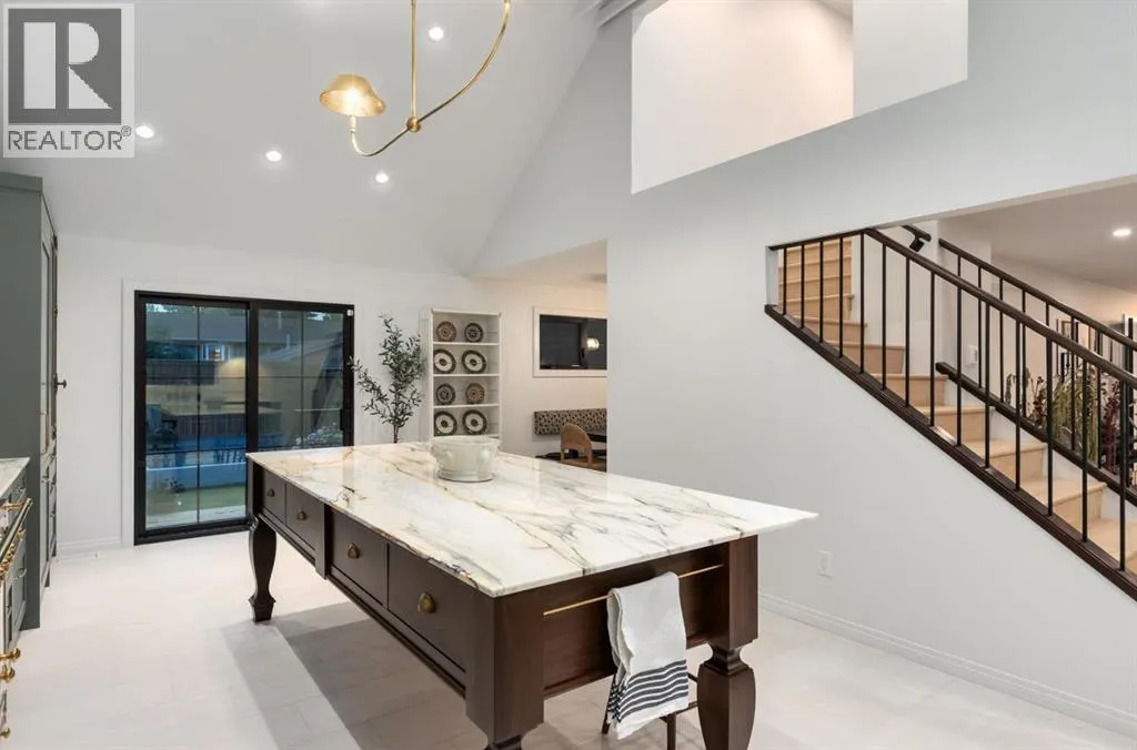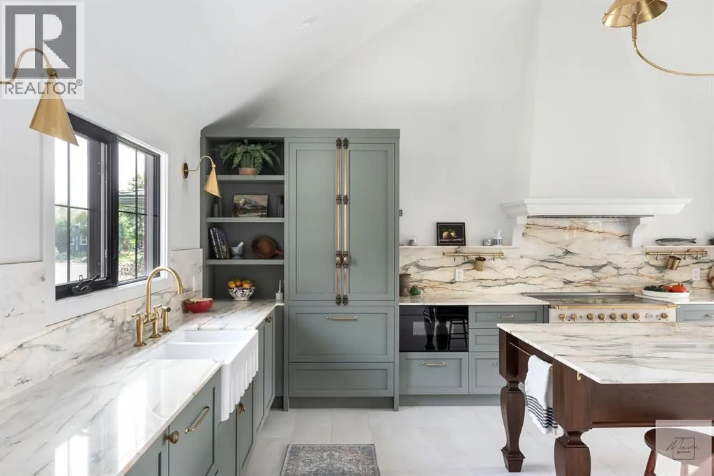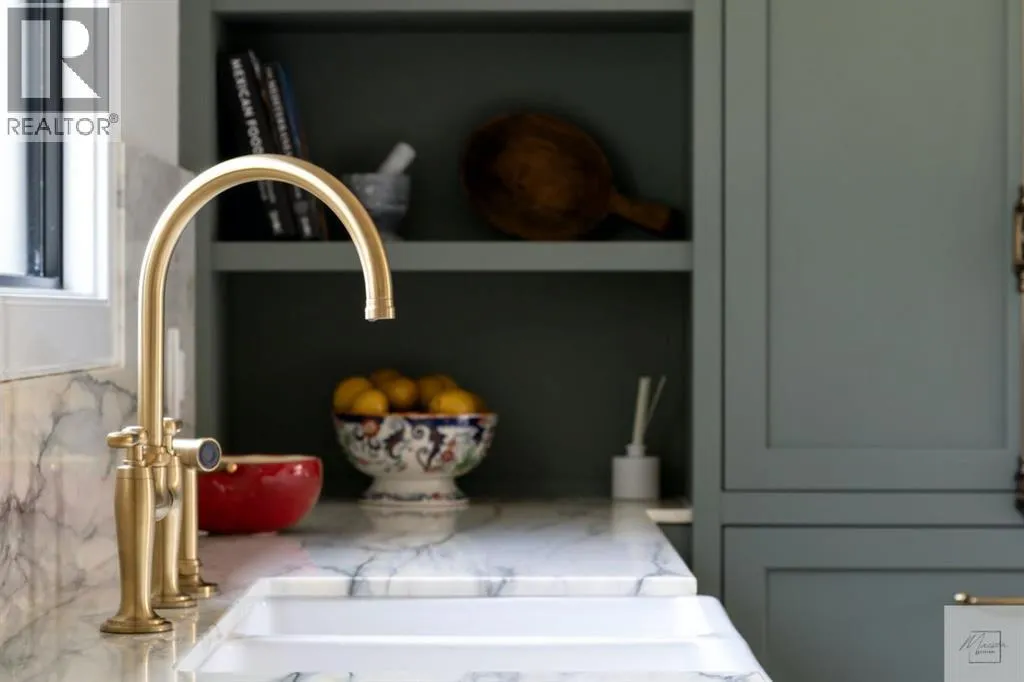 Wow! This stunning completely renovated two storey home has over 3,000 sq ft of total living space and sits on a full size estate lot designed with exceptional and sophisticated taste that will be sure to leave a lasting impression. One of the most anticipated homes to come to market, this executive home stands out from all the rest and is crafted by design firm Maison Artisanal in a forever dream location. Upon entry you are greeted with a modern & old world charm elegance, exceptional details of designer features, custom front door, flat ceilings with custom mouldings, tile + original oak flooring, black framed LUX windows, bright + open contemporary living area w/ a soothing fireplace with imported Louis XV marble surround, front office or bedroom or flex room, hardwood encased stairwell with custom hand crafted railings, large dining room with custom bench seating, designer lighting with transom window poised to host many dinner nights with friends + family enjoying the sculpted interior lines of the show stopper magazine quality kitchen with oversized full height chimney reaching the full height vaulted ceilings with open gable, full Paonazzo imported marble slab island (5 slabs total) with dairy table island with cup pull antique brass handles, shaker cabinetry with Broughtons of Leicester hardware, Gaggenau panel fridge, imported 43' La Cornue induction stove, loads of marble counter space, high end fixtures, Fisher Paykel drawer microwave, double drawer dishwasher, drawer freezer, great storage & fabulous pot lighting! You will enjoy the mudroom with built-in lockers, and at the end of the hall is a spectacular 3 pc washroom with exceptional quality details and shower. Upstairs has a overlook to the kitchen, primary vintage chic suite with fireplace, large spacious walk-in closet with custom closet builtins + steam closet, a luxurious spa ensuite with custom shower w/ 10 mm glass, imported tile, soaker tub, modern fixtures, gorgeous double walnut vanity, and heated tile floors with towel rack. Across the hall is a large second bedroom with good closet space and high end 4-piece Jack + Jill washroom with designer lighting and tile that meets the other spacious bedroom plus upper laundry. Lower area features a fully finished entertainers dream space that hosts a recreation area with custom builtin bench seating, amazing custom bar with full size wine fridge, brass inlay, gym, family fun games area, second laundry area, 3 piece washroom, large storage, spacious 5th bedroom with egress windows, and high end mechanical. While you are taking it all in donât miss the upgrades such as the landscaping, custom composite exterior, EV charger, rough-in AC/ solar panel, sumps pump, HRV, cat 6 throughout, high end roof + windows + access to your new oversized double car garage, over 55k appliance package, west facing yard with deck, huge front concrete patio overlooking greenspace, original oak floors, built-ins, estate level finishing & so much more! A must to see! (id:27476)