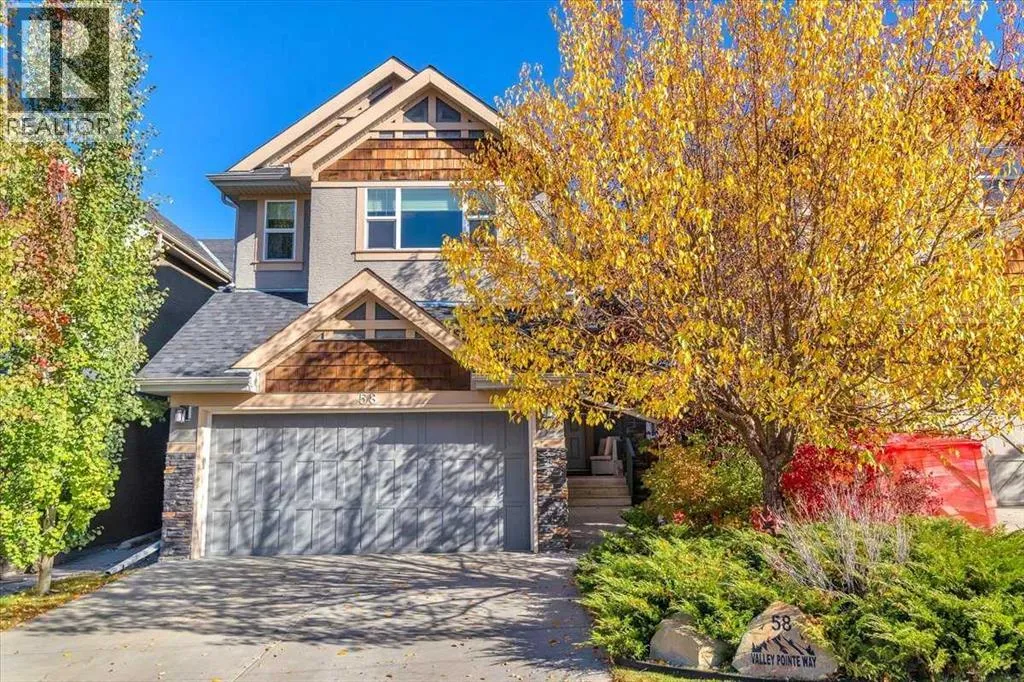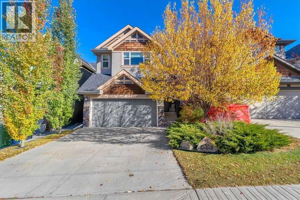 This meticulously cared for former show home is located in Valley Pointe Estates within the desirable golf course community of Valley Ridge. Situated on a quiet child friendly street and BACKING ONTO A GREEN SPACE - this property is perfect for families. The open kitchen is beautiful and has an abundance of cabinetry and counter space, complimented by high end appliances including a stove (2024), fridge (2019) and Bosch dishwasher (2025). The kitchen is further enhanced by granite countertops, an island featuring built-in wine storage, roughed in for gas stove and a large walk-in pantry, making it ideal for both meal preparation and entertaining. Adjacent to the kitchen, the spacious eating area has a garden door that leads out to a tiered deck. Here, you can unwind under a cozy pergola and enjoy the privacy of a fully fenced backyard, perfect for outdoor gatherings, play, and relaxation. Upstairs features three great sized bedrooms and a spacious bonus room with VAULTED CEILINGS, lots of windows and a built-in office space. The king sized primary bedroom is approx. 14' x 14' and has a relaxing ensuite with a corner soaker tub and separate shower. This home also has 9' ceilings, a newer washer and dryer, new roof in 2025, central air and an irrigation system. NOTHING TO DO BUT MOVE IN and enjoy quick easy access to schools, downtown, the mountains, The Farmer's Market and all conveniences. (id:27476)