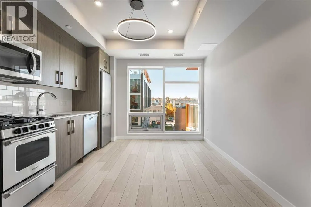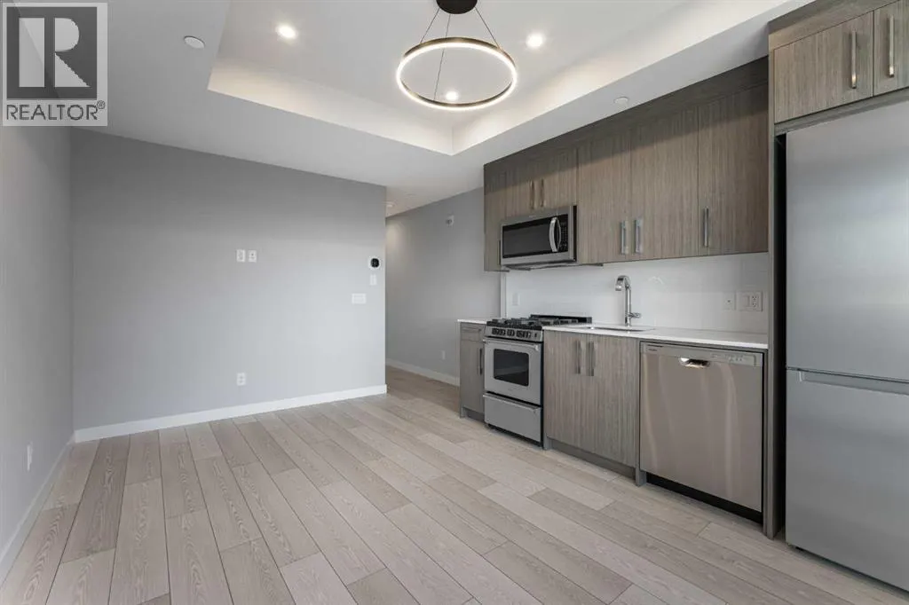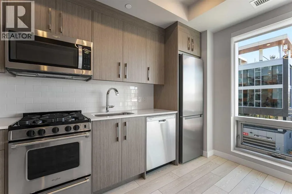 Welcome to a newly constructed 1 bedroom, 1 bathroom condo in Kensington, recognized as one of Calgary's finest neighborhoods for its exceptional combination of walkability, local character, culture, and access to green spaces. The unit boasts attractive upgrades, including a quartz countertop, central air conditioning, a gas stove, all stainless-steel appliances, a white front load washer/dryer, and a 4-piece bathroom. It includes a titled parking space underground. Residents can also utilize a fitness center, bike storage, visitor parking, and a beautifully landscaped terraceâperfect for staying active and engaging with the community. Nearby amenities include the Bow River and its pathway, downtown, Foothills Hospital, cafes, dining options, and much more. (id:27476)