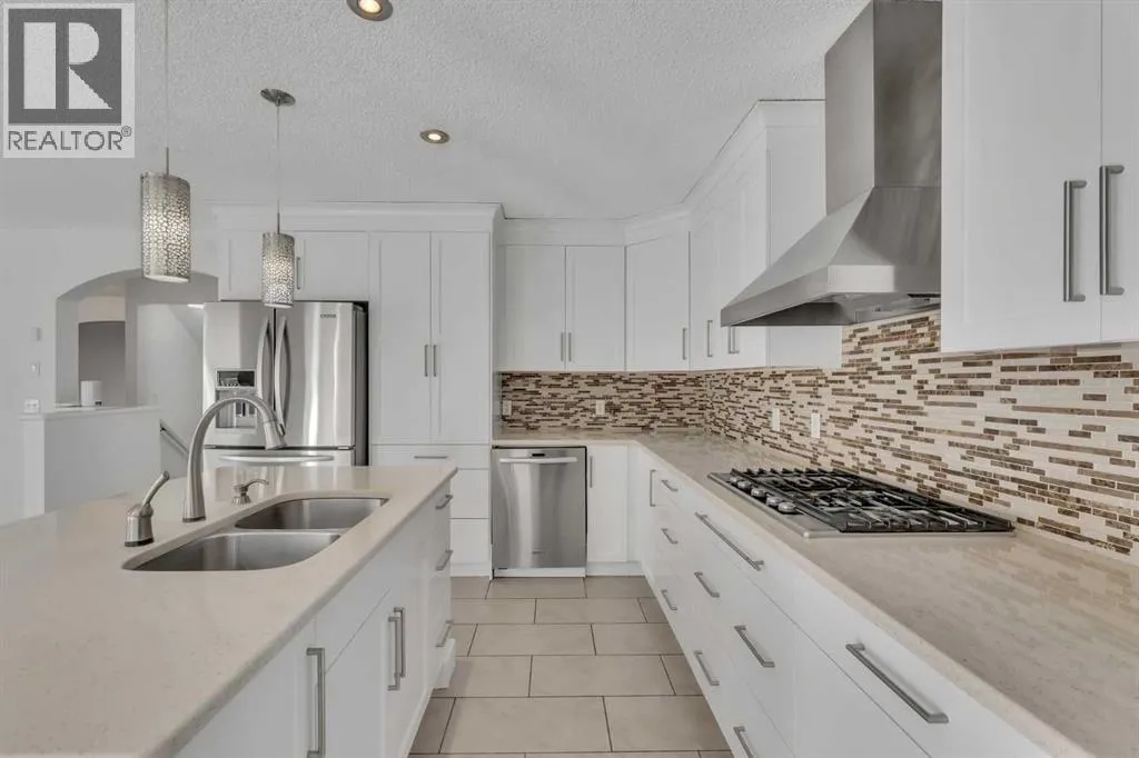 Welcome to this spacious and beautifully maintained family home in sought-after Panorama Hills! Offering a total of 5 bedrooms and 3.5 bathrooms, this home has room for everyone. The main floor features a bright and open layout with both a formal living and dining room, plus a den ideal for a home office or study space. The renovated kitchen is the heart of the home â boasting gleaming white cabinetry, quartz countertops, a large island, and stainless steel appliances including a wall oven. It opens to a cozy breakfast nook, perfect for casual family meals. Upstairs, youâll find 4 generously sized bedrooms, including the primary suite with a walk-in closet and 4-piece ensuite. The fully developed lower level offers a large recreation room with a wet bar, an additional bedroom, and a full bathroom â ideal for guests or teens. Enjoy the outdoors in the big backyard, with plenty of space for kids to play and summer entertaining. Located close to schools, parks, and all the amenities Panorama Hills has to offer, this is the perfect place for a growing family to call home! (id:27476)