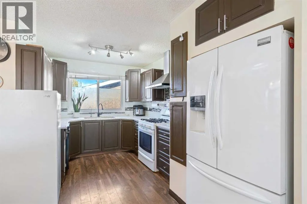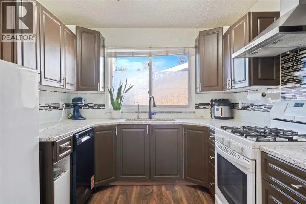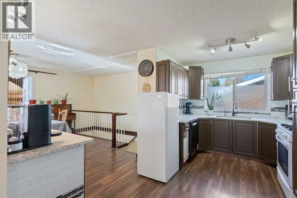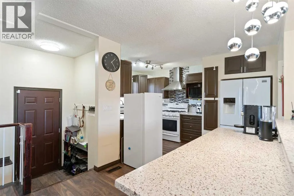 ***$25,000.00 Price Drop***Beautifully Updated 2500 sqft of living space 5-Bedroom Bungalow with Suite Potential in PineridgeExtensively updated bungalow located on a quiet street in the established community of Pineridge. This home offers 5 bedrooms, 3 full bathrooms, and a separate side entranceâideal for extended family living or future suite potential (subject to City approval).Exterior updates include newer siding, Eldorado Dark Rundle stone accents, windows (approx. 6 years), shingles (approx. 7 years), and an oversized double detached garage with a custom door, furnace, and built-in shelving (approx. 6 years).The main level features an open-concept layout with a spacious living and dining area centered around a stone-faced fireplace. The upgraded kitchen includes granite countertops, a gas stove, ceiling-height backsplash, and a breakfast bar. Three bedrooms on the main level, including a generous primary suite with a 4-piece ensuite, plus an additional full bathroom.The fully developed basement offers two more bedrooms with egress windows (approx. 4 years), a large recreation/work area, a wet bar, a third full bathroom, and shared laundry. Newer vinyl flooring throughout the lower level.Situated on a large lot with low-maintenance landscaping, RV parking, a 14x10 gazebo on a custom platform, a newer fence (approx. 4 years), and paved rear lane access. Convenient location within walking distance to schools, parks, Village Square Leisure Centre, transit, and quick access to Stoney Trail. (id:27476)