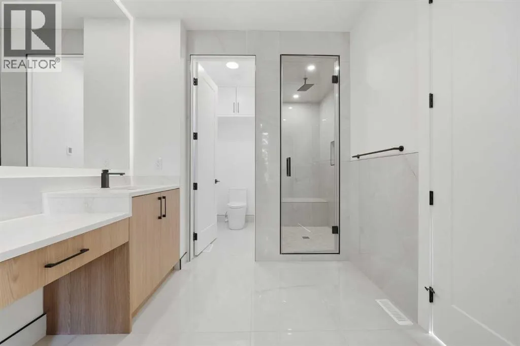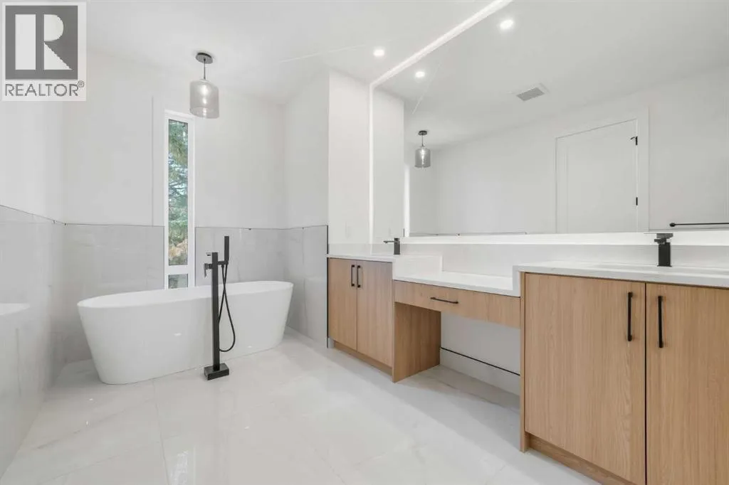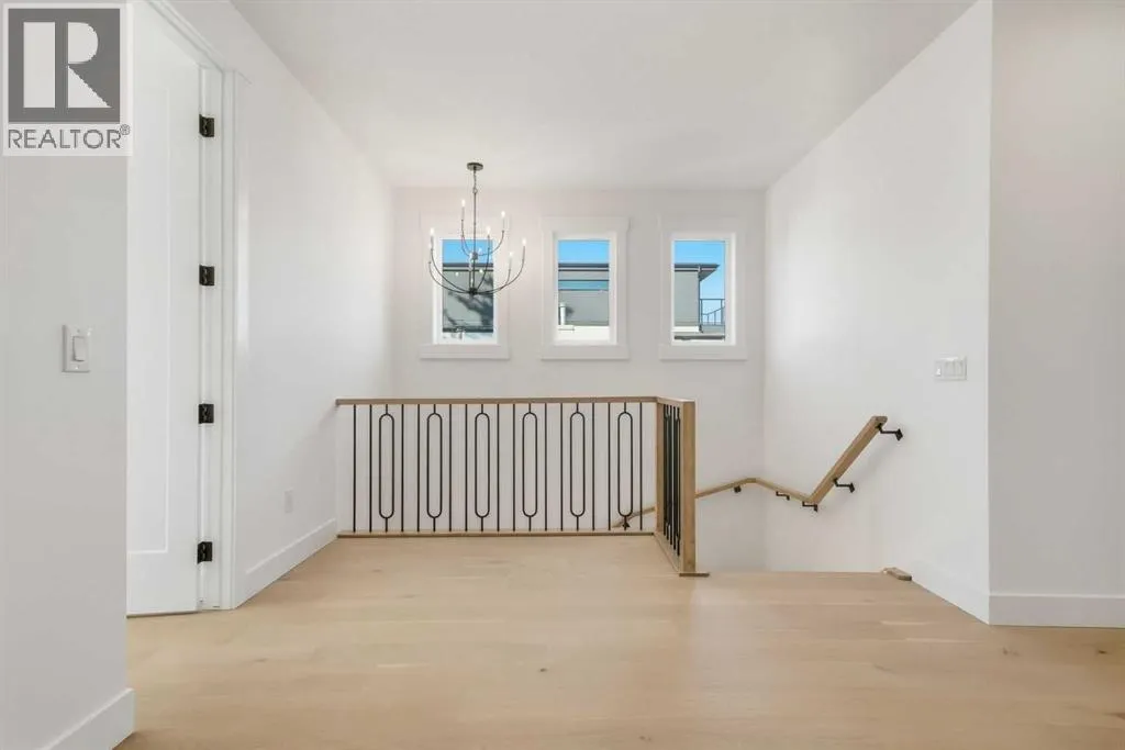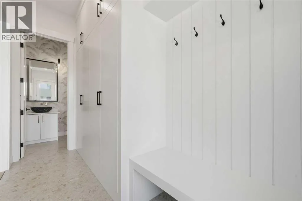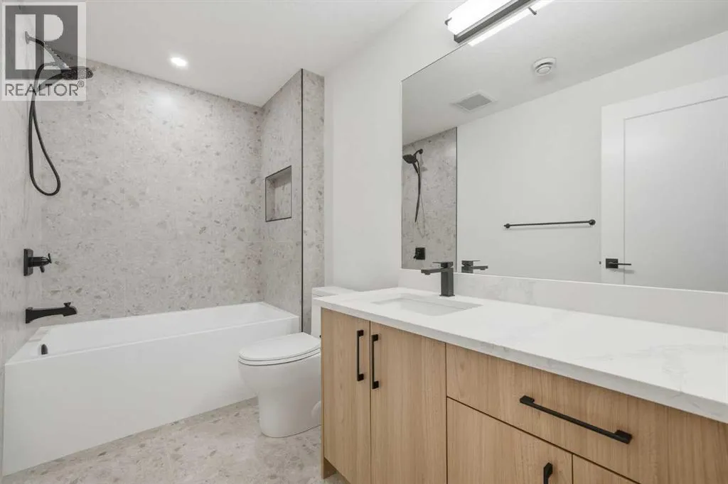 Gorgeous new 3 bedroom home built by Royal Design Homes on a quiet cul-de-sac in sought after Richmond, offering over 2000 sq ft of living space plus a self contained legal 2 bedroom basement suite. The bright & airy main level presents engineered hardwood floors, high ceilings & stylish light fixtures, showcasing the front dining area with beautiful feature wall & ample space to host family & friends. Create culinary masterpieces in the kitchen thatâs tastefully finished with contrasting quartz counter tops, large island/eating bar, excellent appliance package & plenty of storage space, including a pantry & lovely built-in banquette. The living room is anchored by a floor to ceiling feature fireplace & built-ins. A cozy office space is tucked away just off the kitchen, perfect for a home office setup. Completing the main level is a convenient mudroom with bench, hooks & storage & a 2 piece powder room with wall paper accent & raised stone sink. Ascend the lighted staircase to the second level that hosts a loft/bonus room, 2 bedrooms, 4 piece bath & laundry room with sink & storage. The primary bedroom with vaulted ceiling boasts an outstanding walk-in closet & posh 5 piece ensuite with dual sinks, make-up vanity, relaxing freestanding soaker tub & rejuvenating steam shower. The fully contained legal basement suite features engineered hardwood floors, a large living/dining area with tons of built-in storage, kitchen with island/eating bar, quartz counter tops & stainless steel appliances. Two bedrooms, a 4 piece bath & dedicated laundry facilities complete the legal basement suite. Other notable features include roughed in air conditioning & 2 furnaces. Outside, enjoy the beautifully landscaped front garden & back yard with deck & access to a double detached garage. The location is incredibly convenient, close to vibrant Marda Loop, excellent schools, parks, public transit & easy access to 26th Avenue & Crowchild Trail. (id:27476)