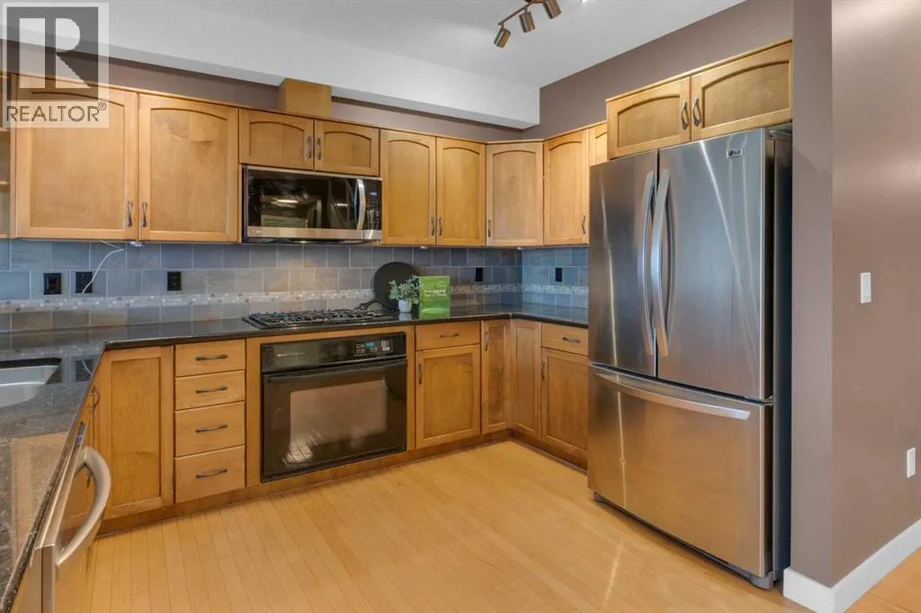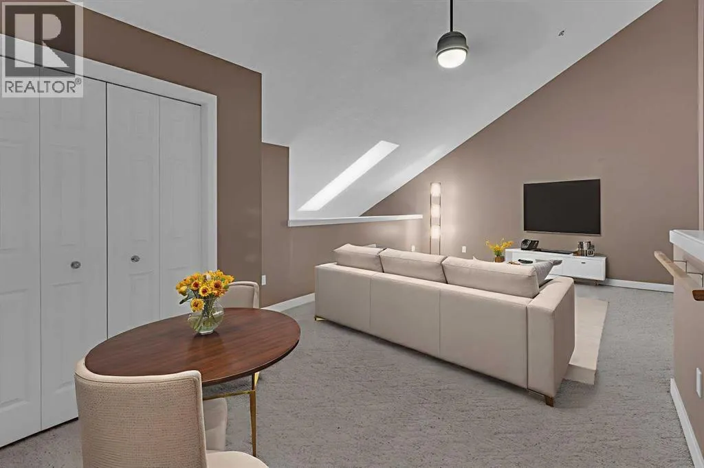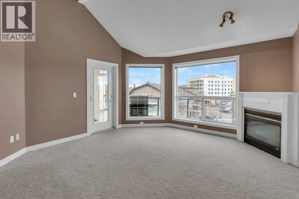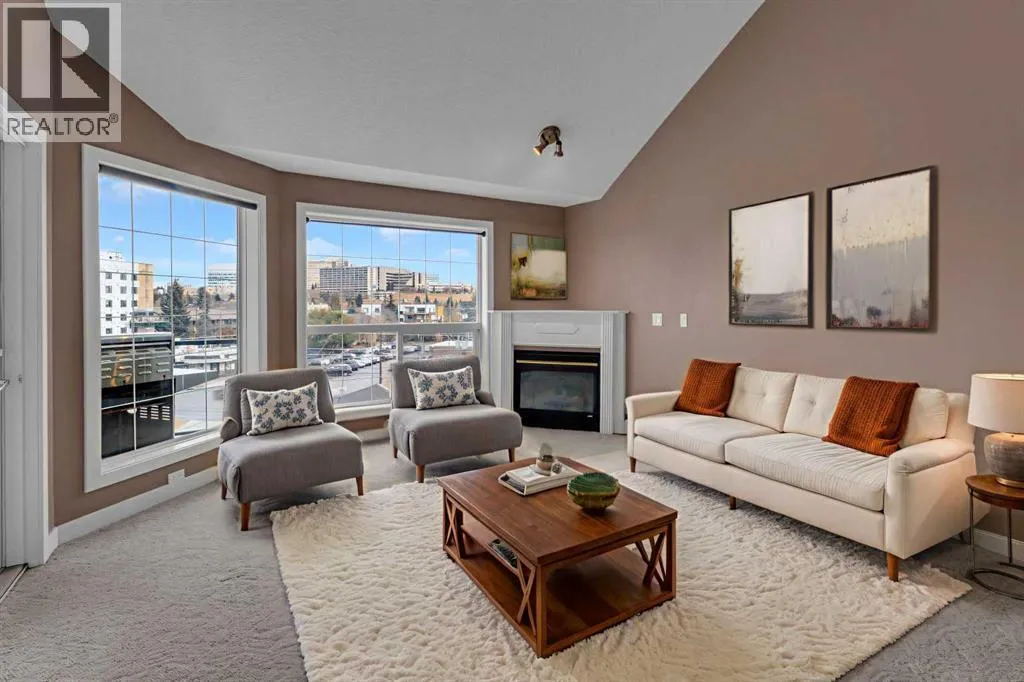 Welcome to The Hemisphere on the Bow, a quiet, well-managed, pet friendly, 28-unit building perfectly located just steps from the Bow River and the river pathway system! This top-floor, two-storey condo offers 1 bedroom plus loft, 3 full bathrooms, a very large in-suite storage room, titled underground parking and a storage locker. This well cared for condo features an open concept main level with a spacious kitchen with granite countertops, wood cabinetry, raised breakfast bar & stainless steel appliances. The kitchen opens onto the dining room, as well as onto the living room with vaulted ceilings, large windows, a gas fireplace & the patio door out to the roomy deck with gas hook up for your bbq. The main-floor primary bedroom is a standout, featuring vaulted ceilings, oversized windows, a walk-in closet, and an ensuite with a jetted tub, separate shower, and extended vanity offering ample counter and storage space. Completing the main level is a second full bathroom, a laundry area with stacked washer and dryer, and a convenient walk-in storage/coat room near the foyer. The upper loft level offers incredible versatility, use it as a bedroom, home office, gym, hobby room, or games area. This level also includes a third full bathroom with shower and a rare 10â x 10â storage room. Additional highlights include custom opening and self-closing skylights, a new expansion tank for the in-floor heating system, and a new electric heater in the utility room. One titled underground parking stall and an assigned storage locker, plus plenty of on-street parking for guests outside the building. Enjoy an unbeatable location close to Edworthy Park, coffee shops, restaurants, and shops, with quick access to the Foothills Hospital, Alberta Childrenâs Hospital, the University of Calgary, and downtown. (id:27476)