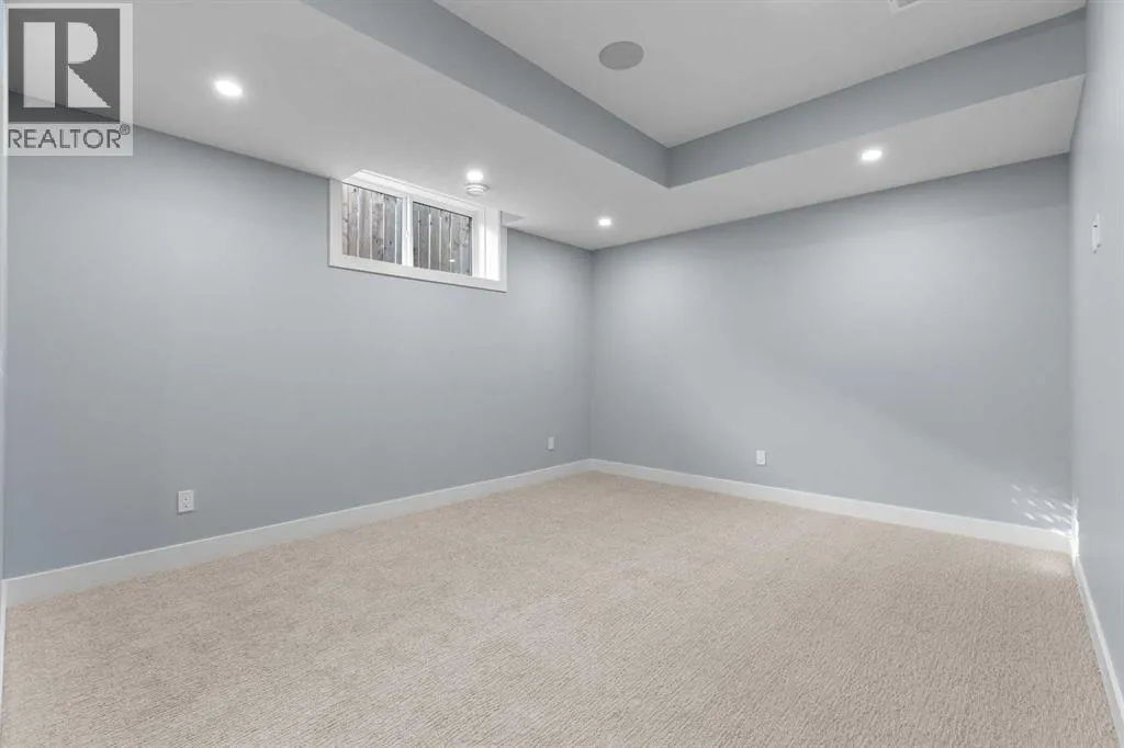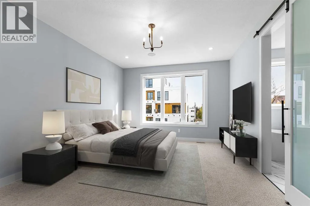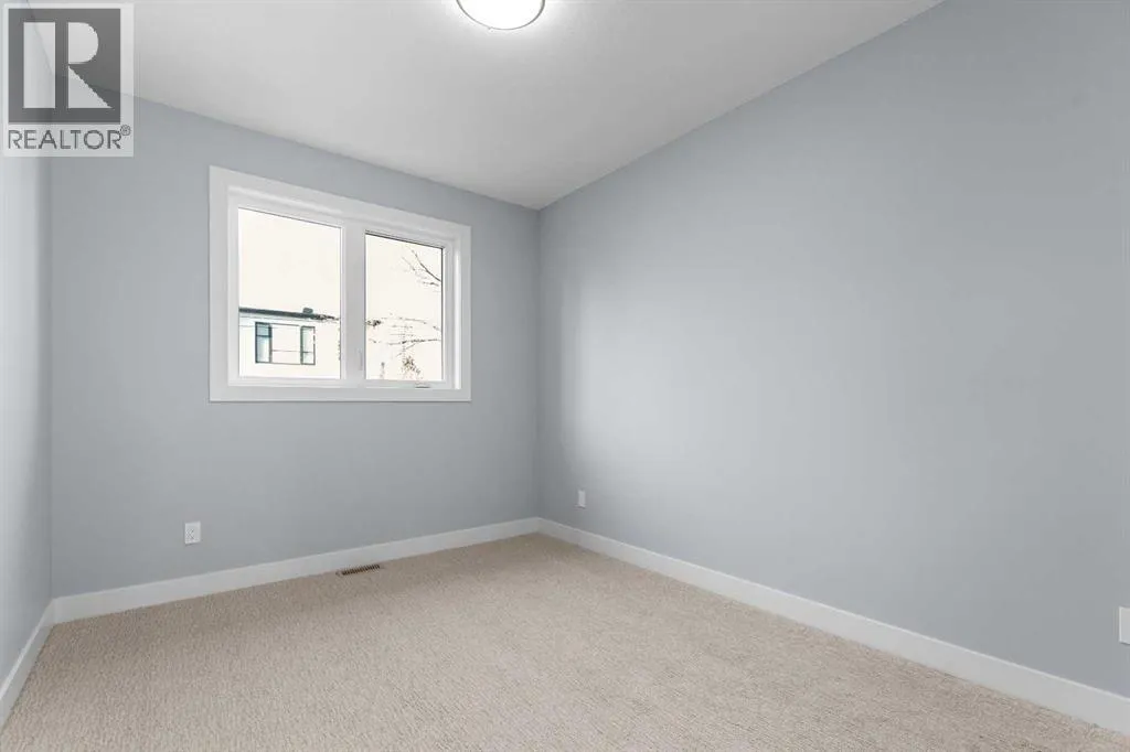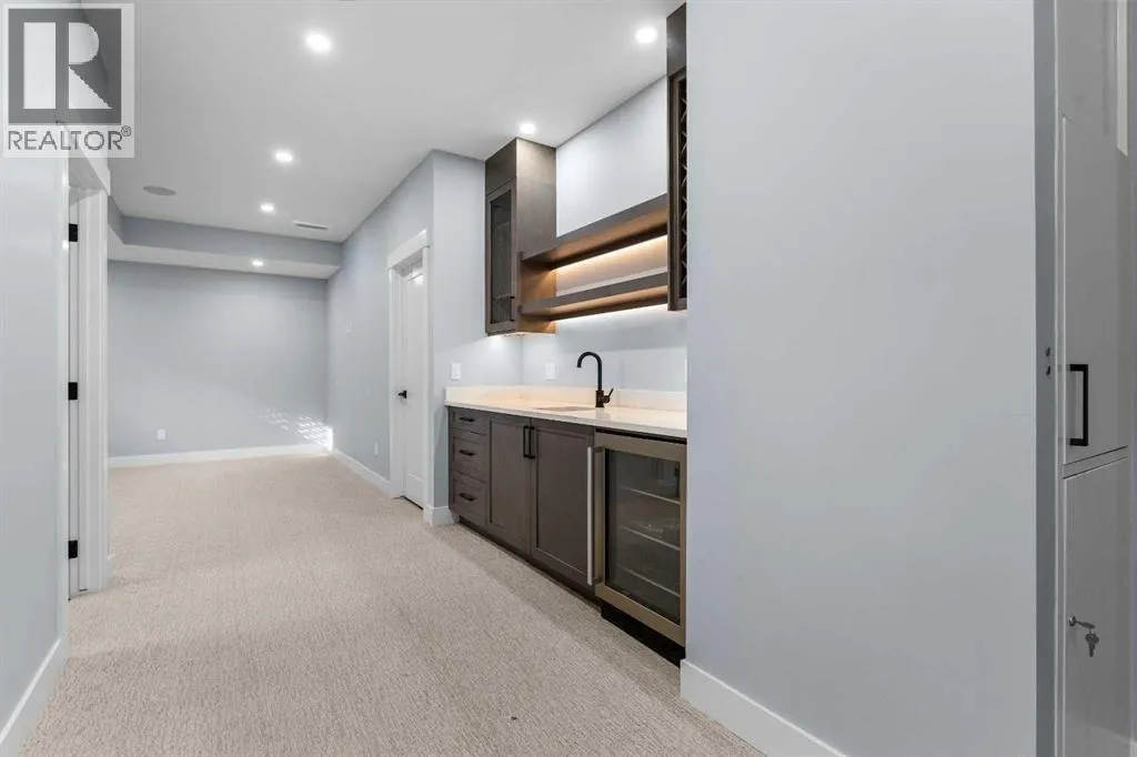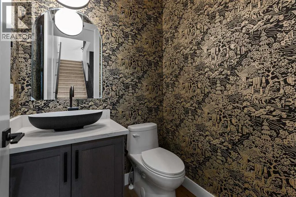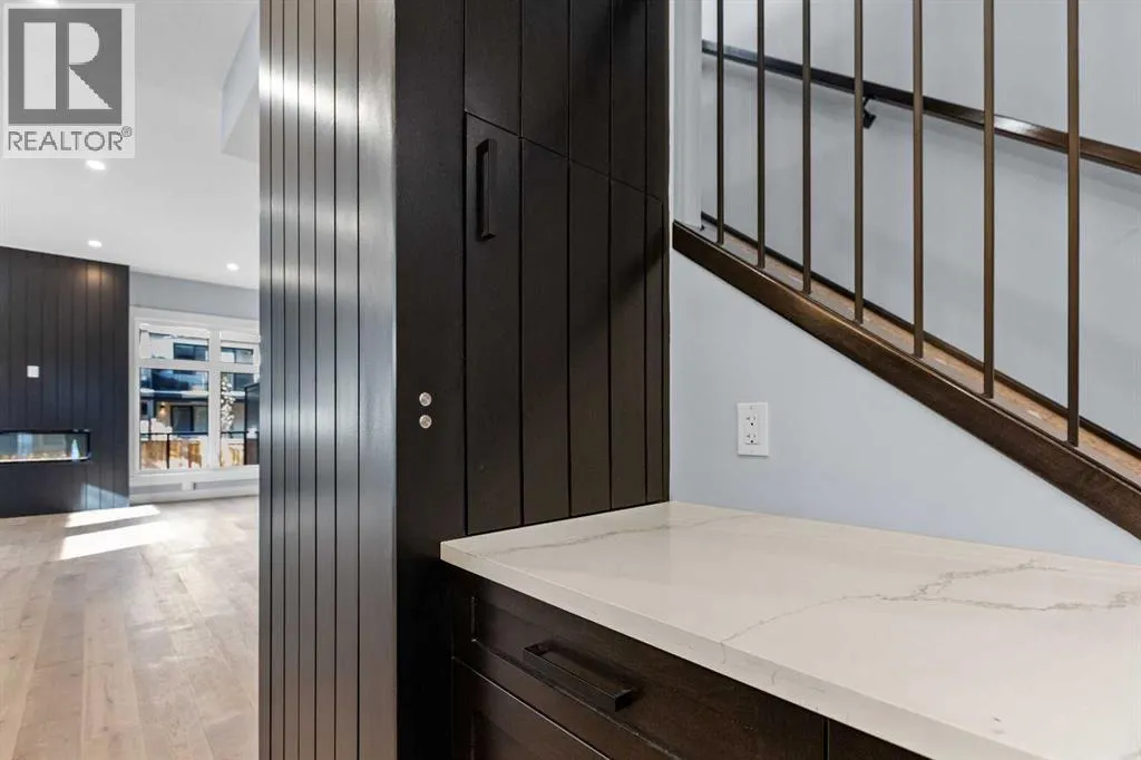 Experience refined living in this stunning 3-bedroom, 4-bathroom semi-detached residence, offering over 2,900 sq. ft. of thoughtfully designed space across three levels. With immediate possession, this home combines architectural sophistication, modern innovation, and exceptional craftsmanship in one of Calgaryâs most desirable inner-city communities.The main floor welcomes you with 10-foot ceilings, rich hardwood flooring, and abundant natural light streaming through energy efficient windows. A bright main-floor den with large picture windows provides the perfect setting for a home office or reading retreat, elegant, spacious, and filled with light.Throughout the home, every element has been curated to achieve a seamless blend of luxury and function. QUARTZ countertops, shaker-style cabinetry with under-cabinet lighting, soft-close drawers/cupboards, and black and gold Tenzo fixtures elevate every space. The gourmet kitchen serves as the centerpiece, featuring a fireclay farmhouse sink, built-in spice racks, and a large island with concealed electrical outlets. A discreet dumbwaiter elevator connects the garage and lower level directly to the kitchen, adding effortless practicality to everyday living.The powder room is a bold design statement, complete with designer wallpaper, a gold leaf ceiling, floating vanity, and backlit mirror â a perfect reflection of modern sophistication.The primary suite offers a private retreat with a freestanding soaking tub, dual sinks, floating vanities with in-shelf lighting, oval mirrors, and a separate custom-tiled shower. Each additional bathroom continues this standard of excellence with custom tilework, floating vanities, and luxury fixtures throughout.A custom bar area on the lower level with black and gold metal mesh detailing, floating shelving, and a built-in wine display creates an elegant space for entertaining or relaxing. Outside, a spacious patio and lush green space extend the living area, perfect for outdoor gat herings and quiet evenings alike.Situated just minutes from Downtown Calgary, steps from Shaganappi Golf Course, and blocks from the vibrant 17th Avenue SW corridor, this residence offers the perfect blend of urban energy and timeless comfort. Within walking distance to the LRT, top-rated schools, and shopping, it defines elevated inner-city living.A home of rare distinction , where craftsmanship, light, and modern luxury converge. (id:27476)