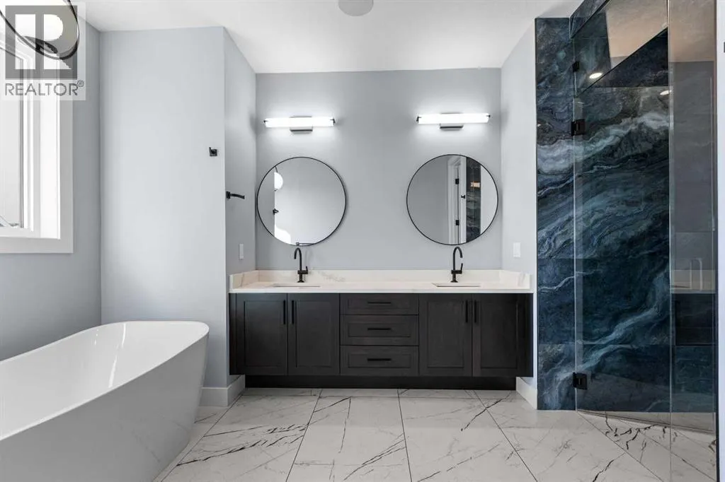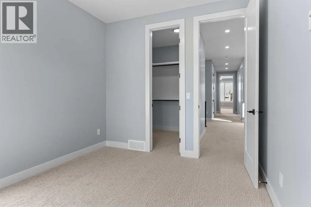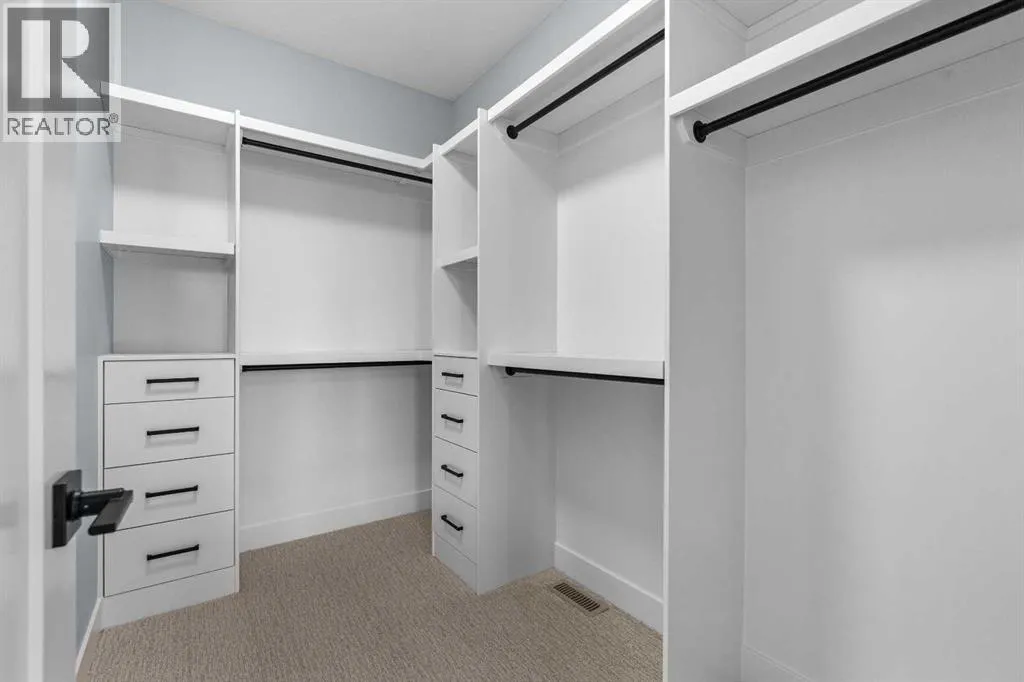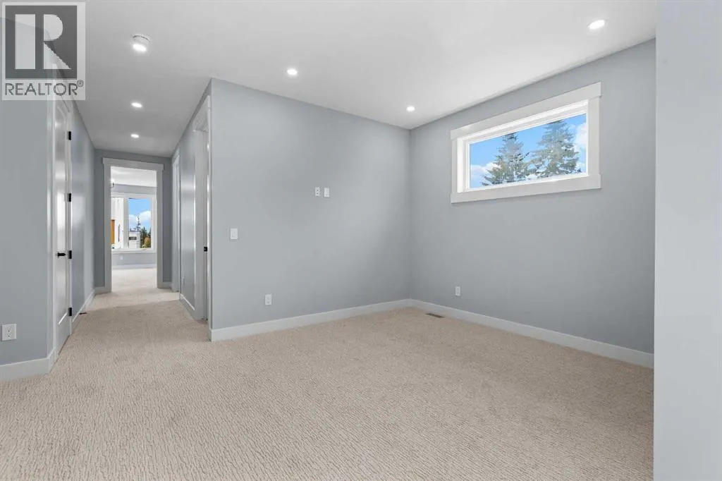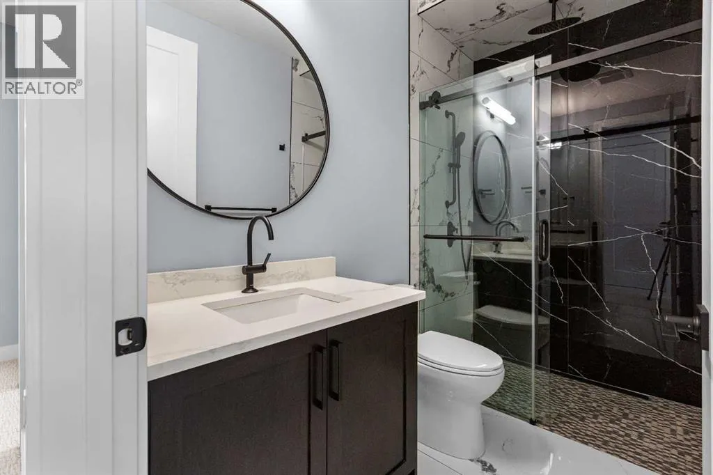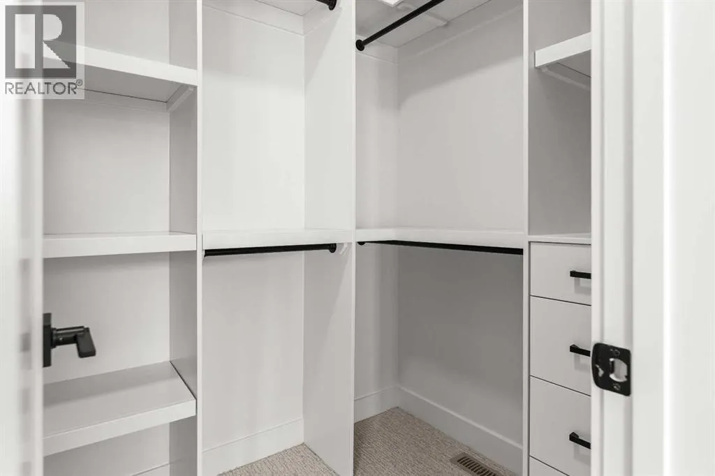 Experience refined living in this stunning 3-bedroom, 4-bathroom semi-detached residence, offering over 2,900 sq. ft. of thoughtfully designed space across three levels. With immediate possession, this home combines architectural sophistication, modern innovation, and exceptional craftsmanship in one of Calgaryâs most desirable inner-city communities.The main floor welcomes you with 10-foot ceilings, rich hardwood flooring, and abundant natural light streaming through energy efficient windows. A bright main-floor den with large picture windows provides the perfect setting for a home office or reading retreat, elegant, spacious, and filled with light.Throughout the home, every element has been curated to achieve a seamless blend of luxury and function. QUARTZ countertops, shaker-style cabinetry with under-cabinet lighting, soft-close drawers/cupboards, and black and gold Tenzo fixtures elevate every space. The gourmet kitchen serves as the centerpiece, featuring a fireclay farmhouse sink, built-in spice racks, and a large island with concealed electrical outlets. A discreet dumbwaiter elevator connects the garage and lower level directly to the kitchen, adding effortless practicality to everyday living.The powder room is a bold design statement, complete with designer wallpaper, a gold leaf ceiling, floating vanity, and backlit mirror â a perfect reflection of modern sophistication.The primary suite offers a private retreat with a freestanding soaking tub, dual sinks, floating vanities with in-shelf lighting, oval mirrors, and a separate custom-tiled shower. Each additional bathroom continues this standard of excellence with custom tilework, floating vanities, and luxury fixtures throughout.A custom bar area on the lower level with black and gold metal mesh detailing, floating shelving, and a built-in wine display creates an elegant space for entertaining or relaxing. Outside, a spacious patio and lush green space extend the living area, perfect for outdoor gat herings and quiet evenings alike.Situated just minutes from Downtown Calgary, steps from Shaganappi Golf Course, and blocks from the vibrant 17th Avenue SW corridor, this residence offers the perfect blend of urban energy and timeless comfort. Within walking distance to the LRT, top-rated schools, and shopping, it defines elevated inner-city living.A home of rare distinction , where craftsmanship, light, and modern luxury converge. (id:27476)