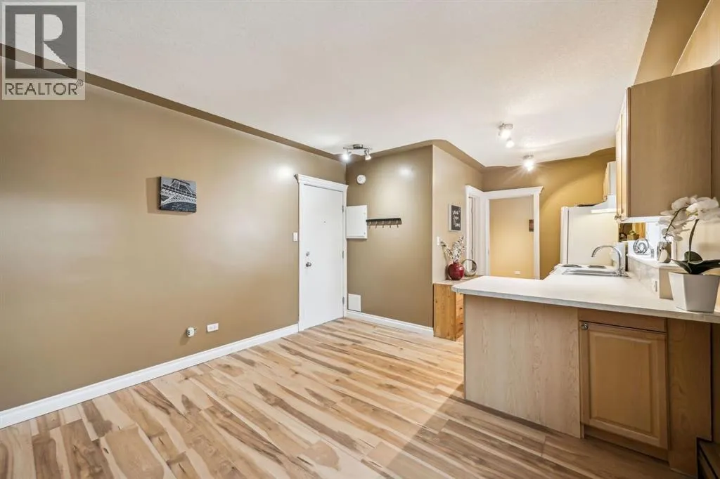 Priced to Sell. Nicely Located in Trendy Mission! Super Cute TOP-FLOOR Condo with LOW Condo-Fees(which include heat/water and more) or as low-maintenance investment property, just steps away from Calgaryâs Most Vibrant Neighbourhoods. Trendy Restaurants and Walkability as an entry into Mission! Take a quick RUN on the River, Bike-Ride to work on the nearby bike-path system, or walk over to STAMPEDE PARK for an Event or Concert. This OPEN-CONCEPT 355 sqft Condo enjoys BRAND NEW Luxury Vinyl Flooring throughout the single level apartment. Tasteful Kitchen with Maple Accented Cabinetry & Fresh NEW Counters. ENJOY the West Natural Light through the Bedroom and Living Space and Private IN-UNIT WASHER comes in handy. (Tucked away in the closet) Spacious Bedroom can fit a Double or Queen Sized Bed, rare for a CONDO of this size. Clean & Tidy 4 pce Bathroom with Tile floors, sets you up for Just enough space for a busy working professional who doesnât need too much space. Affordable for First-Time Homebuyers (Cheaper-than-Rent). Quick access to downtown, Located in SUPER Vibrant MISSION Walkable/Bikeable to most amenities nearby with TRANSIT, SHOPPING, RESTAURANTS, Neighbourhood/Chain COFFEE SHOPPES, places to soak on the RIVERSâ edge or walk to the NEW EVENT centre for Stampede Activities. Proximity to 17th AVE or just a few minutes to the downtown office! Large Secured Storage in the lowest level for Seasonal Items & communal Card-op Laundry in lower level for the building. Check out this Urban Living Crash Pad as a downtown base for an Active Lifestyle! (id:27476)