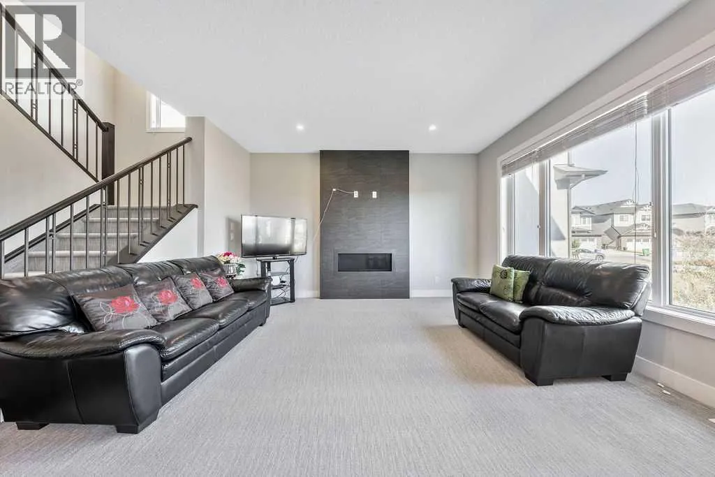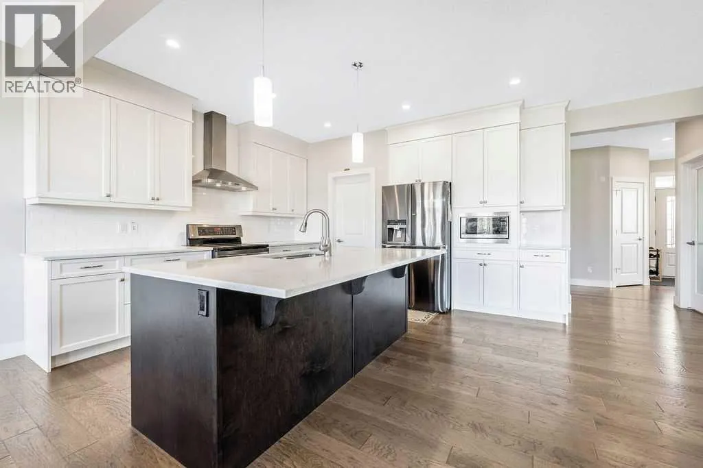 Welcome to Panatella Estates, where elegance meets perfection! This EXECUTIVE 4-BEDROOM walk-out with a striking STUCCO EXTERIOR, backs directly onto the ravine and is presented in IMMACULATE SHOW-HOME CONDITION - a home so pristine it feels more like a curated gallery than a home. with a striking stucco exteriorBeautifully crafted and maintained with premium finishes throughout, this home also features a new roof, gutters, and furnace (2025) for complete turn-key peace of mind.Step inside to soaring 9â ceilings, gleaming engineered hardwood, and a main-floor office/den perfectly suited for working professionals or creative minds. The open-concept design flows seamlessly through a sun-filled living area with a designer fireplace and into a chef-inspired kitchen featuring custom white cabinetry, quartz countertops, upgraded stainless-steel appliances, a striking two-tone island, walk-through pantry, and a gas rough-in for those who prefer a gas range.From the dining area, step onto your sun-drenched dura-deck, thoughtfully equipped with a BBQ gas line for effortless entertaining. Overlooking breathtaking ravine scenery, this tranquil outdoor space extends your living area into nature itself â where morning coffee, golden sunsets, and peaceful evenings transform everyday moments into quiet luxury.Ascend to the upper level where a magnificent vaulted bonus room awaits â the kind of space that draws everyone together. Whether itâs movie night with the family, kids laughing over board games, or quiet moments with a book and a view, this room captures the essence of home.The primary suite is a true retreat â a spa-inspired sanctuary featuring dual vanities, a 10 mm glass shower, and separate his-and-hers walk-in closets for effortless organization. Three additional upper bedrooms are thoughtfully designed with generous proportions, offering plenty of space for family, guests, or a personalized home studio. Convenient upper-floor laundry completes this level, a dding everyday ease to its exceptional comfort.The expansive walk-out basement with 9â ceilings and plumbing rough-ins offers endless possibilities â whether you envision a private suite, home theatre, or fitness studio, itâs a blank canvas ready for your personal touch. Outside, the property shines with meticulous low maintenance landscaping, and an OVERSIZED garage for added functionality. Backing directly onto the peaceful ravine and walking paths, this home offers the perfect blend of natural beauty and everyday convenience â where scenic morning walks and tranquil evening views become part of your routine. Ideally situated just minutes from schools, parks, the community lake, shopping, restaurants, and major roadways, this location captures the very best of Panorama Hills living. Let's make a deal: Seller Says Buy This HOUSE AND WE WILL BUY YOURS (Terms and conditions apply). (id:27476)