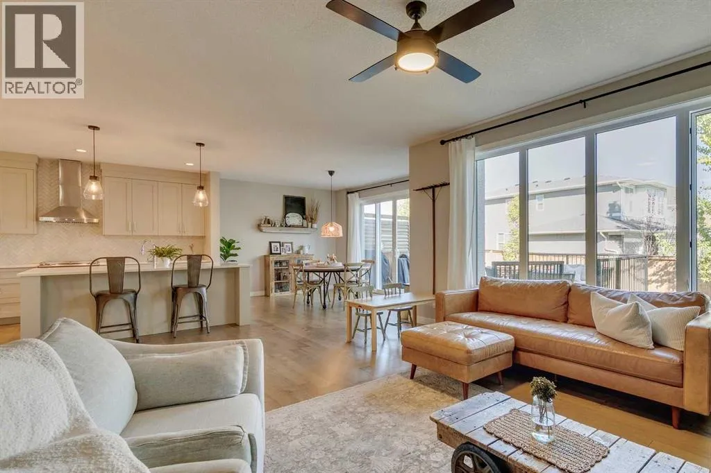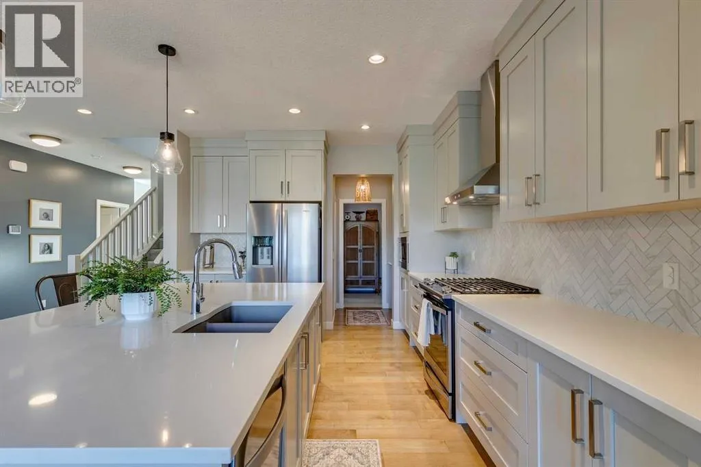Welcome to 150 Cranbrook Circle â Nestled within an EXCLUSIVE POCKET OF CRANSTON RIVERSTONE, this property sits just steps from a childrenâs tot park and the BOW RIVER PATHWAYS. Situated on a beautifully landscaped corner lot, this warm and welcoming home offers over 2,600 sq.ft. of thoughtfully designed living spaceâready for your family to create new memories in a setting surrounded by nature. A BRIGHT TWO-STOREY FOYER greets you, open to the level above. Morning light floods the great room through a wall of OVERSIZED WINDOWS overlooking the spacious backyard and mature trees. Step outside to a large back deck with plenty of room for dining and lounging, and unwind in the inviting hot tub after a long day. The kitchen, styled with full-height cabinetry, QUARTZ COUNTERTOPS, and ELEGANT HERRINGBONE TILE, connects seamlessly to the mudroom and includes a LARGE PANTRY plus a convenient coffee bar/nook tucked neatly out of sight. A MAIN-FLOOR OFFICE enjoys excellent natural lightâperfect for working from home. Upstairs, the bonus room captures tranquil RIVER VIEWS, while three generous bedrooms and a large laundry room provide ideal family function. The bright primary ensuite features expansive windows, a DOUBLE VANITY, OVERSIZED SHOWER, and a HUGE WALK-IN CLOSET. The spacious basement awaits your creative touch, and the TRIPLE GARAGE plus corner lot offer AMPLE PARKING and STORAGE options. Discover this beautiful home in CRANSTON RIVERSTONEâCalgaryâs best-kept secretâwhere Fish Creek Park and the Bow River are just outside your door. Enjoy easy access to schools, shopping, restaurants, and the South Health Campus and Seton YMCA, all only minutes away. (id:27476)