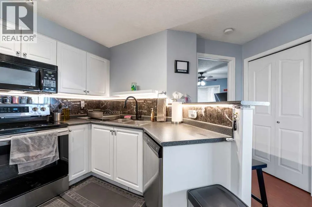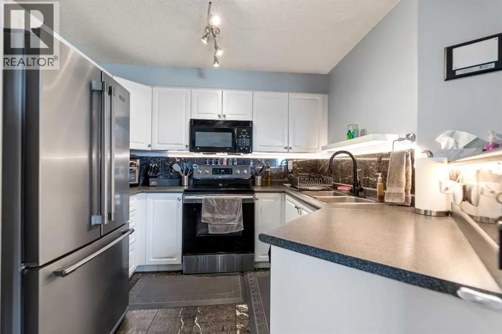 Rare Top-Floor Unit with Dual-Exposure Mountain Views in Monterey Park!Welcome to bright, updated living in a highly desirable, secure building. This spacious condo is perched on the top floor, offering privacy and magnificent west and northwest-facing mountain views from your expansive balcony.The thoughtfully laid-out interior boasts a large living room, a generous dining area perfect for entertaining, and a functional kitchen. Both bedrooms are well-sized, including a fantastic primary bedroom that features a large walk-in closet, a second closet and a private 4-piece ensuite. The balcony is equipped with a natural gas line for easy grilling.The building provides peace of mind with key-fob access and security cameras, plus a beautiful community gazebo and green space for residents. Situated in a prime location, you are within easy walking distance of parks, schools, shopping, and public transit. Commuting is a breeze with effortless access to Stoney Trail and 16 Ave NE. A truly exceptional opportunity to secure a spacious, well-maintained home in a vibrant community. (id:27476)