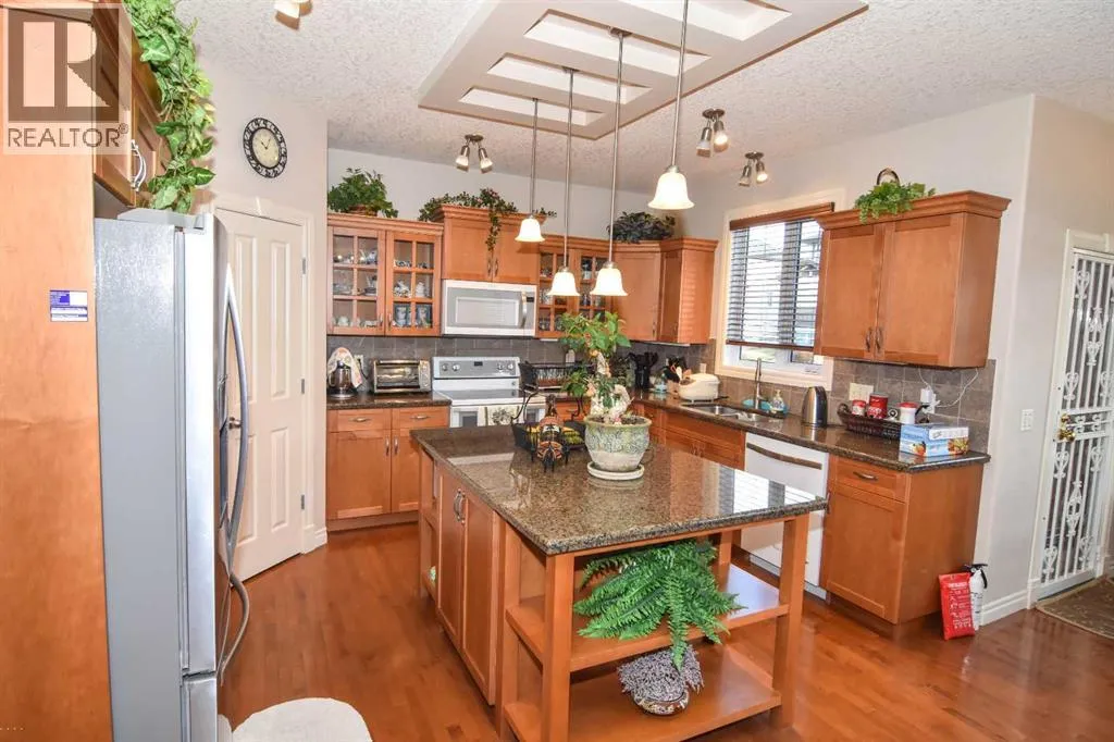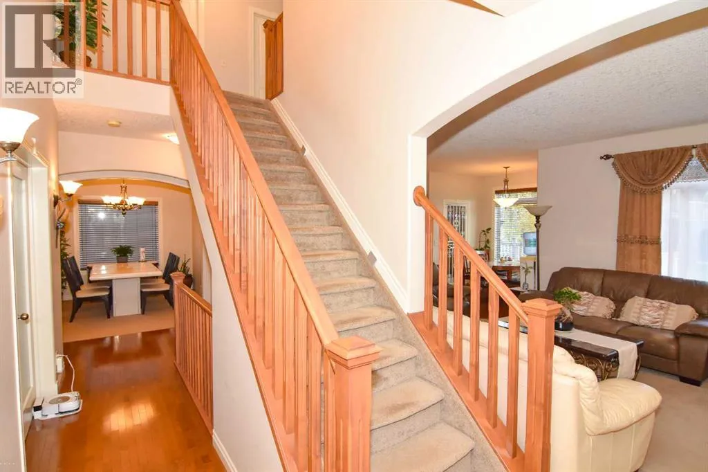 Upgrades galore step into this beauty, four bedroom up a huge den/office on the main floor. Maple hardwood floors Granite counter tops and porcelain tile abound. in this beautiful 2 story executive home. The massive bonus room and fully developed basement that offers a fifth bedroom and huge flex space is every families dream. Space for family everywhere in this stylish house. Note new roof and siding as well as six windows replaced from the recent hail storm. The back path takes you to a serene pond just minutes away. Work from home with ease. (id:27476)