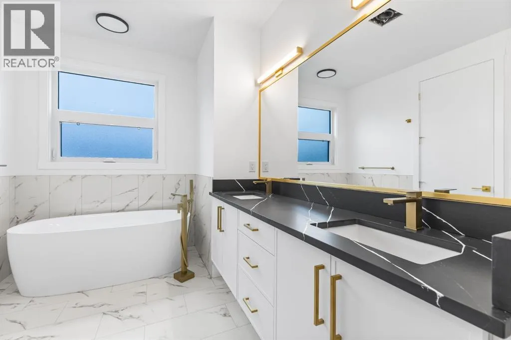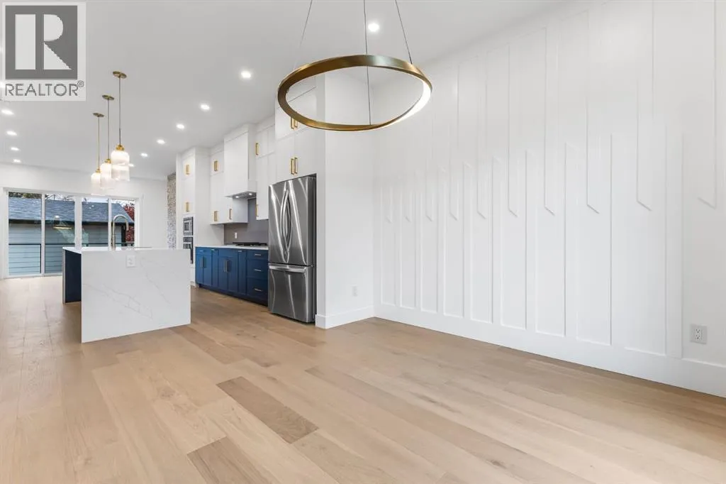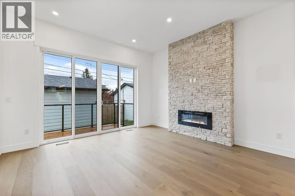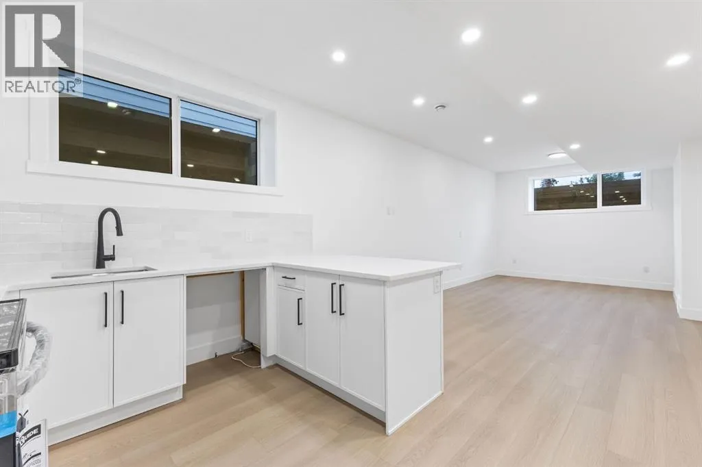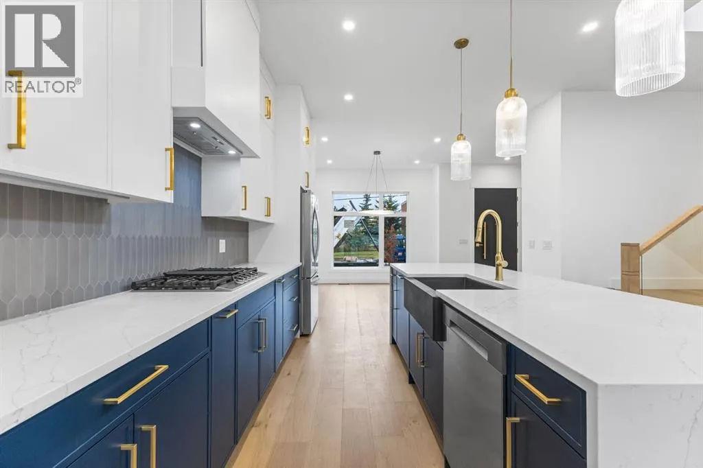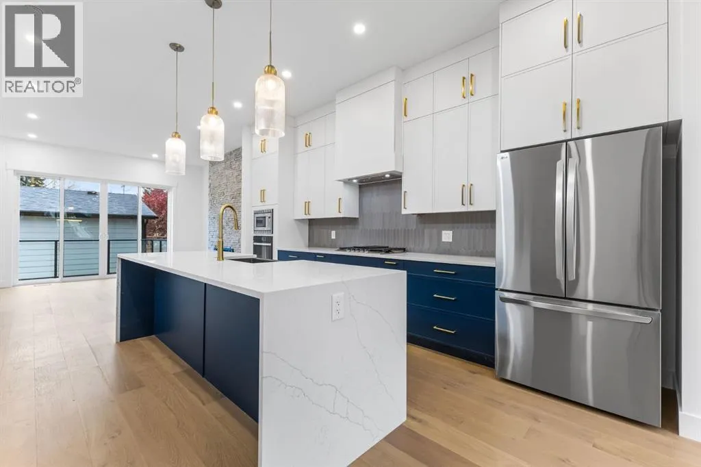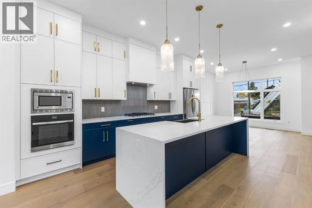 Welcome to this brand-new, 3 bedroom residence perfectly situated in the mature community of Rosscarrock. Designed for modern living and crafted with exceptional attention to detail, this contemporary two-storey home offers over 1900 sq ft of beautifully developed space, plus a self-contained legal one-bedroom basement suiteâideal for guests, or as a potential mortgage helper. The main level showcases an open-concept design enhanced by wide-plank hardwood floors, high ceilings, and expansive windows that flood the space with natural light. The inviting living room features a striking floor to ceiling fireplace and built-in shelving, creating a warm focal point for gatherings. The adjacent dining area easily accommodates family meals or formal entertaining. At the heart of the home, the chef-inspired kitchen impresses with full-height cabinetry, quartz countertops, an oversized island with breakfast bar and excellent appliance package. Thoughtful details such as recessed lighting, designer chandelier, a functional mudroom with custom built-ins and 2 piece powder room elevate the space. Upstairs, the vaulted-ceiling primary suite is a private retreat, complete with a spacious walk-in closet fitted with custom organizers and a luxurious 5-piece ensuite featuring double sinks, a quartz-topped vanity, freestanding soaking tub, and separate glass shower. Two additional bedrooms, a 4-piece bath, and a convenient laundry room with sink complete this level. The fully developed lower level has been designed as a private, self-contained legal one-bedroom suite, complete with its own kitchen, living area, full bathroom, and laundry facilities. Large windows, recessed lighting, and quality finishes ensure the suite feels bright and invitingâideal for extended family, guests, or rental use. Outside, enjoy a private, landscaped yard with a rear deck, fencing, and a double detached garage. The homeâs exterior blends timeless brick and composite siding with modern lines and a welcom ing south-facing front exposure. Situated on a quiet street within walking distance to parks, playgrounds & schools and close to Shaganappi Point Golf Course, shopping, scenic Edworthy Park and public transit, this property offers the perfect balance of style, flexibility, and convenience. Newly built in 2025, this outstanding Rosscarrock residence delivers premium craftsmanship, functional design, and exceptional versatilityâideal for todayâs discerning buyer seeking luxury living with the added benefit of a legal self-contained suite. (id:27476)