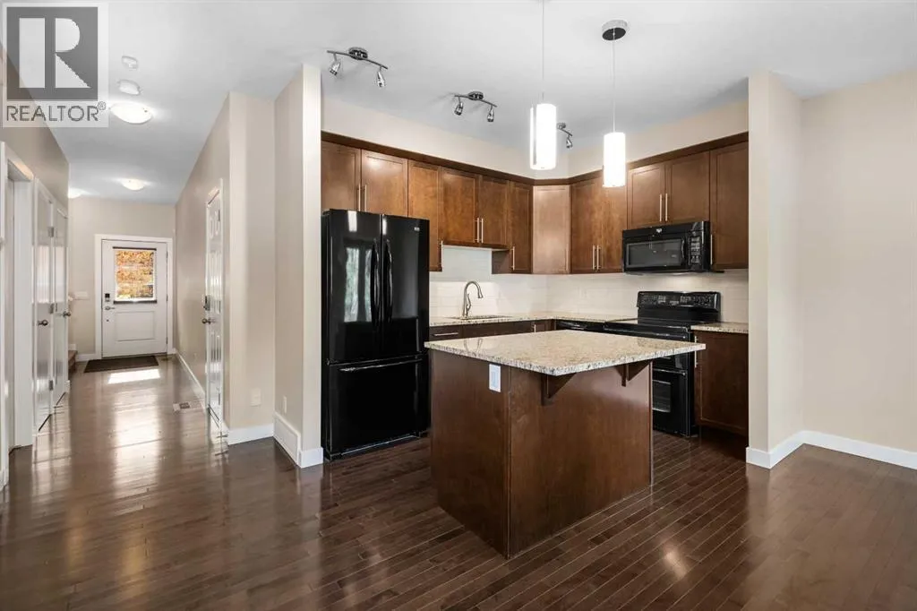This beautifully maintained end unit townhome offers 2 spacious bedrooms plus a versatile loftâperfect for a home office or TV room. The main floor features 9-foot ceilings and an open-concept layout ideal for both everyday living and entertaining. The kitchen is a standout with hardwood flooring, granite countertops, and extended-height cabinetry.A stunning rock fireplace adds warmth and character, making the living space both functional and inviting. The fully finished basement includes a generous family room and a full bathroomâperfect for guests or extra living space.Located in the highly sought-after community of Quarry Park, this home is move-in ready just in time for the holidays. (id:27476)