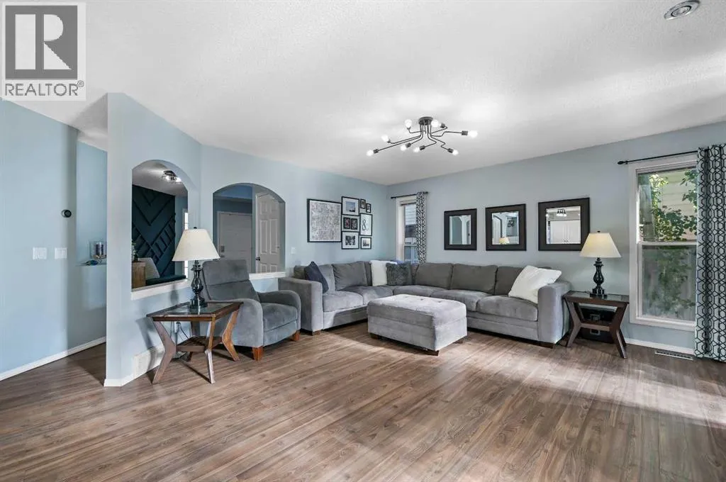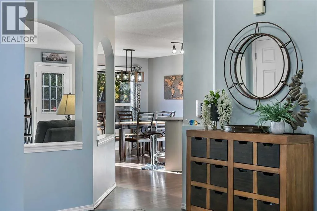 Welcome to this beautifully updated and fully developed two-storey home, ideally situated on one of Hidden Valleyâs most sought-after streets. With over 1,600 sq. ft. above grade and four bedrooms and three-and-a-half bathrooms, this property offers the perfect blend of comfort, style, and family functionality. From the moment you arrive, youâll notice the exceptional pride of ownershipâthe home has been freshly painted inside and out, features updated lighting, and boasts major upgrades: shingles were replaced in May 2022, central air conditioning, and Gemstone exterior lighting, adding both curb appeal and year-round functionality. Step inside to a welcoming foyer that opens into a sunlit open-concept main floor designed for everyday living and entertaining. The living room centers on a cozy gas fireplace framed by windows, creating a warm, inviting atmosphere. The kitchen features stainless steel appliances, a corner pantry, and plenty of prep space for family meals. Upstairs, the primary suite impresses with a walk-in closet and a 4-piece ensuite, highlighted by stylish glass-block details. The fully finished basement expands your living space with a spacious family room, a custom-built bar with stone backsplash, a 3-piece bath, and a den that can efficiently serve as a fourth bedroom or home office. Step outside to your sunny southwest-facing backyard oasisâprofessionally landscaped with stone-walled flower beds, retaining walls, and a large patio with a fire pit, perfect for summer gatherings and evening relaxation. Located steps from schools, playgrounds, and green spaces, this home delivers the complete Hidden Valley lifestyleâmove-in ready and beautifully upgraded from top to bottom. (id:27476)