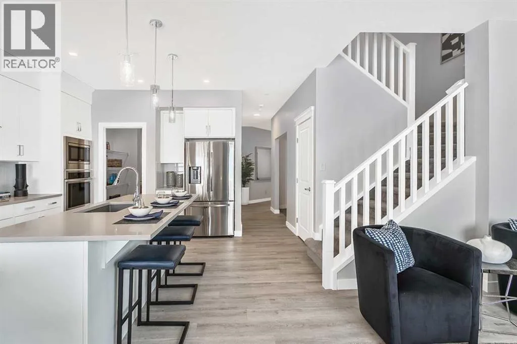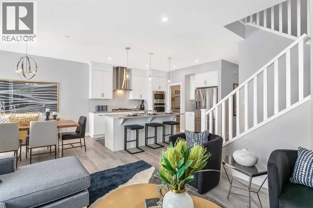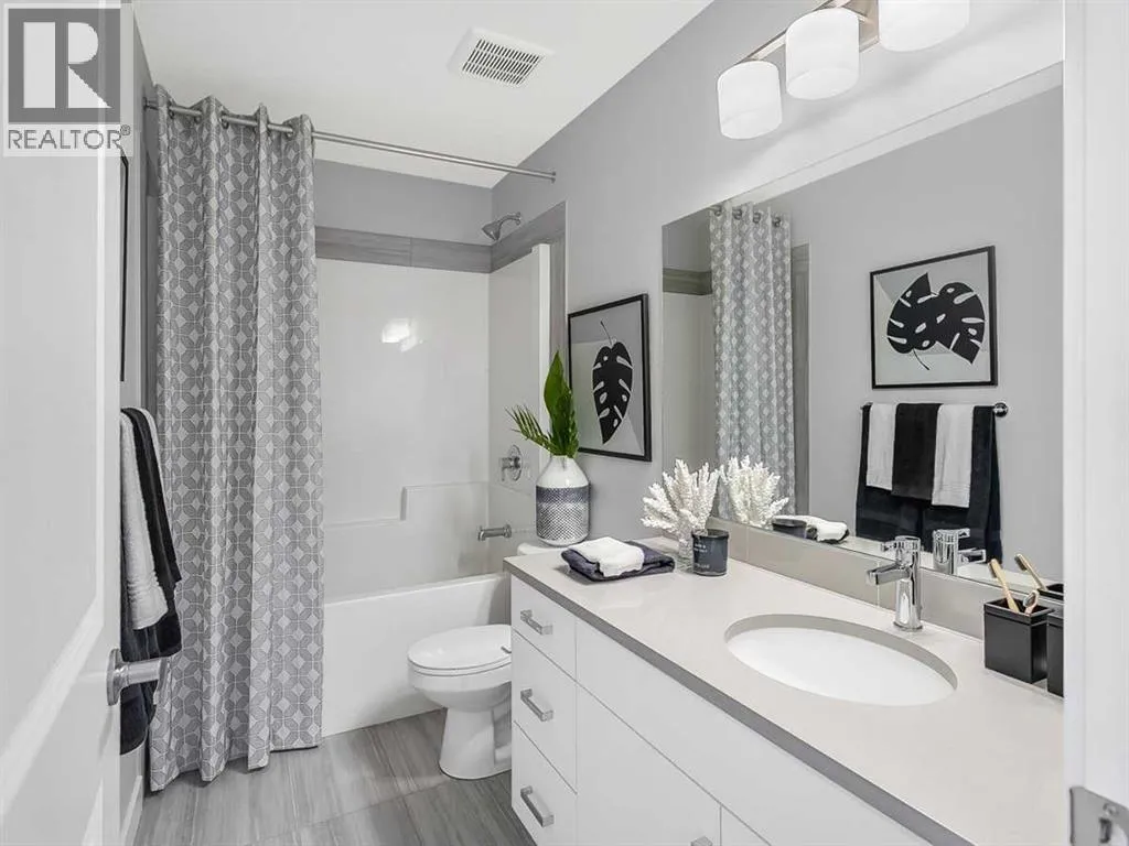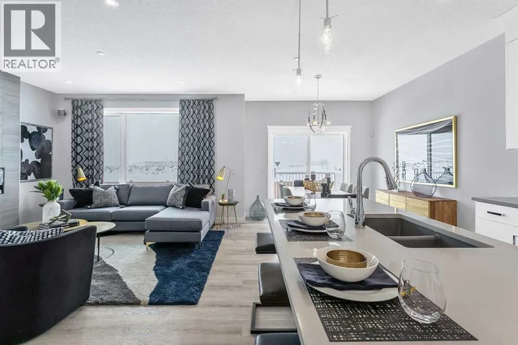 Welcome to your new home in one of Calgary's newest and most accessible communities - Hotchkiss. This beautifully designed 2040 SF home with a double car front attached garage and rear deck offers the perfect balance of comfort, style, and convenienceâa short 5 minute drive to Seton amenities and quick access to Stoney and Deerfoot Trail. Step inside to find an open-concept floor plan filled with natural light, high ceilings, and modern finishes throughout. The spacious main floor features a large flex room suitable for a home office, and flows seamlessly into a gourmet kitchen complete with upgraded Samsung stainless steel appliances, quartz countertops, and a generous islandâperfect for entertaining or casual meals. Upstairs, the primary bedroom is your personal retreat with large windows, a WIC and ensuite. Two extra bedrooms and a spacious bonus room provide ample space for entertaining, as well as comfortable accommodations for family and guests. (id:27476)