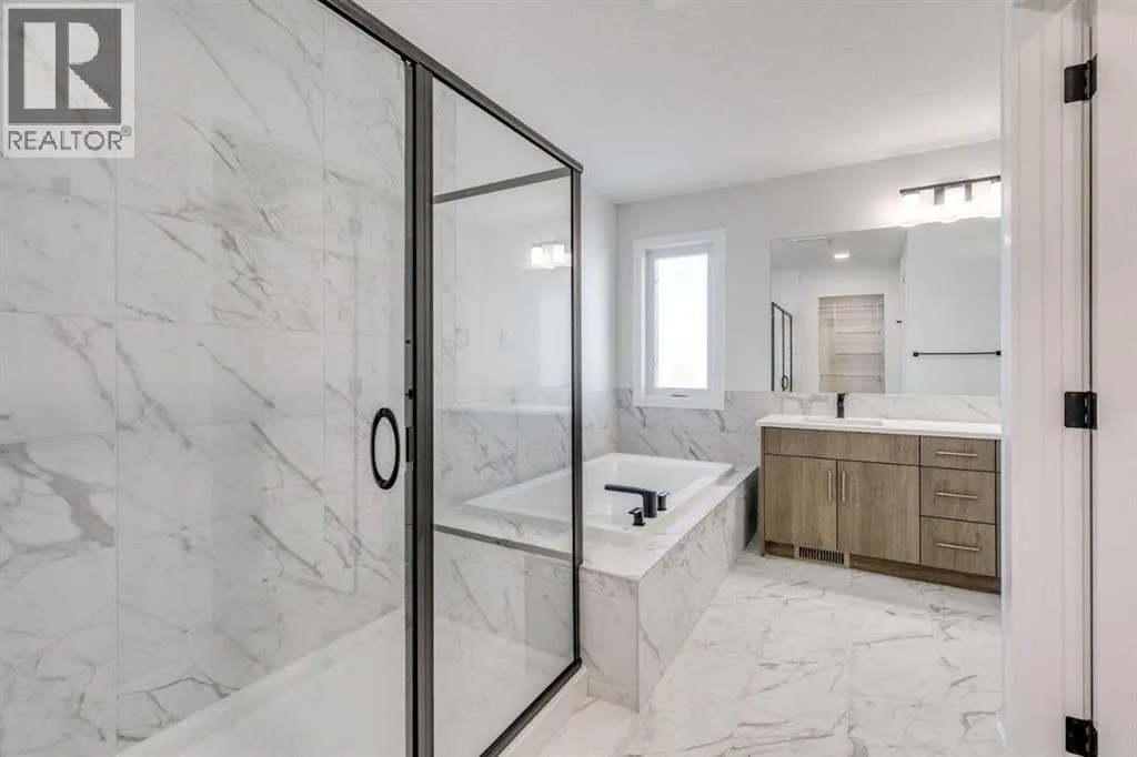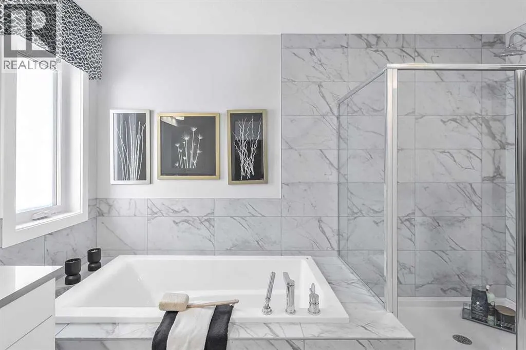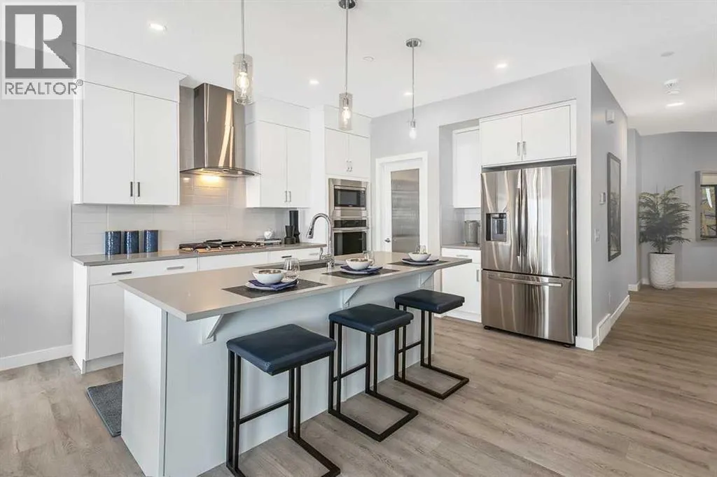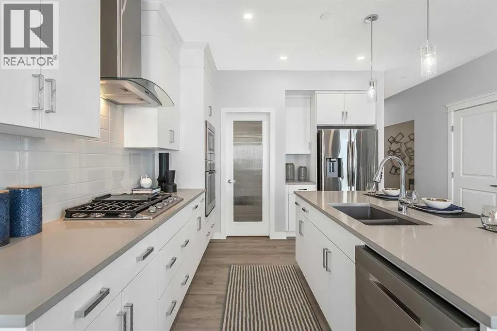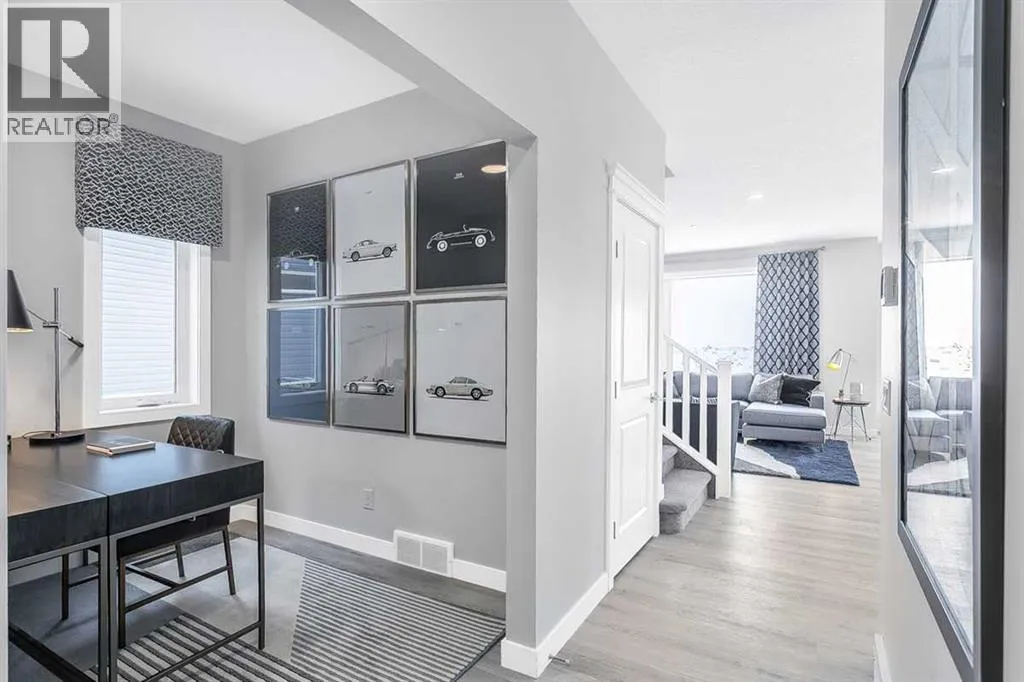 Welcome to your new home in one of Calgary's newest and most accessible communities - Hotchkiss. This beautifully designed 2040 SF home with a double car front attached garage and rear deck offers the perfect balance of comfort, style, and convenienceâa short 5 minute drive to Seton amenities and quick access to Stoney and Deerfoot Trail. Step inside to find an open-concept floor plan filled with natural light, high ceilings, and modern finishes throughout. The spacious main floor features a large flex room suitable for a home office, and flows seamlessly into a gourmet kitchen complete with upgraded Samsung stainless steel appliances, quartz countertops, and a generous islandâperfect for entertaining or casual meals. Upstairs, the primary bedroom is your personal retreat with large windows, a WIC and ensuite. Two extra bedrooms and a spacious bonus room provide ample space for entertaining, as well as comfortable accommodations for family and guests. (id:27476)