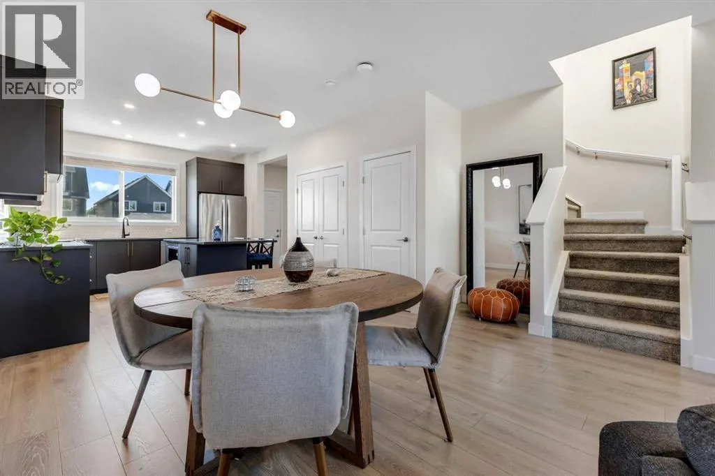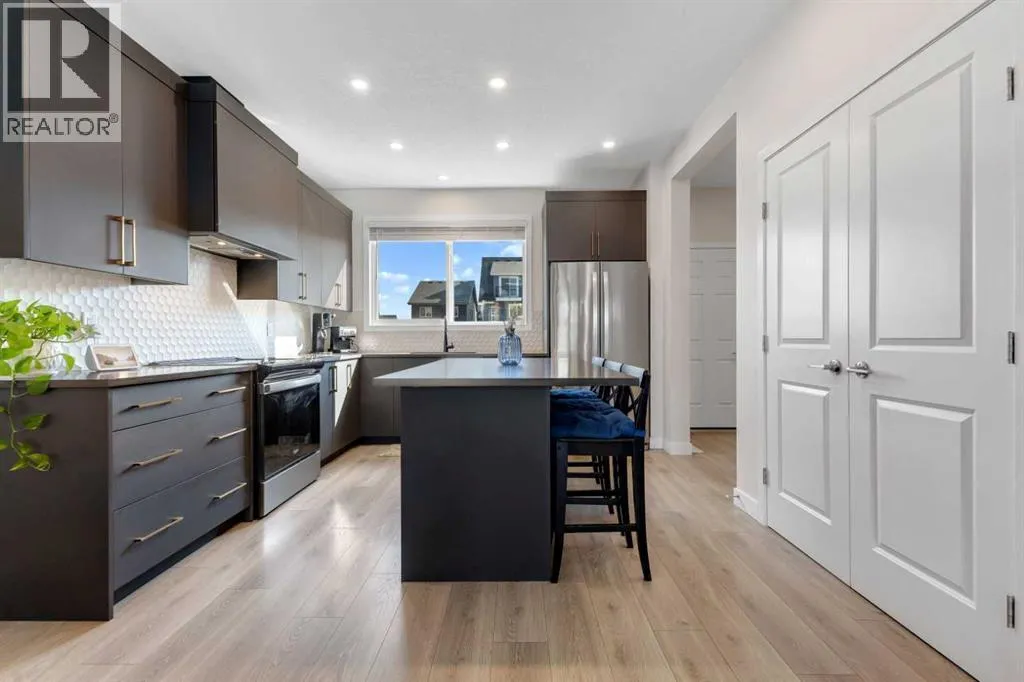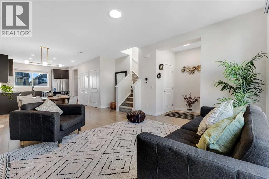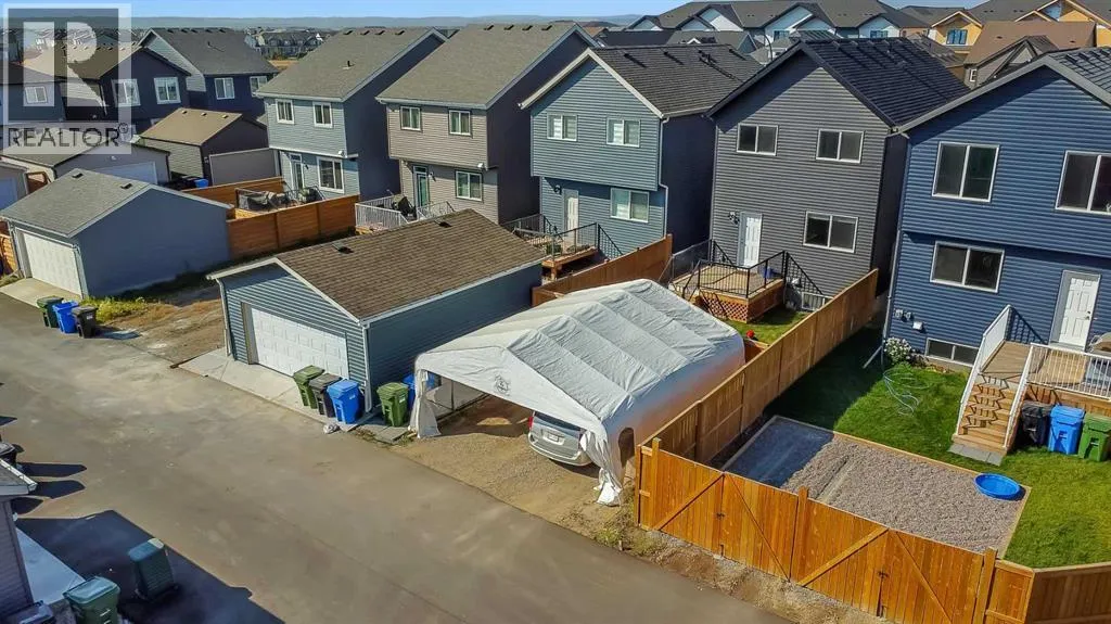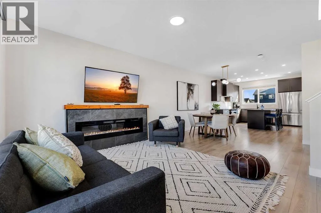4 BEDROOMS|3.5 BATHROOMS|FULLY DEVELOPED BASEMENT WITH SIDE ENTRANCE|FULLY LANDSCAPED. Situated in the innovative and vibrant community of Rangeview, this beautifully designed, open-concept home combines modern style with everyday comfort. With over 2,000 sq. ft. of developed living space, high-quality finishes, and thoughtful upgrades throughout, this home is sure to impress. Step inside to 9' ceilings and luxury vinyl plank flooring that flow seamlessly across the main level. The spectacular kitchen is masterfully designed for efficiency and entertaining. Featuring quartz countertops, upgraded stainless steel appliances, built-in microwave, a stylish chimney hood fan, and a sprawling island. The kitchen flows seamlessly into a spacious dining area and living room, complete with a cozy fireplace, ideal for gatherings and relaxation. A convenient powder room and mudroom complete the main floor. Upstairs, the second floor continues to impress with a convenient laundry room and a 4-piece main bathroom, serving two versatile secondary bedrooms. The primary suite offers a cozy and intimate retreat with a thoughtfully designed walk-in closet and a luxurious 3-piece ensuite with quartz countertops, a spacious upgraded shower with sliding glass door, and modern finishes. The fully developed basement, with its own side entrance, expands your living options with a large family room, 9' ceilings, a spacious bedroom, and a full 4-piece bathroom â perfect for guests or extended family. Step outside to your fully landscaped backyard, complete with a rear deck, full fencing, and a rear gravel parking pad with a double covered parking shelter. Additional features include triple pane windows, tankless hot water heater, BBQ gas line, solar panels (owned outright), and smart home technology solutions. This home is ideally positioned on a quiet street and is less than a 2-minute walk to a future school, parks, and walking paths, making it a fantastic choice to call home. Rangeview is a vibrant, family-oriented community designed around garden-to-table living. Here, youâll find community gardens, orchards, and greenhouses woven together with parks, playgrounds, and scenic pathways. (id:27476)