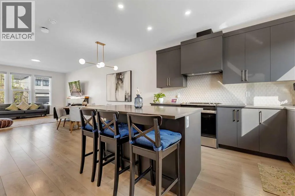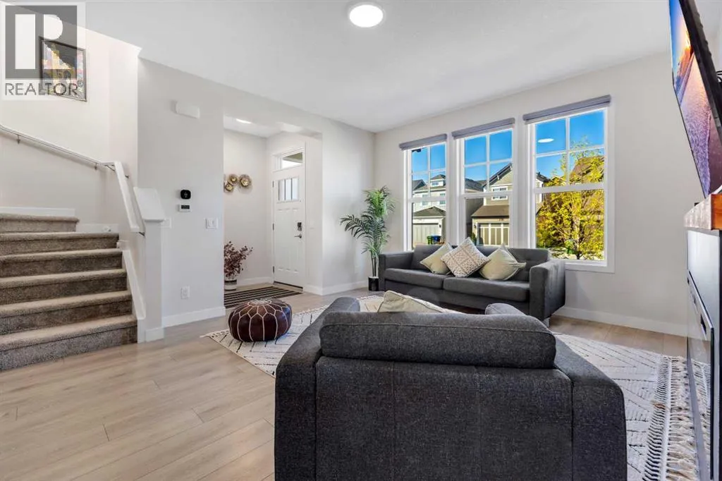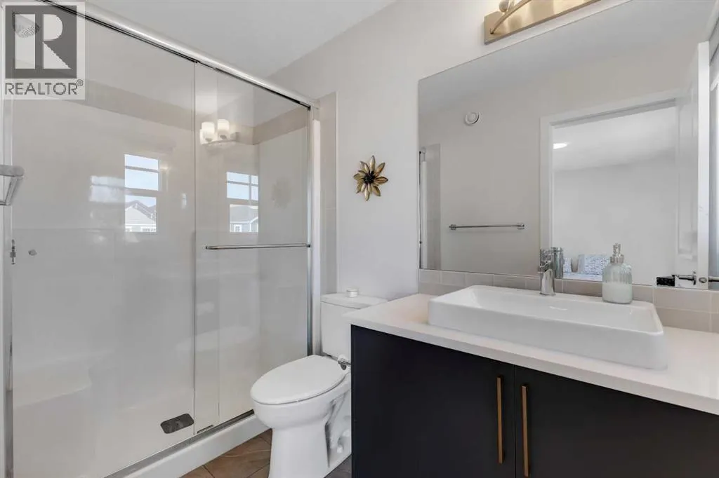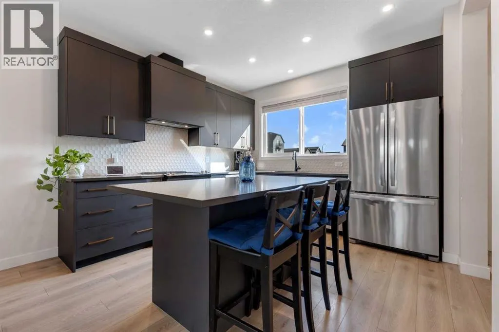 4 BEDROOMS|3.5 BATHROOMS|FULLY DEVELOPED BASEMENT WITH SIDE ENTRANCE|FULLY LANDSCAPED. Situated in the innovative and vibrant community of Rangeview, this beautifully designed, open-concept home combines modern style with everyday comfort. With over 2,000 sq. ft. of developed living space, high-quality finishes, and thoughtful upgrades throughout, this home is sure to impress. Step inside to 9' ceilings and luxury vinyl plank flooring that flow seamlessly across the main level. The spectacular kitchen is masterfully designed for efficiency and entertaining. Featuring quartz countertops, upgraded stainless steel appliances, built-in microwave, a stylish chimney hood fan, and a sprawling island. The kitchen flows seamlessly into a spacious dining area and living room, complete with a cozy fireplace, ideal for gatherings and relaxation. A convenient powder room and mudroom complete the main floor. Upstairs, the second floor continues to impress with a convenient laundry room and a 4-piece main bathroom, serving two versatile secondary bedrooms. The primary suite offers a cozy and intimate retreat with a thoughtfully designed walk-in closet and a luxurious 3-piece ensuite with quartz countertops, a spacious upgraded shower with sliding glass door, and modern finishes. The fully developed basement, with its own side entrance, expands your living options with a large family room, 9' ceilings, a spacious bedroom, and a full 4-piece bathroom â perfect for guests or extended family. Step outside to your fully landscaped backyard, complete with a rear deck, full fencing, and a rear gravel parking pad with a double covered parking shelter. Additional features include triple pane windows, tankless hot water heater, BBQ gas line, solar panels (owned outright), and smart home technology solutions. This home is ideally positioned on a quiet street and is less than a 2-minute walk to a future school, parks, and walking paths, making it a fantastic choice to call home. Rangeview is a vibrant, family-oriented community designed around garden-to-table living. Here, youâll find community gardens, orchards, and greenhouses woven together with parks, playgrounds, and scenic pathways. (id:27476)