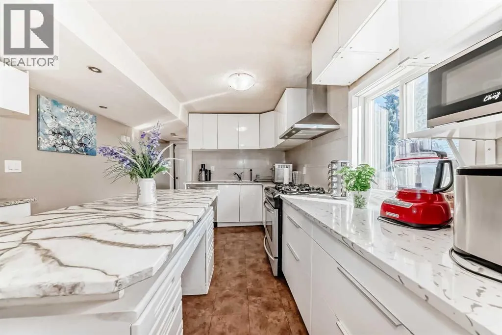 50' X 124' LOT/ R-CG ZONING/SEPARATE ENTRANCE/BACHELOR SUITE/4-BED/3 BATH/1612 SQ FT. Seize the opportunity! This rare and extensive 1990 remodel transformed the original bungalow into a beautifully upgraded two-storey house. Nestled on a quiet street in the heart of WEST Bowness, with over 2150 Sq/ft of total living space, this versatile property presents an excellent opportunity, whether you seek a comfortable family home, a reliable rental investment, or strategic land for a future 4 semi-detached with secondary suites. The home boasts a charming STUCCO exterior, four entrances and both levels offer beautiful views of Canada Olympic Park (especially during the skiing season). The main floor has a large entrance with an exterior FRONT PORCH. Step inside and be greeted by a bright, spacious main floor bathed in natural light from west and south facing windows. The upgraded kitchen (2018) is a true chef's dream, featuring GRANITE countertops finished with a stylish, easy-to-clean ceramic tile backsplash, vinyl flooring, a gas range, a large pantry, and new IKEA white cabinets + SS appliances. This area flows seamlessly into the main living spaces with upgraded laminate flooring, providing plenty of room for family gatherings and entertaining. For ultimate convenience, the main floor also includes a full bathroom and laundry facilities (2015). Off the kitchen you have access to a large deck with full exposure to the HUGE BACKYARD. This home is perfect for a growing family, offering FOUR large bedrooms on the upper level. The generous primary bedroom is a standout, providing a secluded retreat with its own separate second-floor staircase and a massive walk-in closet. Beyond the main living area, the property offers fantastic income potential with an illegal BACHELOR SUITE built in 2015. Featuring its own separate side entrance and sidewalk, KITCHENETTE, 4-piece bathroom, and a laundry connection, along with an EGRESS window and new TILE flooring. This spacious ille gal suite is ideal for extended family or a significant mortgage helper with the potential of generating about $1200/month. The huge, private, and fenced yard is an oasis featuring fruit trees and a playground area, while a large front concrete pad leads conveniently to the back. Enjoy your morning coffee on the covered front porch or host a summer BBQ on the rear deck off the kitchen. The Property also includes an OVERSIZED (24x24) DOUBLE garage, perfect for storage and parking. This PRIME LOCATION can't be beat! You're just steps away from nature with Bowness Park, Canada Olympic Park, Winsport. In addition, the home offers incredible access to community amenities all within walking distance to elementary & high schools, transit, and just a few minutes' drive to shopping centres, new Calgary Farmers market, Foothills & Childrenâs Hospitals, University of Calgary (UofC), and major thoroughfares like Stoney Trail, TransCanada highway to the mountains, and city pathways leading straight to downtown. (id:27476)