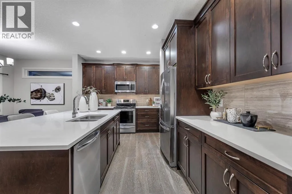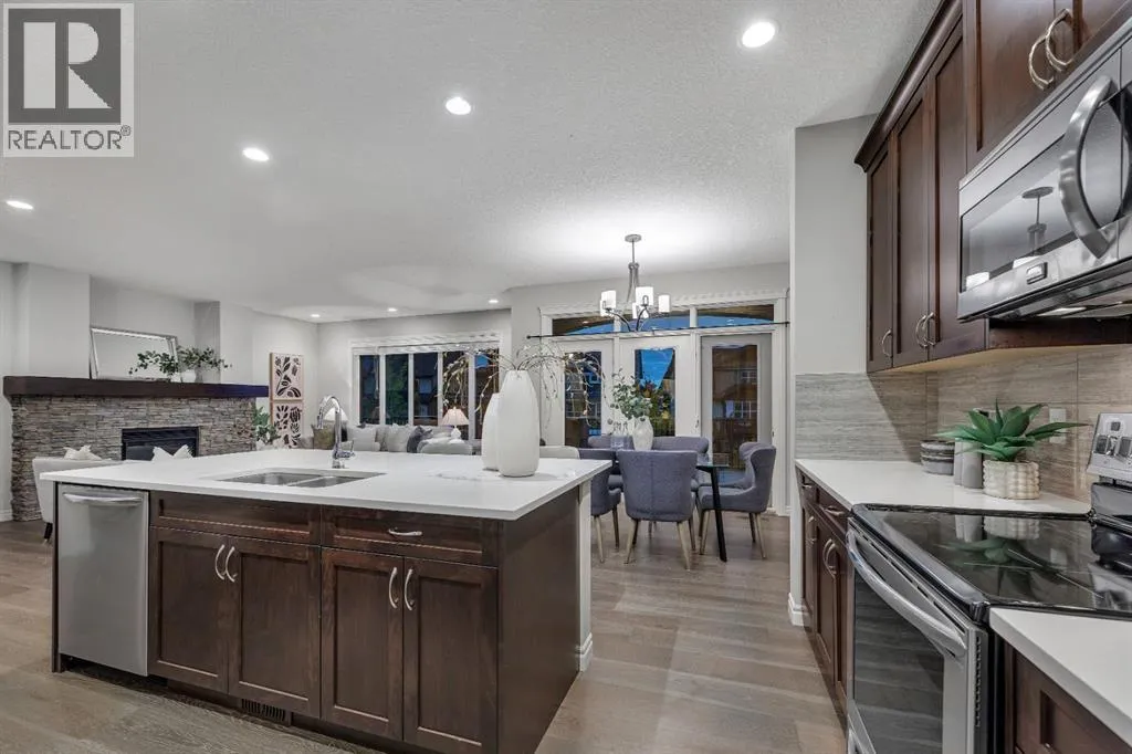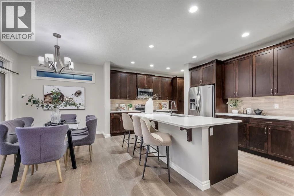 Step into this stunning 4-bedroom Trico built walkout home, offering over 3,300 sq ft of developed living space, and backing directly onto a peaceful pathway with direct access to the Mahogany wetlandsâproviding rare privacy and scenic views right in your own backyard. The fully fenced yard and elevated balcony make it easy to enjoy your morning coffee or take in breathtaking evening sunsets while overlooking one of the most desirable natural landscapes in the city. Inside, a grand front entry leads into a bright, open-concept main floor where expansive windows flood the kitchen, dining, and living areas with natural light. A central fireplace serves as a cozy focal point of the living room, while the kitchen features a quartz countertop island, generous counter space, and direct access to the upper balcony for effortless indoor-outdoor living. A smart walkaround layout connects seamlessly to the mudroom, attached garage, and convenient half-bath. Throughout the main floor, engineered hardwood flooring enhances the sense of flow and style. Upstairs, you'll find a spacious bonus room ideal for a media area or playroom, along with two additional bedrooms that share a full bath. The standout is the luxurious primary retreat, complete with high tray ceilings, a spa-inspired ensuite featuring a soaker tub, walk-in shower, double vanity, and a large walk-in closet. The fully finished walkout basement has been newly developed with modern style ~ which offers even more living space, including another generous great room with direct access to the backyard and the serene private pathway beyond which takes you through the various nature setting wetlands. You will also find a spacious additional bedroom with outdoor access, a 3-piece bathroom, and a built-in bar areaâperfect for entertaining. For further comfort and convenience, the home has dual air-conditioning, perfect for year-round comfort! Located in the vibrant lake community of Mahogany, you can enjoy exclusive access t o beaches, swimming, paddleboarding, and year-round recreation with skating as a winter seasonal hi light. With top-rated schools, shops, restaurants, and a lively community center nearby, Mahogany offers the perfect blend of nature, luxury, and convenience. (id:27476)