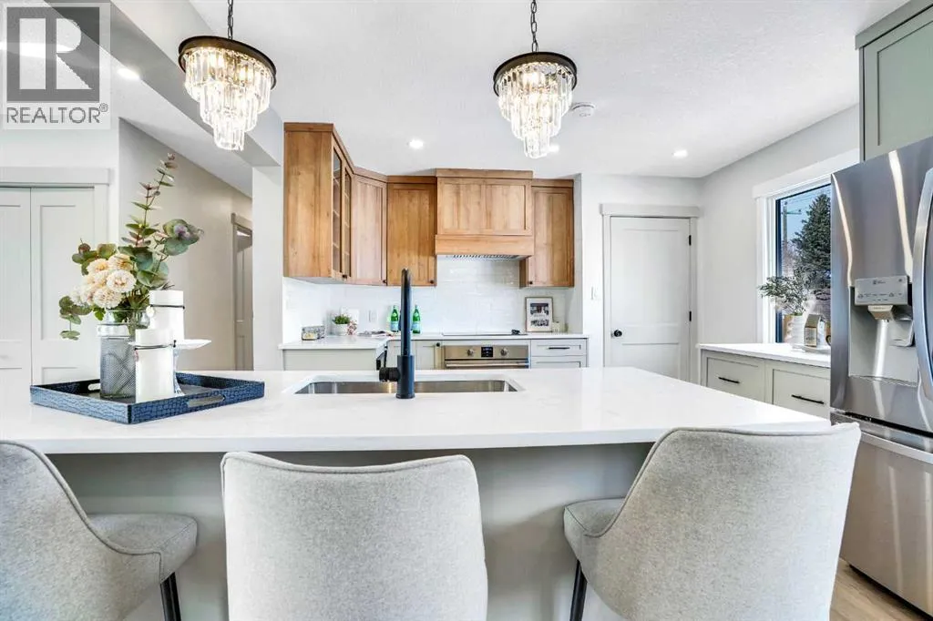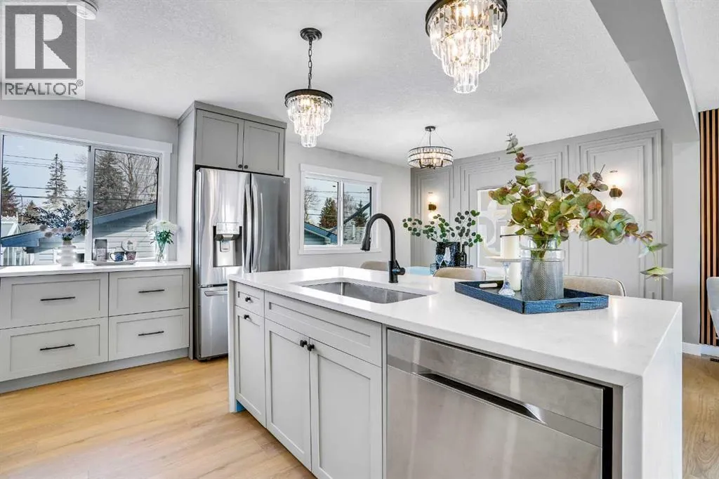 Imagine a stunning home with a curb appeal located in a neighbourhood of Southland community. Nearby Schools and shopping, easy access to highway. As you step inside, you're greeted by an open-plan living area, exuding warmth and sophistication. This home has everything, New windows on the main floor, Egress windows in the basement, brand new water Heater, vinyl planks throughout. In the main floor lays 3 bedrooms, shower stand bathroom, in unit laundry, electric fireplace, accent wall, modern kitchen with built-in features. The island topped with a beautiful slab of quartz, serves as a social hub, perfect for food preparation and entertaining guests. The adjacent dining area features a stunning chandelier adding a touch of elegance to the space. Down in the basement with separate entrance, consider a 2 bedroom illegal suite and 1 bath, its own washer dryer, pantry and kitchen. This home is great for two families, or live up rent down for extra cashflow-mortage helper. In the backyard fully paved and fenced, with double heated garage, a greenhouse to do all your gardening in the Spring and a shed for storage. This modern home is the perfect blend of form and function design to make your life easier, more comfortable and utterly enjoyable. Book your showing today! (id:27476)
