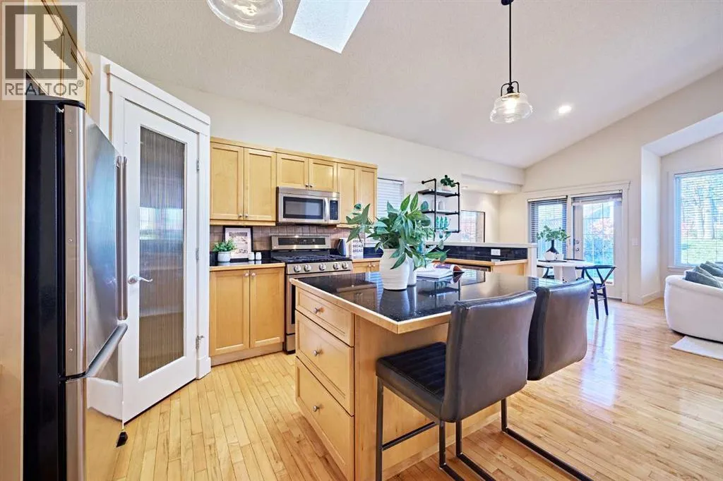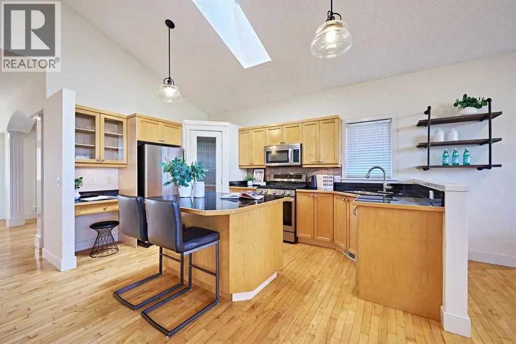 Welcome to 250 Strathridge Place SW â a Morrison-built custom bungalow offering over 2,900 sq ft of beautifully designed living space, perfect for families, professionals, or those who love to entertain. With 4 bedrooms, 3 full bathrooms, and a dedicated home office, this property blends comfort, functionality, and thoughtful updates in one inviting package.Step inside to a bright, open-concept main floor featuring 9â vaulted ceilings, a skylight, extra-large windows, hardwood flooring, and fresh paint, all centerd around the warmth of a fireplace. The kitchen is a chefâs delight with central island, ample cabinetry, and newer appliances, flowing seamlessly into the dining and living areas for effortless gatherings. The main level hosts 2 generous bedrooms, including a primary suite with a private 4-piece ensuite featuring a relaxing jacuzzi tub, plus another full 4-piece bath.The fully finished basementâwith 8â ceilingsâoffers incredible versatility, including 2 additional bedrooms, a full bathroom, a spacious rec room with custom built-ins, and a separate office for work-from-home convenience. Comfort is enhanced year-round with central air conditioning, while the irrigation system keeps your landscaping lush with ease.Tucked away in a quiet cul-de-sac in the highly sought-after community of Strathcona Park, this home offers quick access to Stoney Trail, is just 15 minutes to downtown, and is close to top-rated public and private schools, shopping, parks, playgrounds, and transit.Donât miss your chance to own this bright, functional, and well-appointed bungalow â book your private showing today! (id:27476)