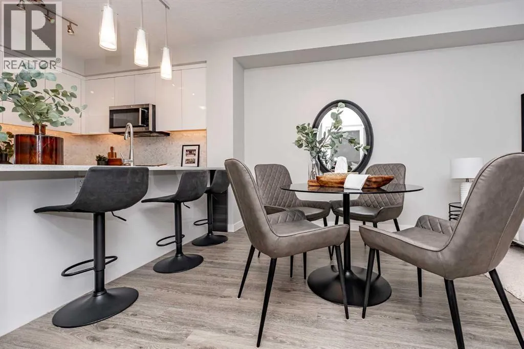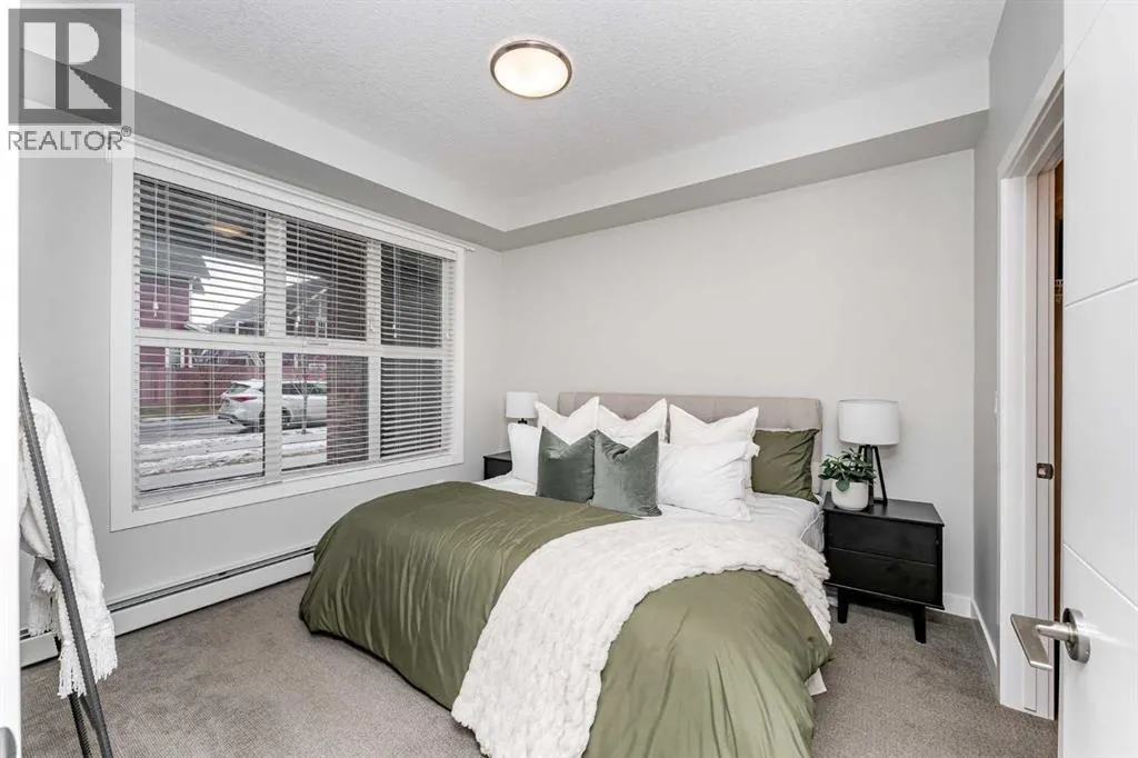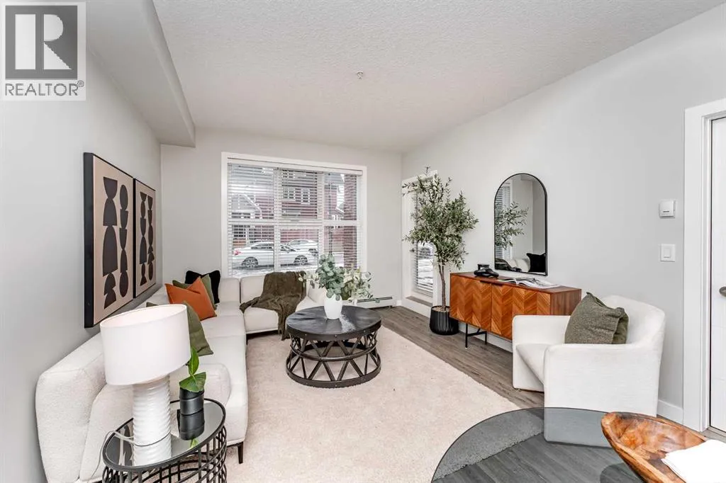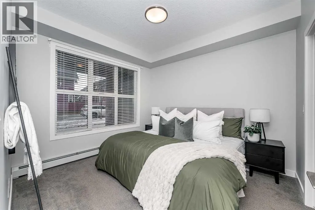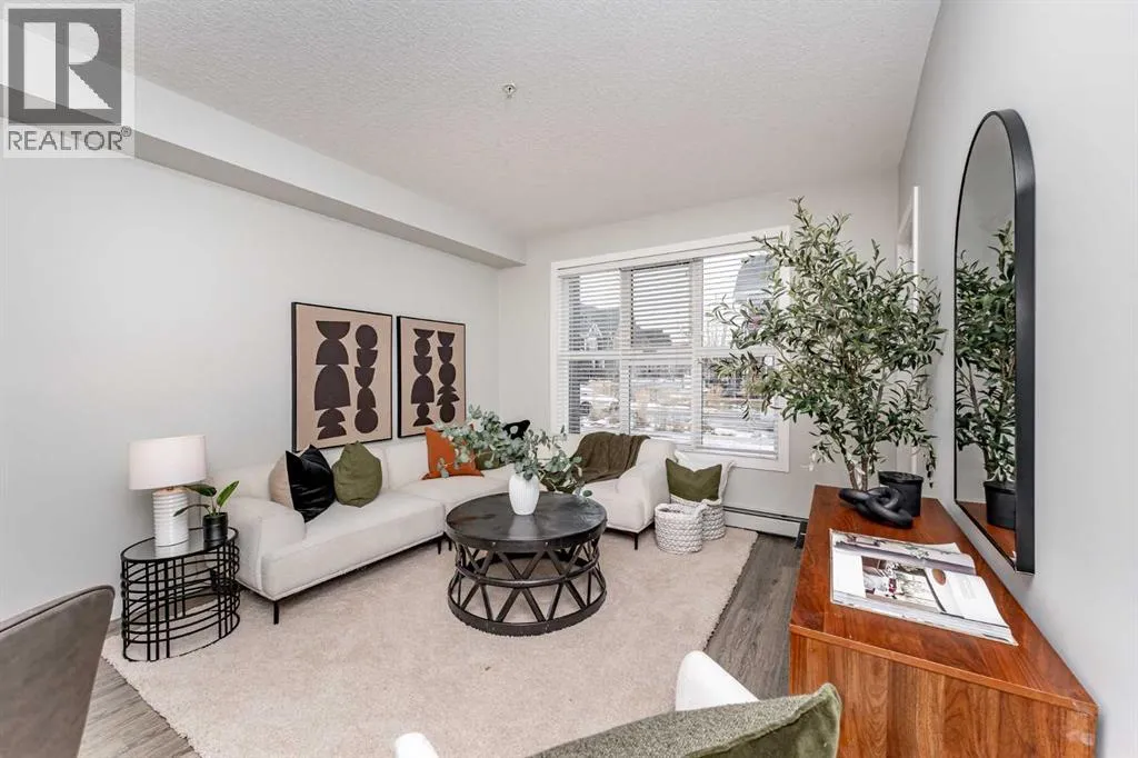 BUILDER SALE! Looking for upgrades in a spec unit? This might be the one. Welcome to the Axess building, located in the heart of the historic Currie Barracks community! This beautifully upgraded 1-bedroom unit features soaring 9-foot ceilings. Step inside to find luxury vinyl plank flooring and an abundance of natural light streaming through oversized windows. The stylish kitchen showcases a modern blend of crisp white and dark cabinetry, upgraded stainless steel appliances including a gas stove, quartz countertops, and a designer tile backsplash. An open counter connects seamlessly to the dining area, perfect for entertaining. The spacious living room leads to a top-floor balcony with a gas BBQ line and unobstructed southern viewsâthe perfect place to relax and enjoy breathtaking sunsets. The generously sized primary bedroom features a walk-through closet with direct access to the elegant 4-piece bathroom, complete with tile flooring, quartz countertops, and a soaker tub. Just off the kitchen is a versatile nookâideal for extra storage or a small home office setup. Additional highlights include in-suite laundry, underground parking with a car wash, and a private storage locker located directly in front of your parking stall. All this in a prime locationâsteps from Mount Royal University, walking paths, parks, shopping, and with easy access via Crowchild Trail to Marda Loop and downtown Calgary. A truly exceptional opportunity to own in one of Calgaryâs most desirable communities. (id:27476)