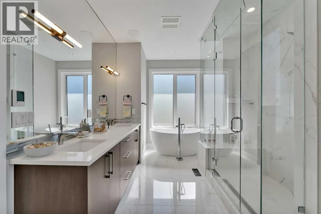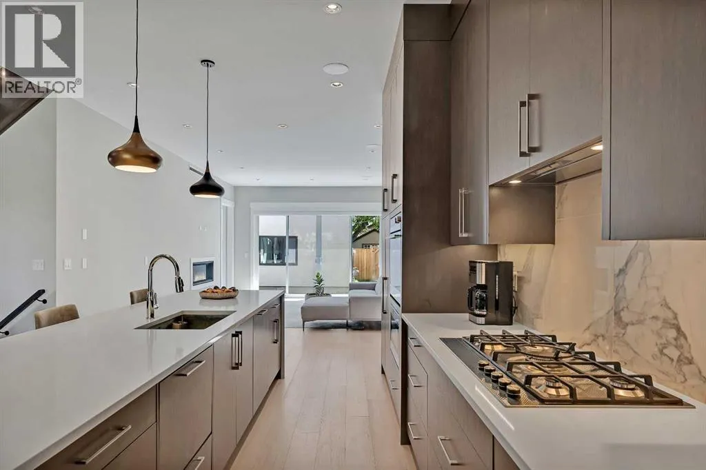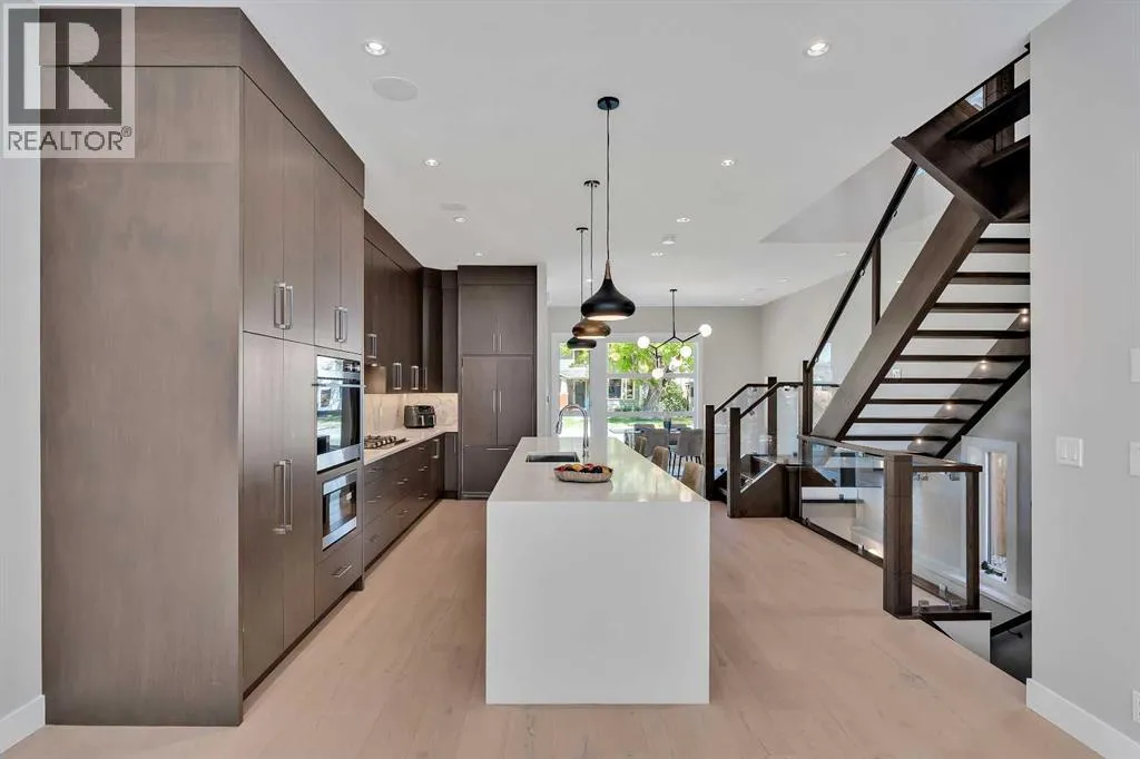A rare find on a quiet, tree-lined avenue â this Paul Lavoie Group + Phase One Designs custom home blends refined luxury with warm, elevated living. This inner-city sanctuary is the perfect combination of inviting luxury, thoughtful finishes, and conveniences just steps away... Welcome to 617 19 Avenue NW.Greeted with an open floorplan, a spacious dining room leads you to the chef's kitchen built for gatherings, featuring floor-to-ceiling solid maple cabinetry and a Fisher & Paykel appliance suite with built-in fridge, oven, dual dishwashers and slide-out microwave. An 11' quartz-waterfall island anchors the space and naturally becomes the centre for family breakfasts, homework sessions and dinner parties. The bright south-facing living room opens through dual sliders to the patio and is warmed by a Napoleon gas fireplace, creating a perfect setting for cozy nights in and relaxed weekend lounging.Practicality meets design with thoughtful storage throughout â an oversized mudroom and hidden closets keep life organized â while open-riser oak-and-glass stairs with inset LED lighting provide a welcoming spine through the home. The second-storey family room, topped with a skylight, offers an airy hub for movie nights, playdates or focused work-from-home days while still connected to the household flow.The primary suite is a true retreat with dual-aspect windows, a boutique-style walk-in closet with LED rails and a spa-like ensuite featuring a soaker tub, steam shower, dual vanities and heated tile floors â an ideal place to unwind. Two additional bedrooms include custom built-ins and enormous windows, and a well-appointed main bath designed for family comfort.The finished basement elevates entertaining with a wet bar and wine fridge, a custom wine rack with LED accent lighting and a large rec room. Exceptional storage and utility space are rare for an infill and the basement is roughed-in for radiant in-floor heat and A/C, making it perfect for hobbies, hosting o r a home theatre. Outside, the private backyard offers a low-maintenance lawn, expansive aggregate patio with BBQ gas line and mature fencing, plus a double detached garage with a window.Live where weekend plans are a short walk away: stroll under leafy canopies to local cafés, meet neighbours at community events, or take a quick bike ride to Nose Hill and/or Confederation Park. Enjoy easy downtown commutes and Centre Street conveniences while returning each day to a calm, designer home built for memory-making. This home is move-in ready and showing like new â this rare 30' custom infill delivers designer finishes, purposeful family spaces and the kind of comfort that makes you proud to host, relax and raise a family; and right on time for the holiday season. Book a private showing today! (id:27476)