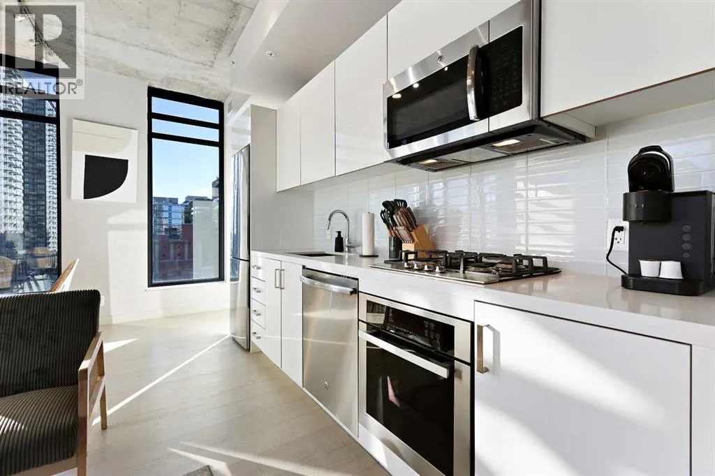 Experience modern urban living in this stylish 2-bedroom, 2-bathroom corner condo on the 6th floor of the sought-after Six and Tenth building in Calgaryâs Beltline. Floor-to-ceiling windows fill the space with natural light and showcase stunning views of downtown. The open layout features exposed concrete, quartz countertops, a gas range, and stainless-steel appliances. Enjoy your private balcony, in-suite laundry, and titled underground parking. Building amenities include a fitness centre, outdoor pool, concierge, and social spaces. Located steps from amazing restaurants, shopping, and transit, and minutes to the Stampede grounds. Short-term rentals permitted, offering great flexibility for owners and investors alike. (id:27476)
