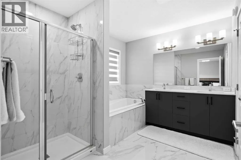 **See The Link for the YouTube Virtual Tour!** Over 3,100 livable square feet in this 7 BDRM + 4 FULL Bath home with 2 Bdrm Basement LEGAL Suite + Separate Entrance, and Central A/C in the gorgeous Lake Community of Mahogany! Say hello to Main Floor features like 9â ceilings, beautiful, open-concept Kitchen with large island, Quartz countertops, full-height custom cabinetry, GAS stove and stainless steel appliances and lavish tile backsplash. There's also a VERY large walk-in pantry with plenty of storage options, a FULL Bathroom and a Bedroom, along with a large Living Room with electric fireplace, room to mount your flatscreen TV and large Dining Room as well. Upstairs, youâll find a large central Family/Bonus room ideal for relaxing with the family, Primary Bedroom with walk-in closet and lavish 5-pc Ensuite Bath with tiled soaker tub, separate shower and dual vanities. Three more additional bedrooms, another Full Bathroom, and walk-in Laundry Room, with additional storage, round out the Upper Level. The fully-finished Lower includes a LEGAL Suite with a separate exterior entrance, as well as a separate furnace and water heater. There's also another full Kitchen with stainless steel appliances and spacious Living/Dining Room area. There are also 2 Bedrooms, and 4-pc Bath along with a built-in, stacked, washer and dryer laundry area. The fenced and landscaped backyard has the deck already built, along with a patio for BBQ season! The separate/private side entrance has paving stones laid down for easier access and maintenance. Enjoy lake access privileges with four-season lake living, and a short walk to recreation areas like tennis courts, splash park, playgrounds, hockey rink, sandy beaches, walking/biking paths and more! Also close to great shopping, schools, The South Health Campus hospital, The Mahogany Beach house and easy access to Stoney Trail and Deerfoot Trail. This is a wonderful home - with possibility of using the Legal Suite as a mortgage helper or f or your extended family living needs! (id:27476)