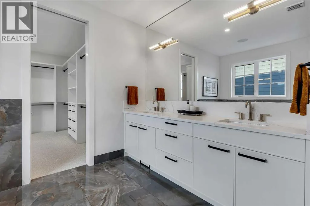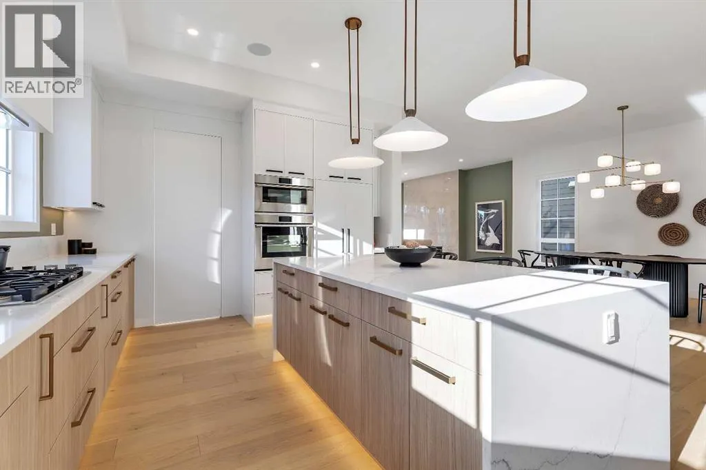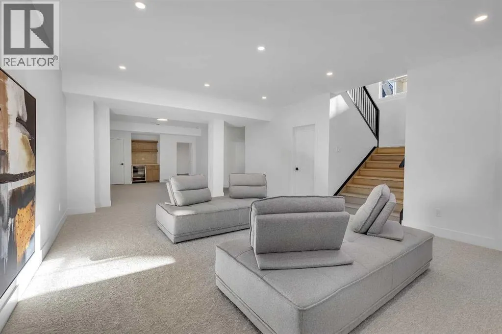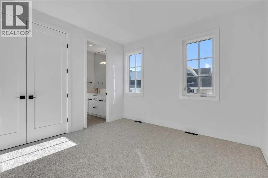 Welcome to PARK SIDE OASIS DESIGNED by ANDISON RESIDENTIAL DESIGNS & BUILT BY DOMINIUM RESIDENTIAL. ! Located on one of currie's most sought- after streets . This home boasts over 5,300 square feet of developed space and is perfect for families seeking a blend of comfort, luxury, and convenience. Discover elegance and modern living in this stunning Georgian-style residence, just 7 minutes from downtown Calgary. This exceptional home boasts a prime corner lot facing a picturesque park, offering an idyllic setting for families and professionals alike.As you approach the property, youâll be captivated by its impressive curb appeal, enhanced by a charming courtyard and a spacious side deck, complete with a gas line for effortless barbecuing. The grand entryway welcomes you into an open-concept main floor adorned with soaring 10-foot ceilings and an abundance of natural light pouring through ample windows. Thoughtfully designed wide hallways and staircases lead you through this expansive layout, ideal for both entertaining and everyday living. The main floor features a generous home office, perfect for remote work, while the chefâs kitchen is a culinary enthusiast's dream. Outfitted with built-in FISHER & PAYKEL appliances, including a panel-ready refrigerator and dishwasher, this kitchen also boasts a convenient POT FILLER, extensive pantry space, and elegant cabinetry, making meal preparation a delight. Ascend to the upper floor to find the luxurious primary suite, overlooking the serene park, featuring a super-sized ensuite bathroom and a spacious walk-in closet. This level also includes a large laundry area with a utility sink and ample storage solutions, along with two additional well-sized bedrooms that share a stylish Jack and Jill bathroom. The lower level is an entertainer's paradise, showcasing a massive living room, games area, and a fully-equipped bar, complemented by a versatile flex room that can serve as a gym or media space. A fourth bedroom complete s this impressive floor, making it a perfect retreat for guests.The home features a FULLY FINISHED THREE-CAR GARAGE, complete with a sleek EPOXY FLOOR and fresh paint, ensuring a polished look for your vehicles. The mechanical room is also finished with Epoxy floor, adding to the overall quality and attention to detail. Thoughtful STAIR LIGHTING enhances the beauty and functionality of the home, providing a warm glow as you navigate the HARD WOOD ON THE STAIRWAYS.Equipped with two AIR CONDITIONING units and HEATED FLOORS IN BASEMENT and primary ensuite, this home ensures year-round comfort. Innovative technology features, including Alexa voice commands for lighting and security, indoor and outdoor speakers, and a Wi-Fi irrigation system, elevate this residence to modern luxury. Not only does this home provide unrivalled amenities, but its location is equally enticing. Close to shopping, parks, and esteemed schools from preschool to senior high. Its also close to MRU (id:27476)