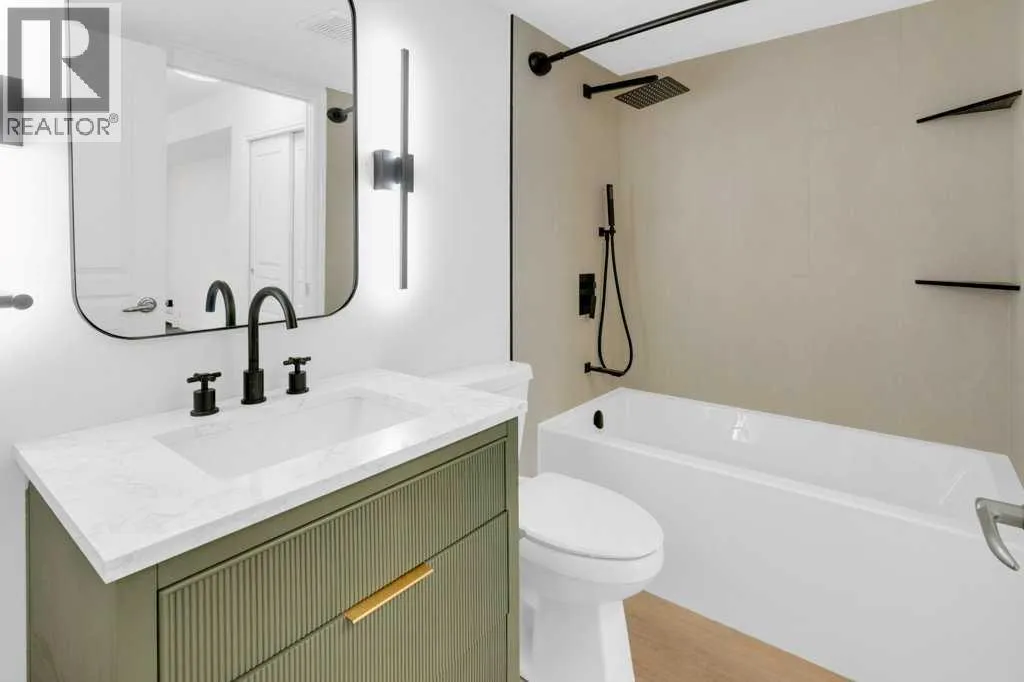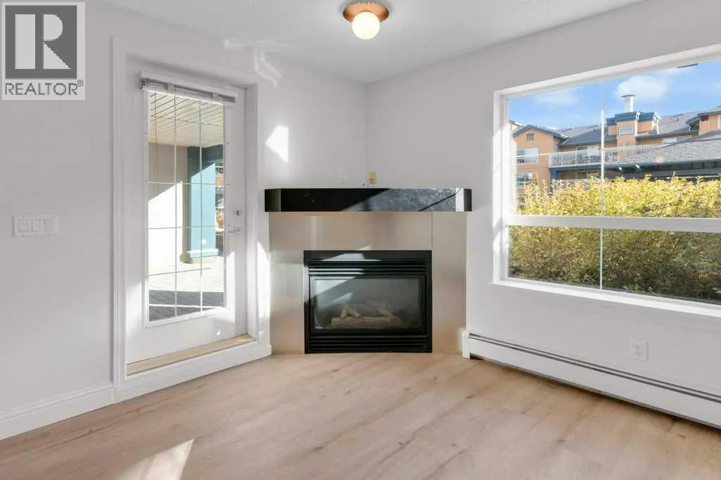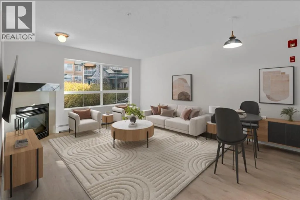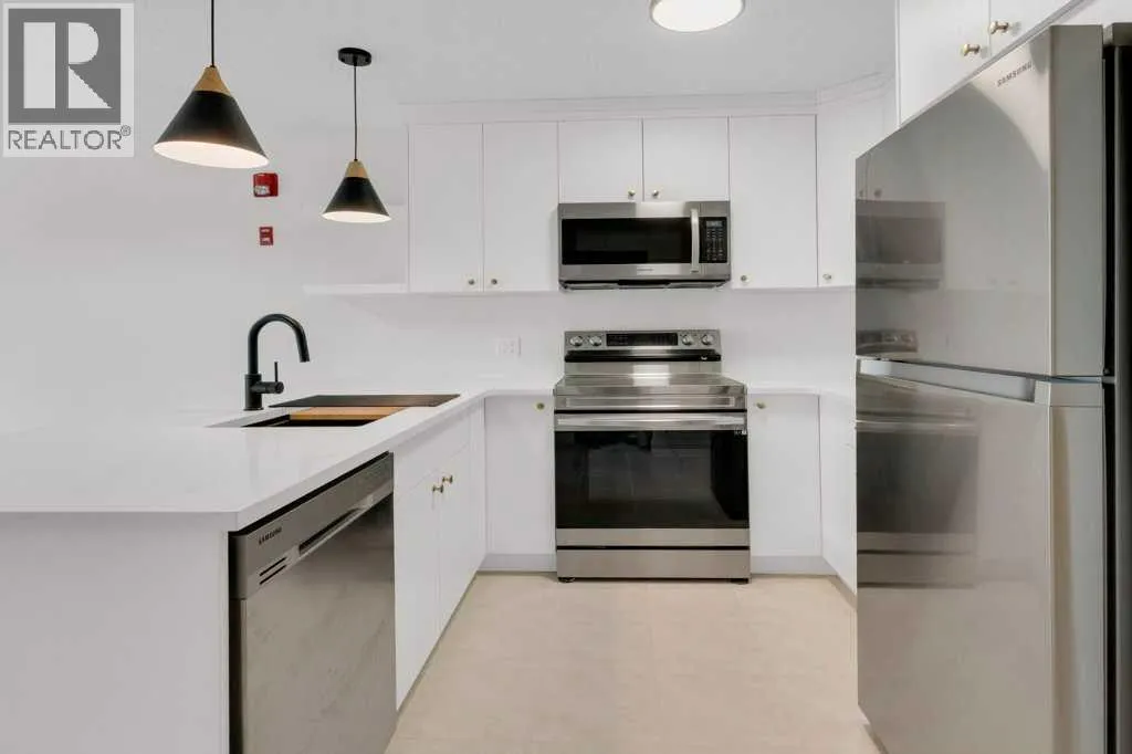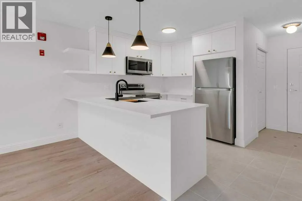 .Take advantage of this unique opportunity to buy a fully renovated condominium unit in the well-run Laurel House complex. Located on the desirable courtyard side of the building, your patio overlooks a secured greenspace, providing a tranquil area to relax and featuring an elaborate gazebo. This home has been completely upgraded with modern fixtures and fittings.The open-plan layout lends itself to entertaining in front of the fireplace or cooking in the new kitchen, which boasts bright white cabinets with quartz countertops, stainless steel appliances, a custom sink setup, and pendant lighting. The bathroom has been refinished with custom fixtures, a new tub and tile surround, and an upgraded vanity with quartz countertops.The spacious bedroom offers flexibility in furniture layout, and a hallway of closets provides convenient access to the bathroom. A study nook has been set up with drawers, cabinets, and a quartz surface. The flooring features tile in the kitchen and foyer, with vinyl plank flooring throughout the rest of the living space.This unit is conveniently located near the social room and gym, which offers a wide assortment of equipment. Laurel House is just a short walk to Mount Royal University and steps away from popular dining establishments. The complex's central location provides easy access to the rest of the city. Organize a showing with your favorite realtor or join us at our two open houses. (id:27476)