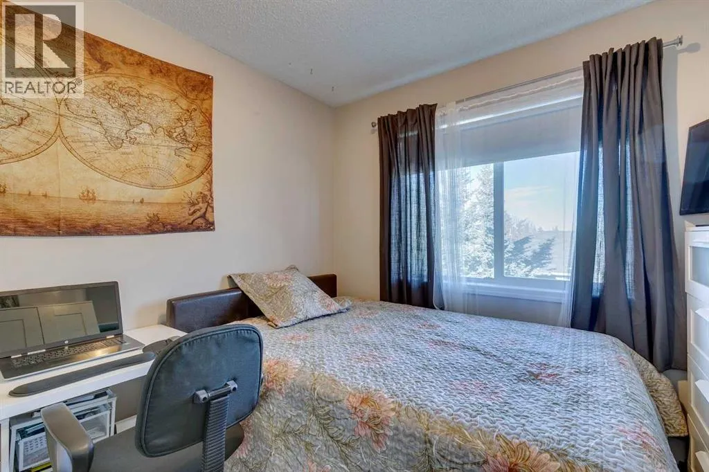 Welcome to Unit 305 at 7 Harvest Gold Manor NEâan exceptional top-floor home that stands out as one of the best in the building - only one direct neighbour! This bright and airy unit is defined by its soaring vaulted ceilings and a stunning wall of windows that fill the open-concept living space with natural light.Step inside to discover a spacious layout featuring a formal dining area and a comfortable living room complete with a cozy gas fireplace. The well-appointed kitchen is semi-open to the main living area, providing the perfect balance of connection and privacy. A dedicated den or home office offers an ideal workspace for those working remotely or needing a quiet retreat.The thoughtfully designed floor plan features two bedrooms located on opposite ends of the unit for maximum privacy. The primary suite includes a walk-through closet leading to a private 3-piece ensuite, while the generous second bedroom is conveniently adjacent to the main 4-piece bath.Additional highlights include in-suite laundry, a dedicated storage room, and a private balcony with a gas line for your BBQâperfect for relaxing or entertaining. This unit also includes a heated underground parking stall with a full storage cage at the front for added convenience.Ideally situated across the street from the T&T Supermarket, close to transit, shopping, major routes, and the airport, this is a rare opportunity to own one of the most desirable top-floor units in the complex.Donât miss your chanceâbook your showing today! (id:27476)