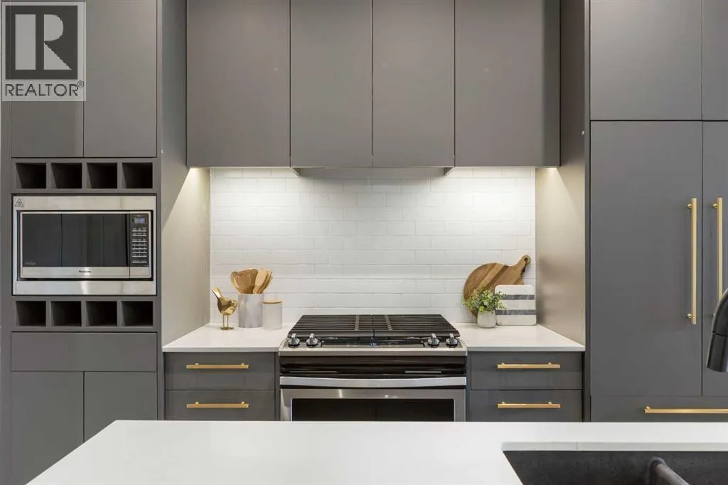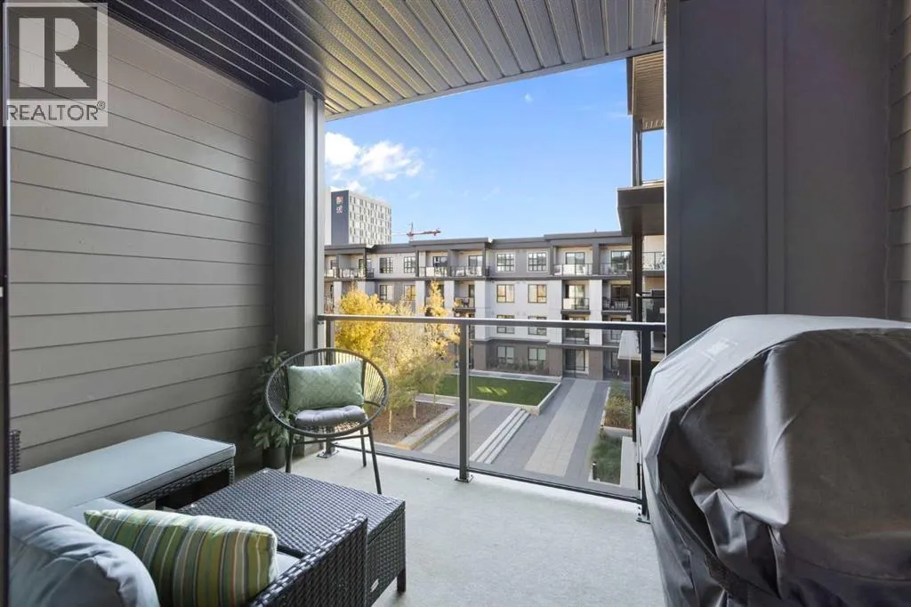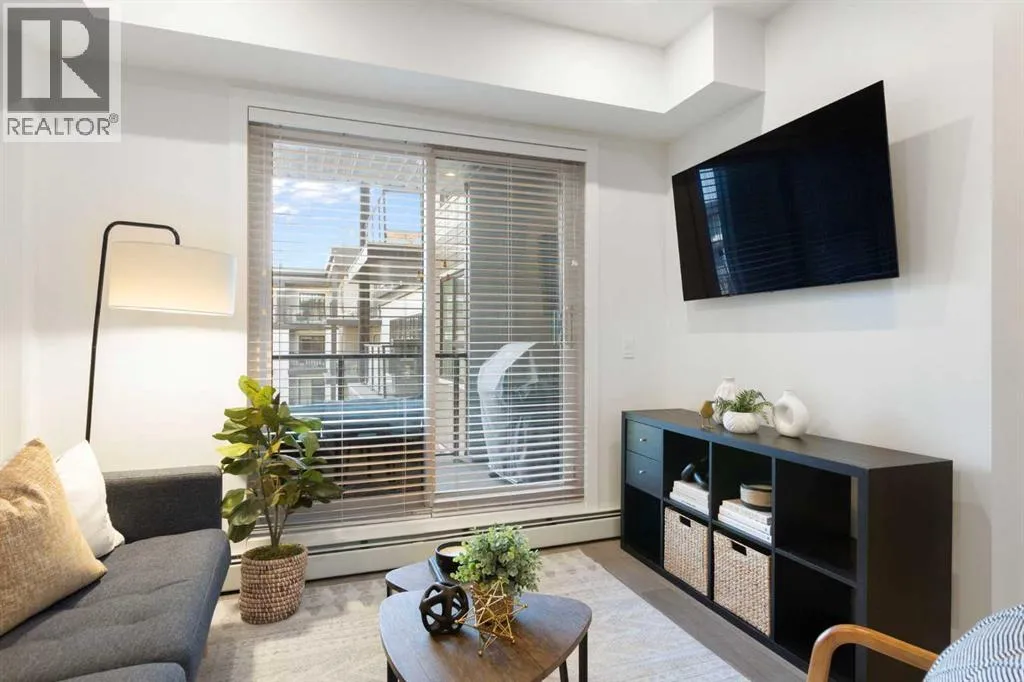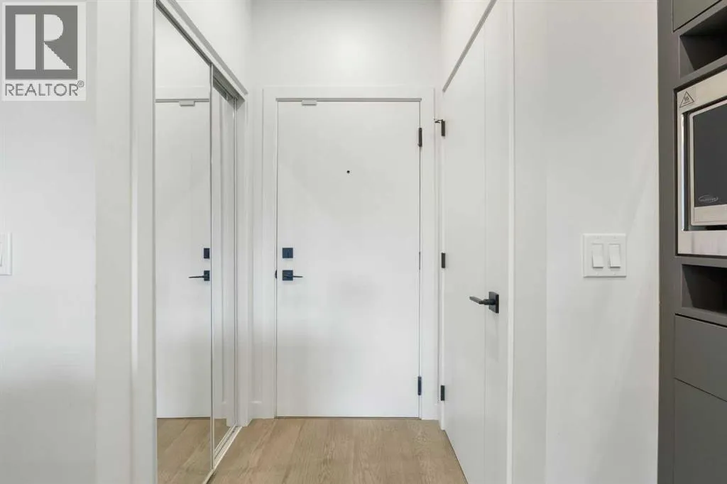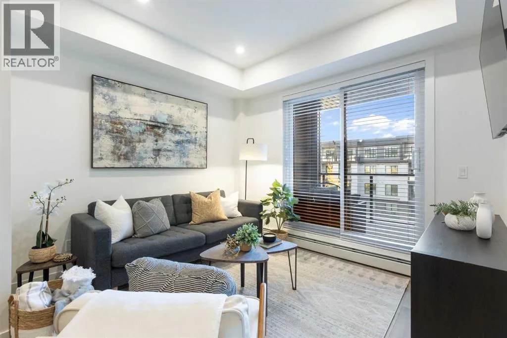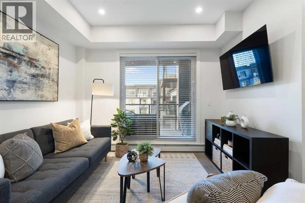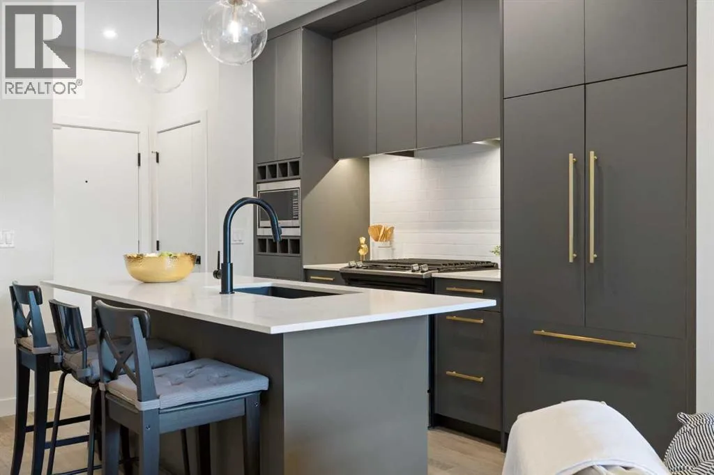 Elevate your lifestyle at Esquireâs Unit 325âwhere design, comfort, and connection define luxury in Calgaryâs University District. DESIGN - Built by award-winning Truman Homes, Calgaryâs builder of choice, this light-filled third-level unit offers 640 sq. ft. of open-concept living. Every element reflects modern sophistication, from the 9-foot ceilings and oak hardwood flooring to the premium fixtures and warm brass accents. The kitchen blends luxury and function with sleek charcoal cabinetry, soft-close drawers, an integrated wine rack, and elegant glass pendant lighting, while the white subway tile backsplash and under-cabinet lighting showcase the stainless steel microwave and gas range, and panelled appliances. Anchoring the heart of the home is the large white quartz island with seating for three, ideal for staying engaged for casual meals or hosting guests. COMFORT - Sun-drenched and airy floor plan with south-facing windows flows seamlessly to a covered balcony overlooking serene courtyard views. With 2 bedrooms, a stylish 4-piece bathroom, in-suite laundry, and LEED Platinum certification, this home offers a polished, comfortable experience. CONNECTION - Living up to its âLive Betterâ slogan, residents enjoy exclusive on-site amenities: 24-hour gym, workshop, pet spa, and bike room. Unique to this unit are titled heated underground parking and same-floor storage (no parkade trips), plus visitor parking in this pet-friendly building. Unmatched access to shop, sip, or get social at your favourite local cafes, shops, grocers, and restaurants, with an off-leash park and transit nearby. Quick drive to downtown and the mountains, and just a short walk to Alberta Childrenâs Hospital, Foothills Medical Centre, and University of Calgary, this home offers tremendous value in one of Calgaryâs most desirable neighbourhoods. Perfect for first-time buyers, investors, downsizers, students, or healthcare professionals seeking unmatched convenience and community. Check out the online virtual tour, schedule your private showing today, and donât miss the chance to own this exquisite Esquire condo Unit 325 in University District! (id:27476)