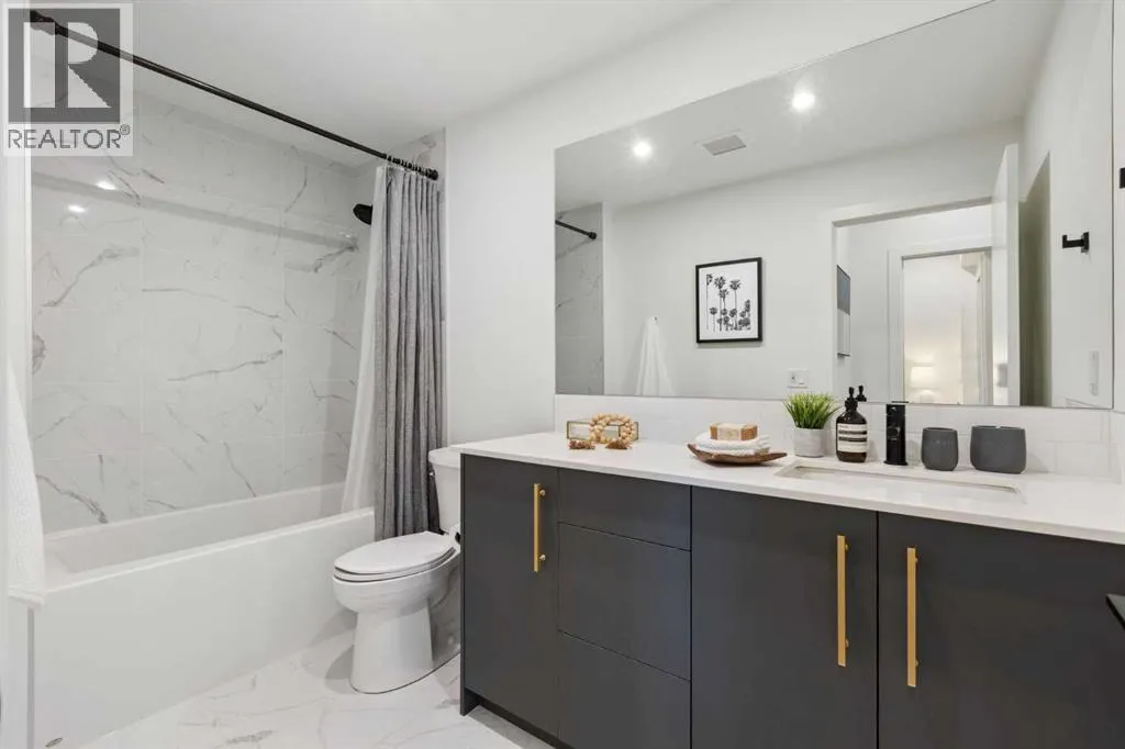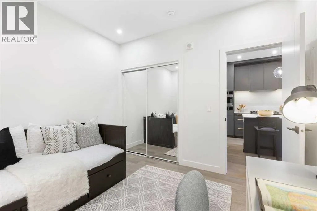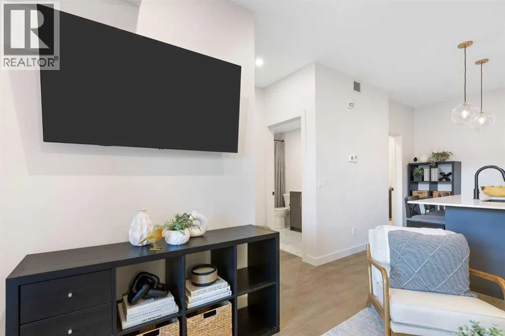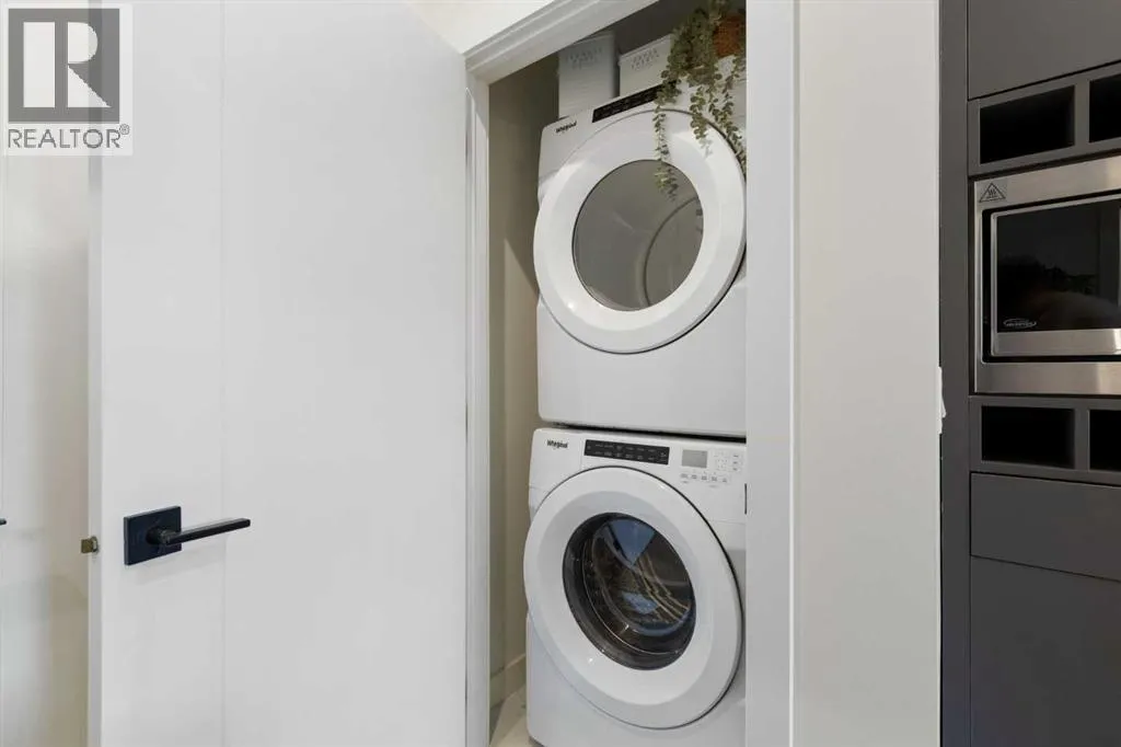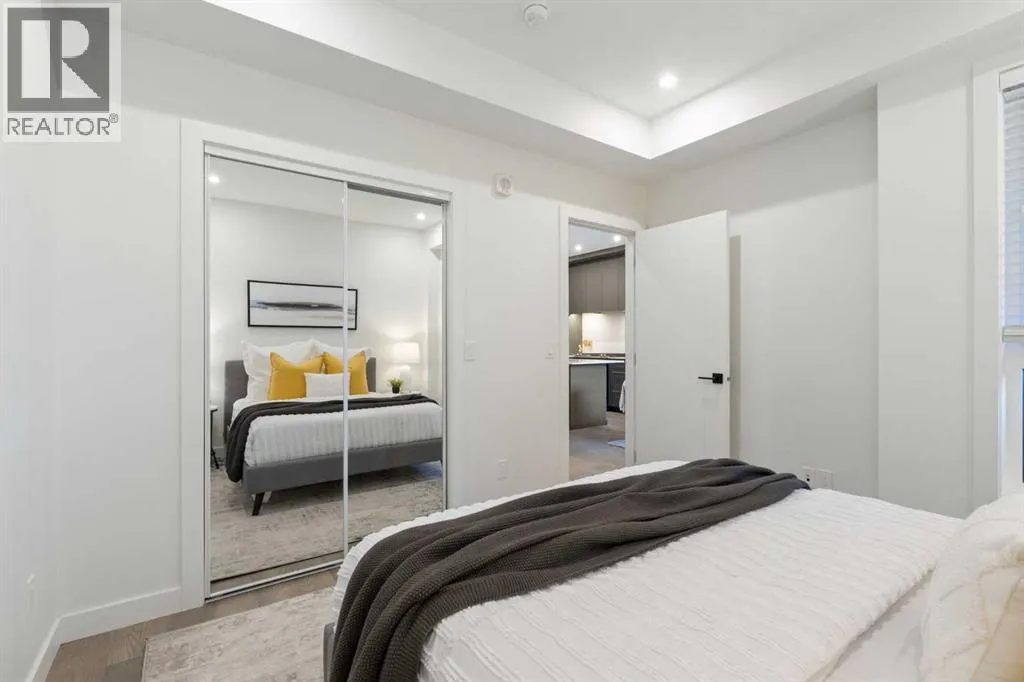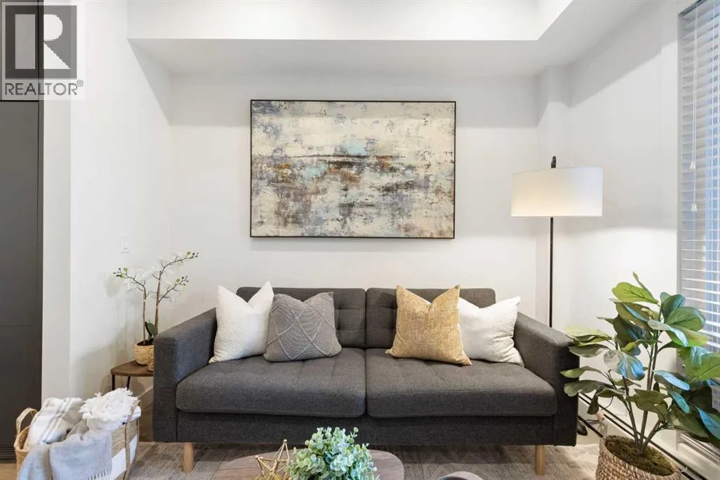 Elevate your lifestyle at Esquireâs Unit 325âwhere design, comfort, and connection define luxury in Calgaryâs University District. DESIGN - Built by award-winning Truman Homes, Calgaryâs builder of choice, this light-filled third-level unit offers 640 sq. ft. of open-concept living. Every element reflects modern sophistication, from the 9-foot ceilings and oak hardwood flooring to the premium fixtures and warm brass accents. The kitchen blends luxury and function with sleek charcoal cabinetry, soft-close drawers, an integrated wine rack, and elegant glass pendant lighting, while the white subway tile backsplash and under-cabinet lighting showcase the stainless steel microwave and gas range, and panelled appliances. Anchoring the heart of the home is the large white quartz island with seating for three, ideal for staying engaged for casual meals or hosting guests. COMFORT - Sun-drenched and airy floor plan with south-facing windows flows seamlessly to a covered balcony overlooking serene courtyard views. With 2 bedrooms, a stylish 4-piece bathroom, in-suite laundry, and LEED Platinum certification, this home offers a polished, comfortable experience. CONNECTION - Living up to its âLive Betterâ slogan, residents enjoy exclusive on-site amenities: 24-hour gym, workshop, pet spa, and bike room. Unique to this unit are titled heated underground parking and same-floor storage (no parkade trips), plus visitor parking in this pet-friendly building. Unmatched access to shop, sip, or get social at your favourite local cafes, shops, grocers, and restaurants, with an off-leash park and transit nearby. Quick drive to downtown and the mountains, and just a short walk to Alberta Childrenâs Hospital, Foothills Medical Centre, and University of Calgary, this home offers tremendous value in one of Calgaryâs most desirable neighbourhoods. Perfect for first-time buyers, investors, downsizers, students, or healthcare professionals seeking unmatched convenience and community. Check out the online virtual tour, schedule your private showing today, and donât miss the chance to own this exquisite Esquire condo Unit 325 in University District! (id:27476)