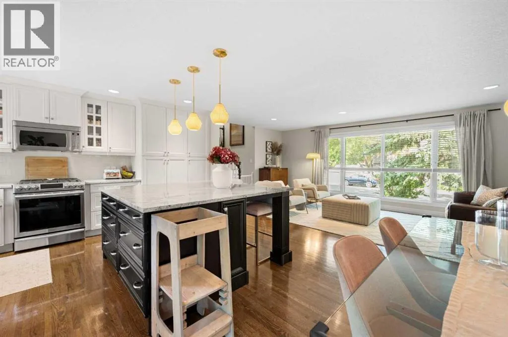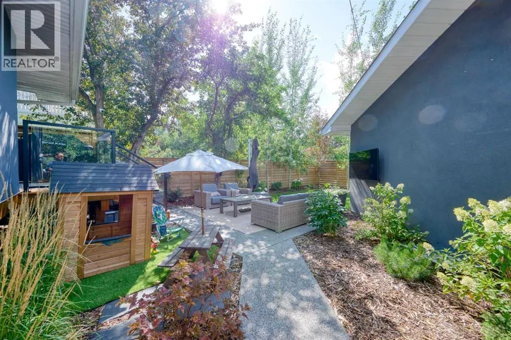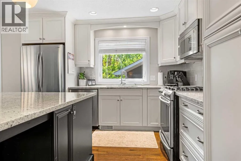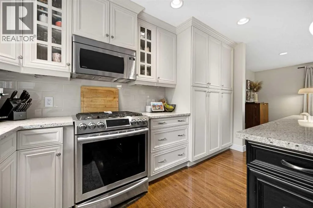 Click brochure link for more details. Exceptional home, across from the park! Stunning and spacious 4-level split. Features: professionally landscaped backyard, semi finished oversized detached double garage w/220v electrical, shed with full electricity + lighting, gasline to deck and garage, hot + cold outdoor hose bibs, both side and rear lane access, steam shower, multiple built ins/organizers, A/C, knockdown ceilings, wood and gas fireplaces, new lighting, beautiful casings, gorgeous site finished hardwood flooring, and more. Walking distance to Chinook Park + Henry Wisewood schools, parks, shops, Heritage Park and Rockyview Hospital. Recent updates include finished laundry room with new washer/dryer + new stair spindles/bannisters (see photos) + new fridge and insulation/drywall in garage. (id:27476)