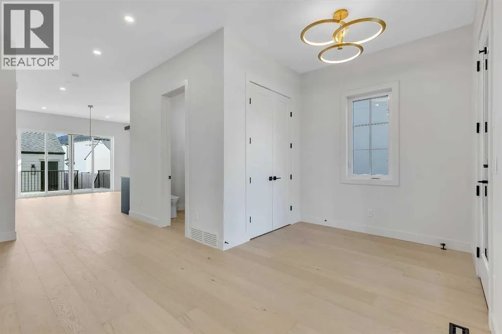 Welcome to HARMONY HAVEN â a stunning modern farmhouse that embodies the essence of contemporary living while embracing the warmth of rustic charm. Designed by PHASE ONE DESIGN and expertly built by DOMINIUM RESIDENTIAL, this home is perfectly situated in the desirable community of Currie, just 7 minutes from Downtown Calgary. With 3,256 square feet above grade and over 4,300 square feet of developed living area, HARMONY HAVEN offers ample space for both relaxation and entertaining. As you approach, the sleek, modern façade draws you in, promising the elegance that awaits within.The heart of this home is the exquisite kitchen, featuring a striking waterfall island, a through sink, and top-of-the-line Fisher & Paykel built-in panel-covered fridge and freezer. Cooking enthusiasts will appreciate the natural gas stove with pot filler, convection oven, and speed oven/microwave, all complemented by stylish three-tone custom cabinetry illuminated by under-cabinet lighting.The spacious living room is designed for comfort, showcasing built-in shelving, a cozy fireplace, and a stunning lighting fixture that adds a touch of sophistication. This inviting space offers beautiful views of the picturesque streetscape, creating a serene atmosphere.Safety is prioritized with stairway lighting, guiding you throughout the home. The double car garage is fully finished with paint and epoxy flooring, featuring a charging point for your electric vehicleâperfect for the eco-conscious homeowner.HARMONY HAVEN is equipped with advanced technology, including rough ins for voice commands, wiring for cameras, four two-speaker zones, indoor ceiling speakers with woofers, outdoor speakers for the deck, and myQ garage door openers for remote access. The fully landscaped yard is enclosed with premium vinyl fencing, providing both privacy and style.Retreat to the elegant ensuite, where you'll find heated floors, a spacious double vanity with custom mirrors, and a luxurious freestanding tu b. The second floor includes the luxurious primary bedroom and two large secondary bedrooms and bathroom plus a laundry room, storage close all perfect for family or guests.The loft floor consists of a bonus room, a large home office and an additional bedroom/flex room with a full bathroomThe breathtaking lower level is an entertainer's dream, featuring custom built-ins, a grand wet bar, and generous natural light. This versatile space also includes a large flex room and an additional bedroom.Located in one of Calgaryâs premier inner-city communities, HARMONY HAVEN offers easy access to parks, dog parks, walking and biking trails, and over 12 schools catering to all age groups. This exceptional home seamlessly blends elegant design with modern conveniences, making it a must-see for any discerning buyer. Donât miss your opportunity to claim this luxurious residence as your own! (id:27476)