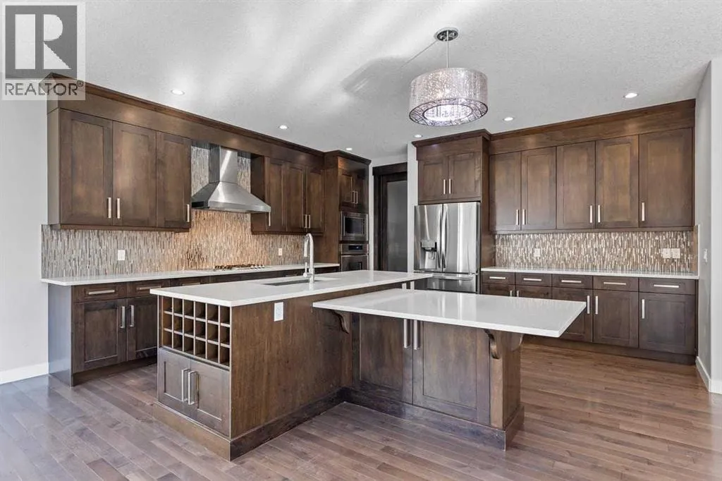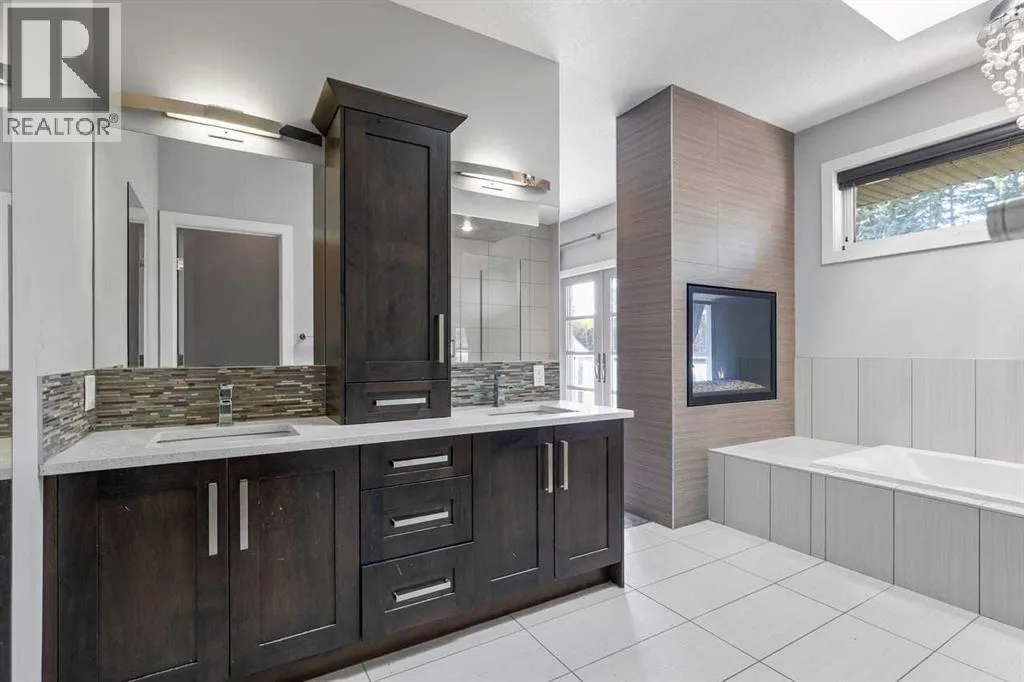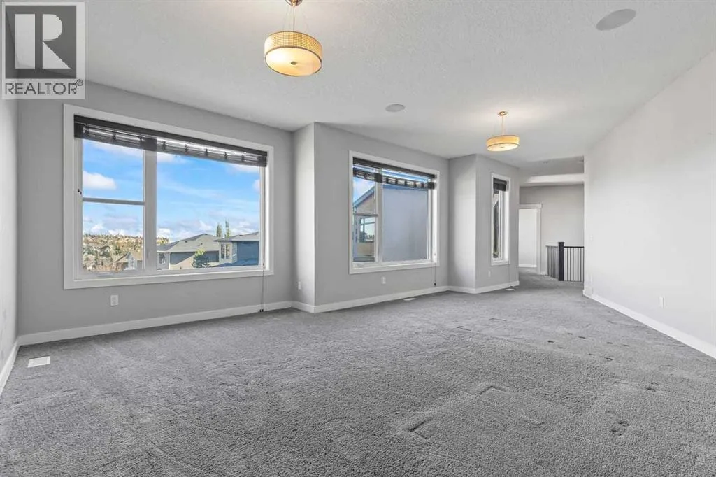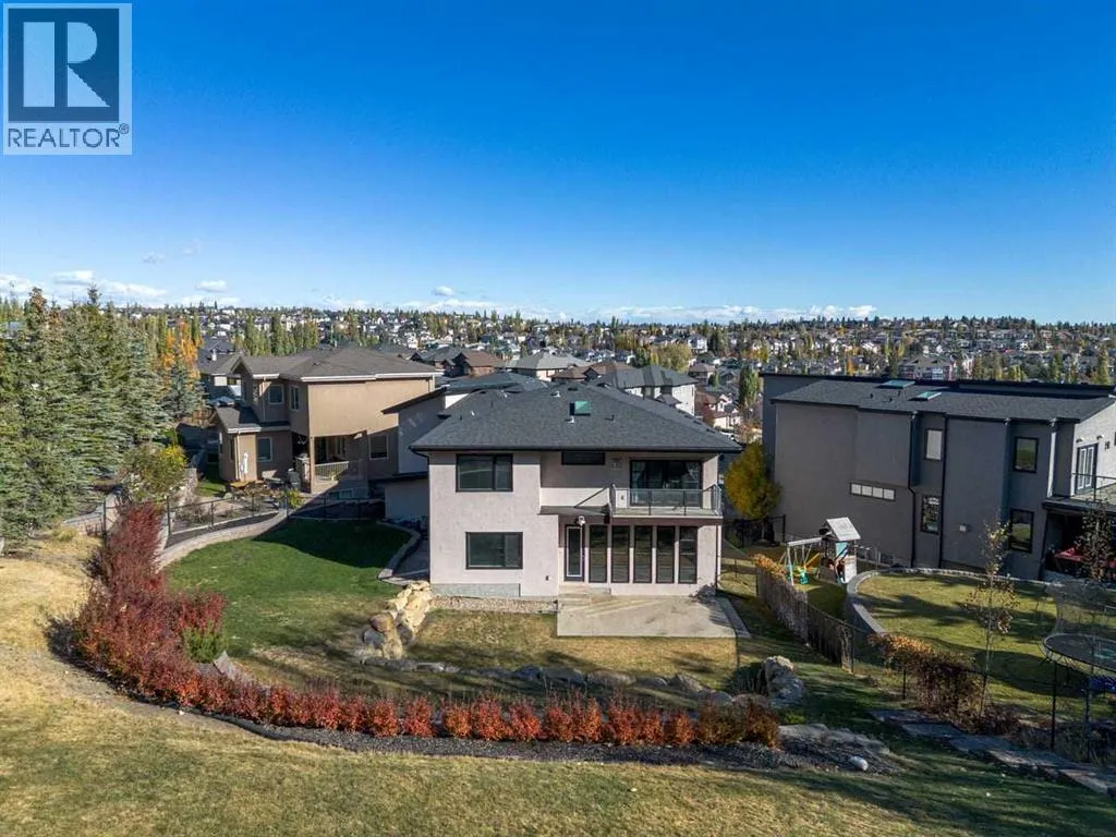 Perfectly situated in a quite cul-de sac in the exclusive community of Springbank Hill, is this magnificent 4700 sq.ft of opulent developed living space on a massive lot. This home encapsulates every detail with 6 bedrooms, 3.5 baths, 2 fireplaces and 9'ceilings on all floors. The main floor offers hardwood throughout, a front office/reading room, vaulted ceilings in the entry way and a formal dining area with custom chandelier. South West facing windows allow boundless natural light in the living room and a fireplace adorned with stylish tile work creates a warm ambiance while entertaining. The chefâs kitchen is outfitted with expansive quartz counter tops, custom cabinets and top of the line stainless Miele cooktops (Induction & gas) and dishwasher, Dacor built in oven and a new oversized LG fridge. The kitchen is thoughtfully designed to include an "Island to table" design and a massive walk-thru pantry. An oversized mudroom provides more closet storage for keeping clutter discrete and the a charming 2-piece bathroom finishes the main floor beautifully. Love sunlight? 2 Skylights keep the second floor bright and airy! The oversized primary bedroom is accented with a 2-way fireplace, large balcony overlooking the estate size yard, a spa ensuite including a jetted soaker tub, sleek shower and a spacious walk-in closet with a secret entry way to the baby's room. The 3rd and 4th bedrooms are well located opposite of the primary for further privacy and comfort. A 5-piece bathroom, laundry room and an oversized bonus room complete the upper floor . The lower level (roughed in in-floor heating) is just as special as the rest of the home which includes 2 bedrooms, 4-piece bathroom, wet bar, an enormous entertainment/ games room and private entry way to the garage. Retreat to your back yard oasis and you will notice the intricate custom stonework and professional landscaping equipped with irrigation and a playground at the top of the hill. Additional features include cen tral air conditioning for year-round comfort, CAT 5 pre-wire throughout and a triple-car tandem garage that offers ample parking and storage. Well situated with easy access to paths, public and private schools (including Rundle, Webber), shopping, restaurants, and transit. Easy access to city core and direct access to the mountains, this is a rare opportunity to own luxury in one of Calgaryâs most desirable communities. Do not miss this opportunity! (id:27476)