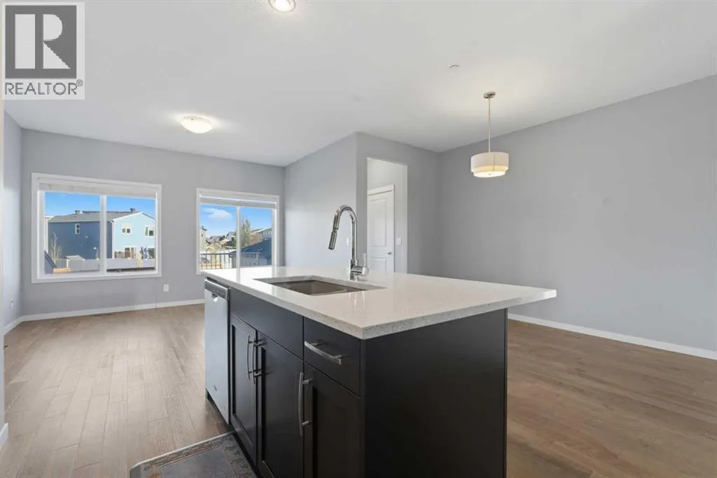 FRONTING ONTO GREEN SPACE | ENCLOSED HOME OFFICE ON THE MAIN FLOOR | FRESH PAINT AND TASTEFUL UPGRADES THROUGHOUT | QUICK POSSESSION AVAILABLE | JUST A 7 MINUTE WALK TO THE LIVINGSTON HUB! This move-in ready home in vibrant Livingston combines modern finishes with a functional family layout in an unbeatable location facing a peaceful green space. A welcoming entryway opens into a bright main level with hardwood floors, large windows and an open floor plan designed for everyday living. An enclosed den just off the foyer provides a quiet and private workspace ideal for remote work or study. The kitchen is a chefâs delight, featuring stainless steel appliances, a central island with seating for casual meals, sleek cabinetry and a walk-in pantry for extra storage. Clear sightlines from the kitchen to the dining and living areas create a seamless flow for entertaining or keeping an eye on the kids. The living room provides a relaxing space with extra windows that fill the home with natural light and warmth. A convenient mudroom connects to the backyard, while a main floor powder room adds everyday practicality. Retreat at the end of the day to the spacious primary bedroom on the upper level offering a large walk-in closet and a 4-piece ensuite for relaxation at dayâs end. Two additional bright bedrooms and another full bathroom complete the upper level, providing comfort and privacy for family or guests. The unfinished basement holds endless potential for future development with ample storage and flexible space to suit your needs. Outside, the fenced backyard offers grassy play space for kids and pets, plus a gravel pad ready for a future double garage, perfect for customizing to your lifestyle. Enjoy the convenience of fronting onto open green space while being just minutes from parks, playgrounds and the incredible Livingston Hub, which features a gymnasium, indoor basketball courts, outdoor skating rink, splash park, skate park, tennis courts and even a summer farmer âs market. With over 250 acres of open space, walking trails and quick access to Stoney and Deerfoot Trails, this growing master-planned community offers an active, connected lifestyle with everything you need close at hand. (id:27476)