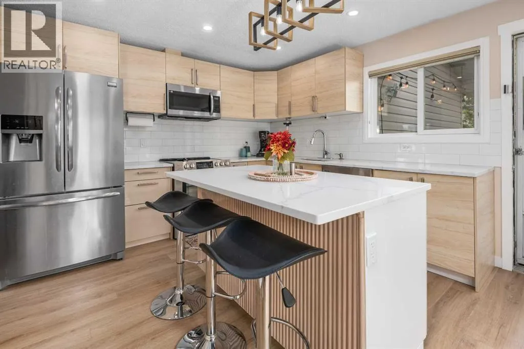 *****Open house this Sunday 2-4pm***** Welcome to this charming bi-level detached family home in the desirable Woodbine community. Step inside to a bright, open living room featuring vaulted ceilings and expansive windows that fill the space with beautiful natural light. The upper level has been upgraded with brand new flooring, classic subway tile backsplash and modern quartz countertop. This stunning home offers 2 bedrooms and 2 bathrooms on the main floor, plus a fully finished basement with an additional bedroom and full bathroom.. The primary bedroom is generously sized and features great size windows that brighten the room with abundant daylight, creating a bright and airy atmosphere, located at the end of the hallway, it serves as a private retreat complete with a 5-piece ensuite bathroom. The second bedroom is conveniently situated nearby, along with an additional full bathroom just outside the door for added convenience. Just off the kitchen, you'll find a beautiful deck that's perfect for entertaining, along with a spacious backyard ideally for children to play and families to enjoy outdoor time together. This property also offers exceptional convenience with a double attached garage at the front of the home for easy access. In addition, there is an extra parking space at the back that can also be used as a RV parking, ideal for families with multiple vehicles or those who love to travel and explore. A private entrance to the basement making it a fantastic bonus that offers a full kitchen, large windows, a cozy living room and a good sized bedroom. It also includes a full bathroom and its own furnace for independent temperature control. This home is made for family memories from bedtime stories to birthday celebrations. The only thing better than owning this beautiful home is sharing it with the ones you love. Welcome home! (id:27476)