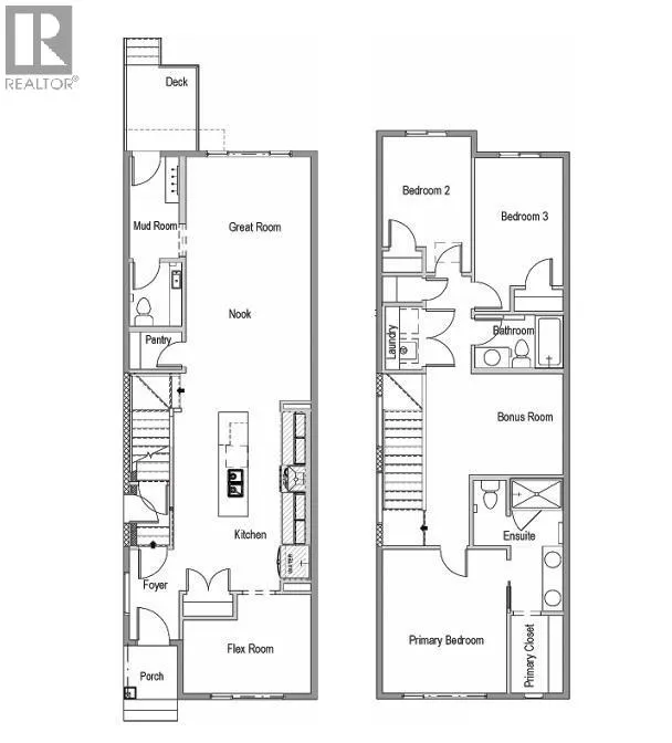 Step inside and feel it - that rare mix of calm sophistication and instant comfort. This stunning paired home in Rockland Park was designed for the way modern families truly live: open, elegant, and filled with natural light. Every detail has been carefully selected, from the warm oak flooring underfoot to the crisp white shaker cabinetry and soft quartz countertops that define the heart of the home. The kitchen is the showpiece - bright, functional, and beautifully connected to the dining nook and great room beyond. A generous island invites family and friends to gather, while the walk-in pantry keeps everything organized behind the scenes. Step through sliding doors to the rear deck, where evenings are made for barbecues, sunsets, and unwinding after a long day. The main floor offers a great sized flex room making the perfect study/office, kids play room, reading room, etc. Upstairs, the layout was designed for both connection and retreat. The primary suite feels like a private sanctuary with its spa-inspired ensuite - dual sinks, glass shower, and a walk-in closet that makes mornings effortless. The bonus room offers a versatile family hub, flanked by two additional bedrooms, a full bath, and a conveniently located laundry room. What truly sets this home apart is its separate side entrance and suite-ready basement, already roughed in for a future secondary suite (subject to city approval & permit). Itâs a smart investment in flexibility - whether you dream of a place for guests, rental income, or multi-generational living. Throughout, the design strikes a perfect balance between modern minimalism and everyday warmth. The combination of light cabinetry, natural wood tones, and soft greige finishes creates a timeless look that feels fresh, bright, and inviting. Located in the highly sought-after community of Rockland Park, youâll enjoy the perfect blend of nature and convenience - with river pathways, parks, and future retail amenities just steps from your door. Th is is more than just a home; itâs where style meets substance, where design meets function, and where every day feels a little more elevated. Book your private showing today and experience the lifestyle waiting for you in Rockland Park. (id:27476)