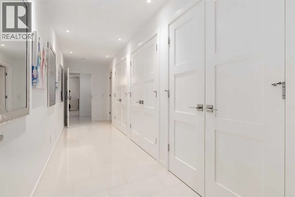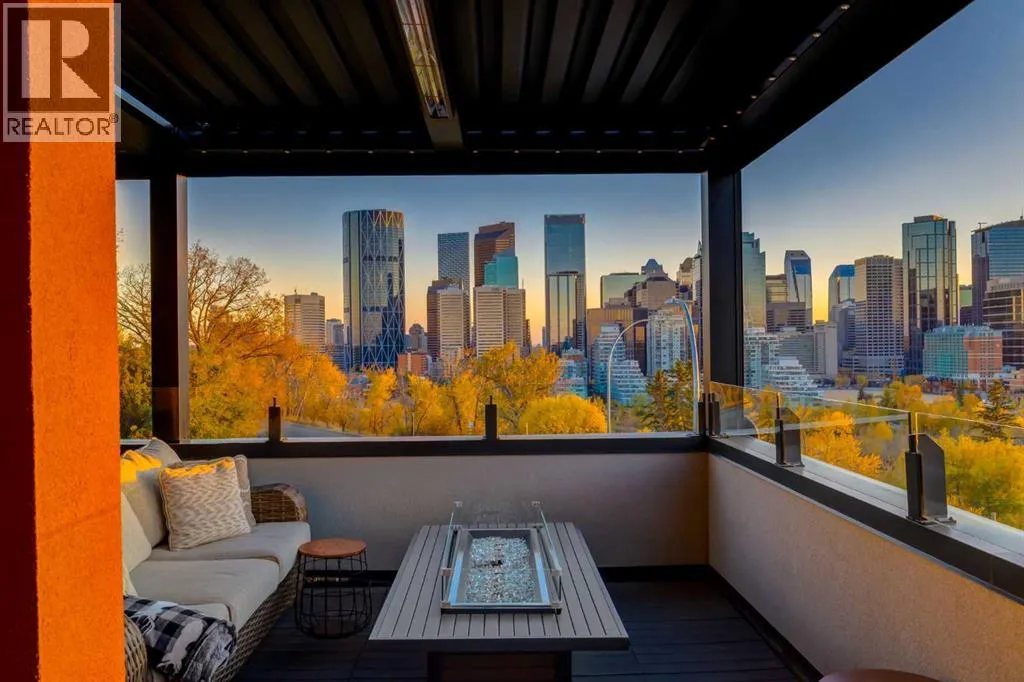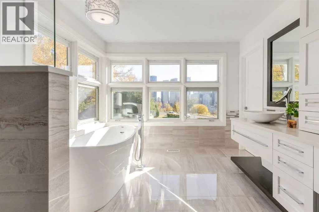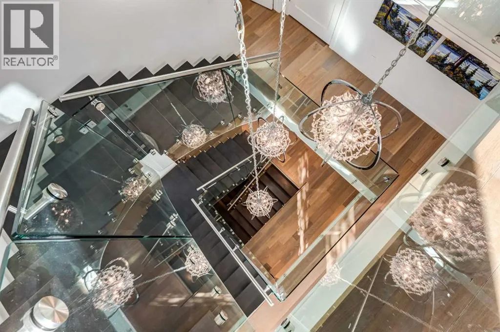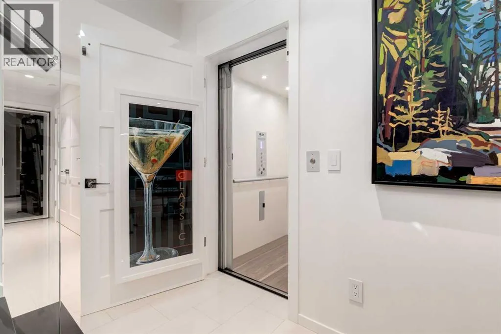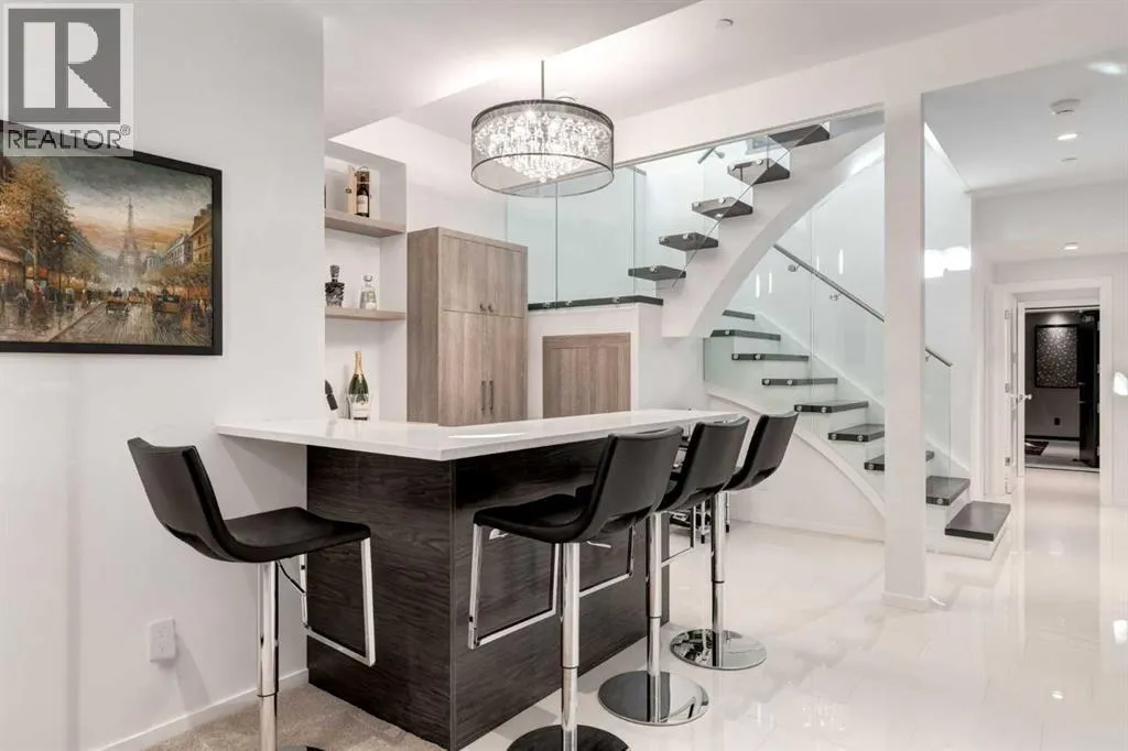 The View at the Edge embodies modern architecture at its peakâframing Calgaryâs downtown skyline, Bow River & Rocky Mountain views from every level while uniting precision design, comfort & function across nearly 8,000 sqft of refined living. A sculptural façade opens to soaring spaces anchored by 2 elegant fireplacesâa wood-burning hearth welcoming guests near the front and a gas feature wrapped in contemporary stone at the rear. From the front entry, wide-plank engineered hardwood guides you through the chefâs kitchen, where Miele appliances, steam & speed ovens, built-in espresso bar, dual dishwashers & a waterfall quartz island set the stage for culinary artistry. The kitchen flows naturally into the dining area, which opens through bifold glass doors to a heated patioâa private, low-maintenance extension of the living space designed for effortless entertaining and relaxation. Upstairs, the primary bedroom commands the homeâs most breathtaking vantageâfloor-to-ceiling windows framing the Bow River, downtown skyline & Rocky Mountains in one sweeping view. Dual dressing rooms & a spa ensuite w/ heated floors, freestanding tub & glass shower w/ steam system complete the retreat. 2 additional bedroomsâone concealing a soundproof, secure safe walk-in closet behind disguised shelvingâshare a full bath & a luxurious laundry room w/ extensive cabinetry, quartz counters & sink. Throughout the baths, sculptural faucets and fixtures elevate every detail. The top level blends productivity & leisure: a bonus room, 2 offices, a wet bar beside a corner library, and a rooftop terrace engineered for four-season comfort. Retractable screens, adjustable louvres, built-in heaters & gas line transform it into an outdoor living room showcasing one of the best views in Crescent Heightsâa triple panorama of city, river & mountains few properties can match. Below grade, discover a soundproof music studio w/ double doors; a gym, office, recreation lounge & bar, each warmed by hydronic in -slab radiant heating powered by an efficient boiler system. A 2nd laundry area, extra refrigeration & dedicated storage (incl. a locked storage room) deliver everyday practicality to match the homeâs grandeur.A vaulted legal suite above the garage offers full kitchen, bedroom w/ walk-in closet, 5-pc bath, laundry & private elevatorâideal for guests, in-laws or a nanny. Elevators serve every level, & a heated, fully integrated tunnel links the residence to the detached triple garage - so seamless you hardly realize youâve left the home. Engineered for longevity & ease: poured-concrete foundation, insulated envelope, triple-pane glazing, multiple high-efficiency furnaces, HRV ventilation, Lutron smart lighting & a heated driveway to keep winters effortless. A fire-sprinkler system adds peace of mind equal to the beauty. From its triple-panoramic views to its hidden engineering brilliance, The View at the Edge is Calgaryâs signature statement of modern luxury. Inquire directly for your private showing. (id:27476)