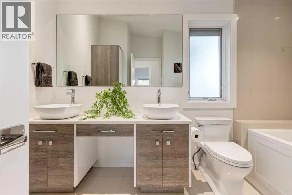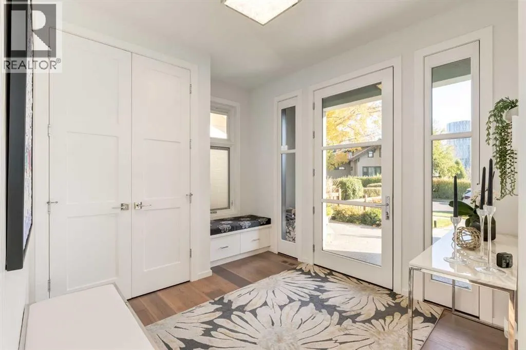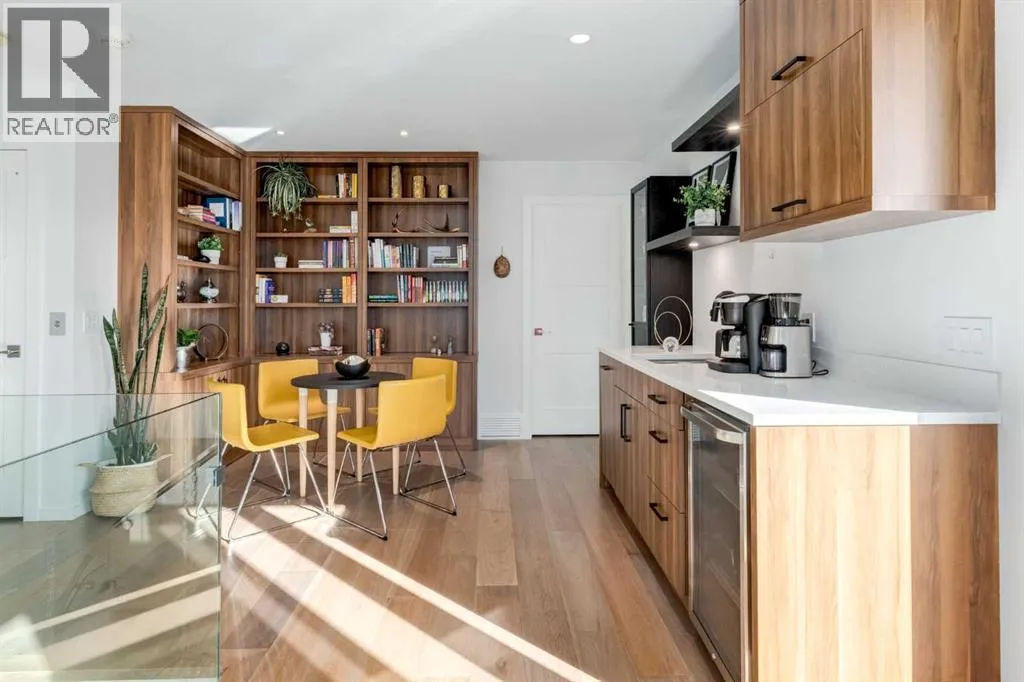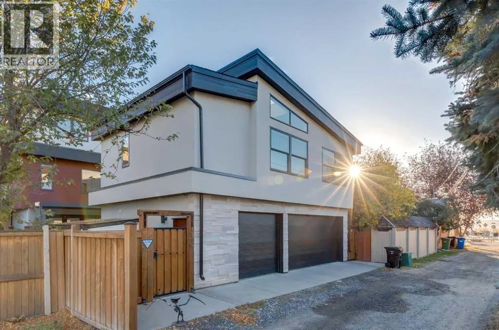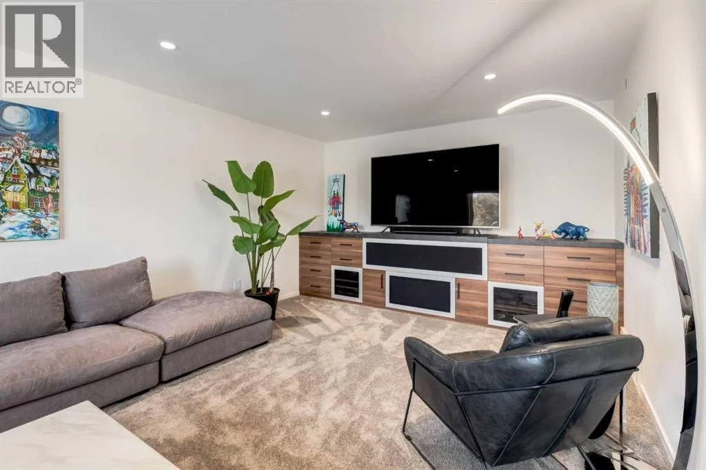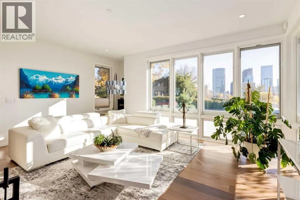 The View at the Edge embodies modern architecture at its peakâframing Calgaryâs downtown skyline, Bow River & Rocky Mountain views from every level while uniting precision design, comfort & function across nearly 8,000 sqft of refined living. A sculptural façade opens to soaring spaces anchored by 2 elegant fireplacesâa wood-burning hearth welcoming guests near the front and a gas feature wrapped in contemporary stone at the rear. From the front entry, wide-plank engineered hardwood guides you through the chefâs kitchen, where Miele appliances, steam & speed ovens, built-in espresso bar, dual dishwashers & a waterfall quartz island set the stage for culinary artistry. The kitchen flows naturally into the dining area, which opens through bifold glass doors to a heated patioâa private, low-maintenance extension of the living space designed for effortless entertaining and relaxation. Upstairs, the primary bedroom commands the homeâs most breathtaking vantageâfloor-to-ceiling windows framing the Bow River, downtown skyline & Rocky Mountains in one sweeping view. Dual dressing rooms & a spa ensuite w/ heated floors, freestanding tub & glass shower w/ steam system complete the retreat. 2 additional bedroomsâone concealing a soundproof, secure safe walk-in closet behind disguised shelvingâshare a full bath & a luxurious laundry room w/ extensive cabinetry, quartz counters & sink. Throughout the baths, sculptural faucets and fixtures elevate every detail. The top level blends productivity & leisure: a bonus room, 2 offices, a wet bar beside a corner library, and a rooftop terrace engineered for four-season comfort. Retractable screens, adjustable louvres, built-in heaters & gas line transform it into an outdoor living room showcasing one of the best views in Crescent Heightsâa triple panorama of city, river & mountains few properties can match. Below grade, discover a soundproof music studio w/ double doors; a gym, office, recreation lounge & bar, each warmed by hydronic in -slab radiant heating powered by an efficient boiler system. A 2nd laundry area, extra refrigeration & dedicated storage (incl. a locked storage room) deliver everyday practicality to match the homeâs grandeur.A vaulted legal suite above the garage offers full kitchen, bedroom w/ walk-in closet, 5-pc bath, laundry & private elevatorâideal for guests, in-laws or a nanny. Elevators serve every level, & a heated, fully integrated tunnel links the residence to the detached triple garage - so seamless you hardly realize youâve left the home. Engineered for longevity & ease: poured-concrete foundation, insulated envelope, triple-pane glazing, multiple high-efficiency furnaces, HRV ventilation, Lutron smart lighting & a heated driveway to keep winters effortless. A fire-sprinkler system adds peace of mind equal to the beauty. From its triple-panoramic views to its hidden engineering brilliance, The View at the Edge is Calgaryâs signature statement of modern luxury. Inquire directly for your private showing. (id:27476)