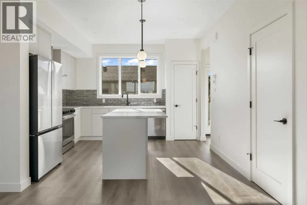 Welcome to your brand-new home in the sought-after community of Belvedere! This beautiful Irvine floor plan, crafted by Fifth Avenue Homes, offers 3 bedrooms, 2.5 bathrooms, and 1,472 sq. ft. of thoughtfully designed, open-concept living and itâs complete and ready for flexible possession.This premium end-unit townhome (with no condo fees) sits on a lane-access lot and includes a double detached garage. The bright, modern main floor features stylish finishes, a spacious living and dining area, and a well-appointed kitchen perfect for family living or entertaining. Upstairs, youâll find three generous bedrooms, including a primary bedroom with a walk-in closet and private ensuite bathroom.The unfinished basement offers a roughed-in 3-piece bathroom, giving you the flexibility to customize your future living space or add an in-law suite.Located just minutes from East Hills Shopping Centre, Calgaryâs Rapid Bus Service, and with quick access to Stoney Trail, this home offers the perfect balance of suburban tranquility and urban convenience. With parks, a future school, and community amenities nearby, Belvedere continues to be one of Calgaryâs most exciting and fast-growing neighbourhoods.Move in today and experience the perfect blend of comfort, quality, and convenience in Calgaryâs vibrant Belvedere community! (id:27476)