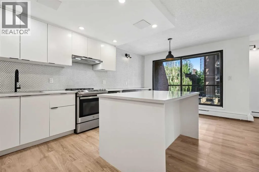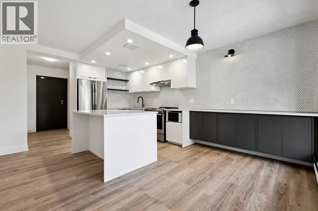RENOVATIONS and UPDATES JUST COMPLETED! This home is turnkey and ready for you to move in! This 2 bedroom/1 bath home comes with an OVERSIZED large balcony for entertaining. Leave your car at home! Walk everywhere! Beautiful open floorplan with space to spread out. This home features a designer kitchen that will thrill the chef in the family. Stainless steel appliances and quartz countertops. Newly installed vinyl plank flooring and newly painted throughout. Newly renovated bathroom with full height tile shower surround, new vanity, toilet and tile flooring. In-suite laundry is included! PETS WELCOME! Assigned parking stall included. Onsite Fitness Room, Sauna, secure bike storage, party room and additional shared laundry. A must see property! Book your appointment today!! (id:27476)