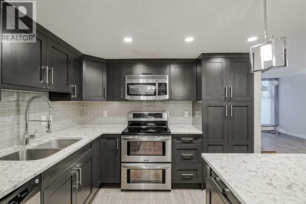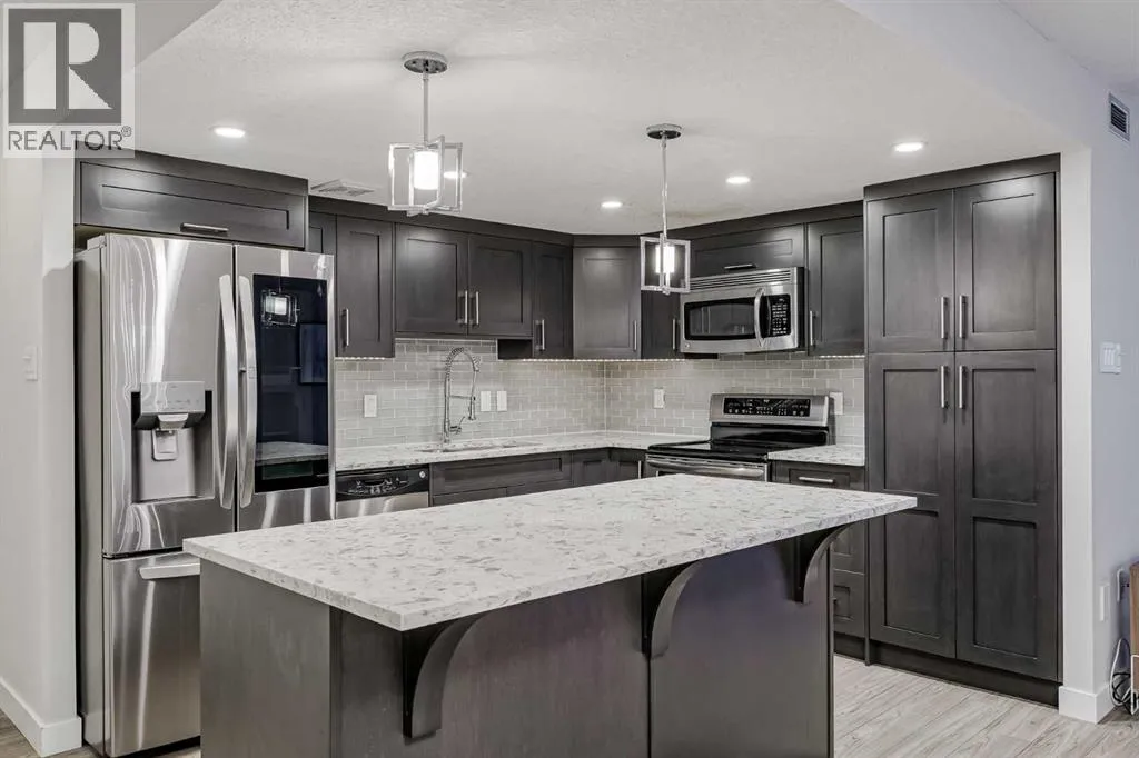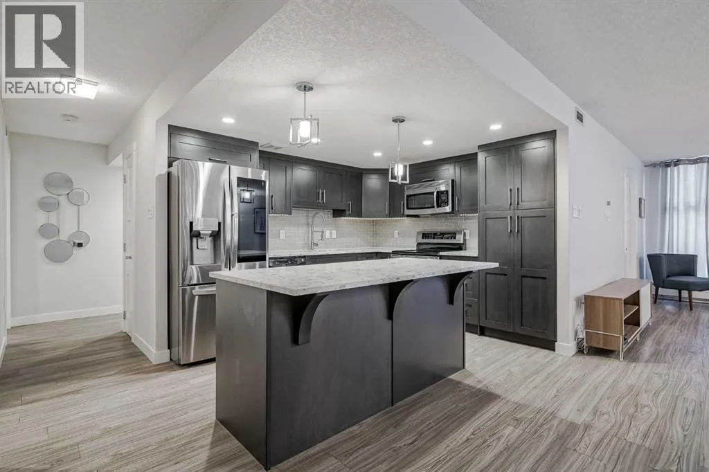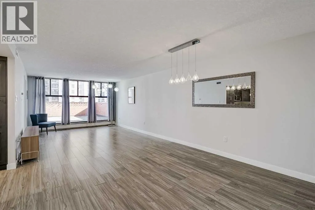 Experience urban living at its finest in the heart of downtown Calgary with this spacious, single-level apartment. Stunning 2-bedroom, 2-bathroom residence has been fully renovated, offering an expansive, open-concept layout that seamlessly blends comfort and style, making it an ideal retreat for young professionals or those seeking to downsize without compromising on space or luxury.From the moment you enter, you are greeted by the openess of the condo. Laminate flooring which extends throughout the main living areas, creating a modern yet cozy feel. Expansive windows flood the space with natural light and frame breathtaking views of Calgary's downtown skyline, creating a spectacular backdrop for quiet evenings and entertaining guests alike. The spacious living and dining areas flow effortlessly into a renovated kitchen with high-end stainless steel appliances, perfect for hosting dinners or casual gatherings.One of this home's most remarkable features is its amazing 735-square-foot private deck, a truly exceptional outdoor living space that offers a magnificent extension of the indoor living area.Each of the two generously sized bedrooms provides a private sanctuary for relaxation. The primary bedroom has brand-new carpet installed in August 2025 for added comfort. The primary suite features an ensuite bathroom for added convenience. Both bathrooms are elegantly designed with high-end finishes, offering a spa-like retreat.The luxury continues with the buildingâs world-class amenities, including an indoor pool, hot tub, and sauna for unwinding after a long day. Fitness enthusiasts will appreciate the squash/racquetball court and a well-equipped gym, while a games room provides leisurely entertainment. With 24-hour security and concierge services, your comfort and safety are always a top priority. (id:27476)
