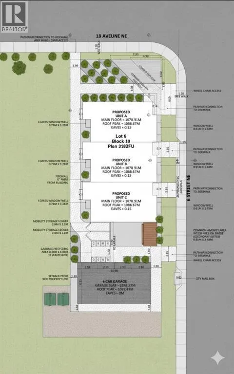 Prime Development Opportunity - Approved Triplex in Winston Heights/Mountview. Turnkey Development Ready for ConstructionRare opportunity to acquire a fully-approved development permit for a 3-unit rowhouse complex with legal secondary suites on a prime corner lot. This shovel-ready project offers exceptional value in one of Calgary's most desirable inner-city communities.Approved Unit SpecificationsThree Luxury Rowhouses - Each unit approximately 2,536-2,540 sq ft 4 Bedrooms | 3.5 Bathrooms | 4 LevelsLower Level: Legal secondary suite with bedroom, full bath, living area & mechanical roomMain Floor: Open-concept living/dining, kitchen with island, powder room, suite foyerUpper Floor: Two bedrooms, full bathroom, private terrace (135 sq ft)Penthouse: Master suite with walk-in closet & ensuite, family room, mechanical roomKey Development FeaturesFour-Car Heated Garage with individual overhead doorsTotal 6 Units: 3 main homes + 3 legal secondary suitesSolar-Ready with conduit infrastructureEV Charging Capable (40A, 240V circuits)Contemporary Design: Architectural panels, stucco, metal accentsEnergy Efficient: Spray foam insulation, 2-hour firewall separationPrime contender for MLI Select - favorable financing potentialPrime Corner LocationDual frontage on 6 Street NE & 18 Avenue NE (collector road)Minutes to downtown CalgaryWalking distance to amenities, transit, parks & schoolsEstablished, walkable community with characterDevelopment DetailsTotal Building Area: 7,614 sq ftDensity: 59.51 units/hectare (optimal)Parking: 4 stalls (exceeds requirements)Zoning: R-CG (Residential Grade-Oriented Infill)Perfect ForDevelopers & builders seeking turnkey inner-city projects | Investors wanting premium rental income | Those capitalizing on Calgary's strong housing marketWhy This ProjectApproved & Ready: Development Permit approved - skip months of planningRevenue Potential: 6 units generate strong cash flowModern Design: Meets demand for mul ti-level urban housingFuture-Ready: Solar & EV infrastructure includedFinancing Advantage: Strong MLI Select candidate for optimal termsComplete architectural drawings, engineering reports, and city approvals included. Existing structures to be removed per approved plans.Complete development permit packages and project details! (id:27476)