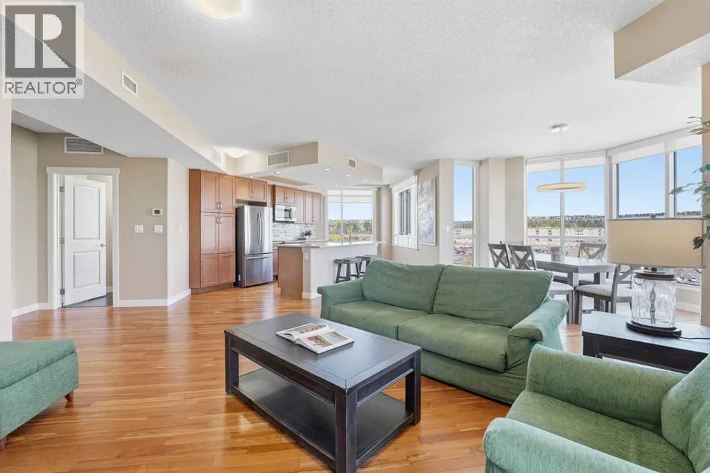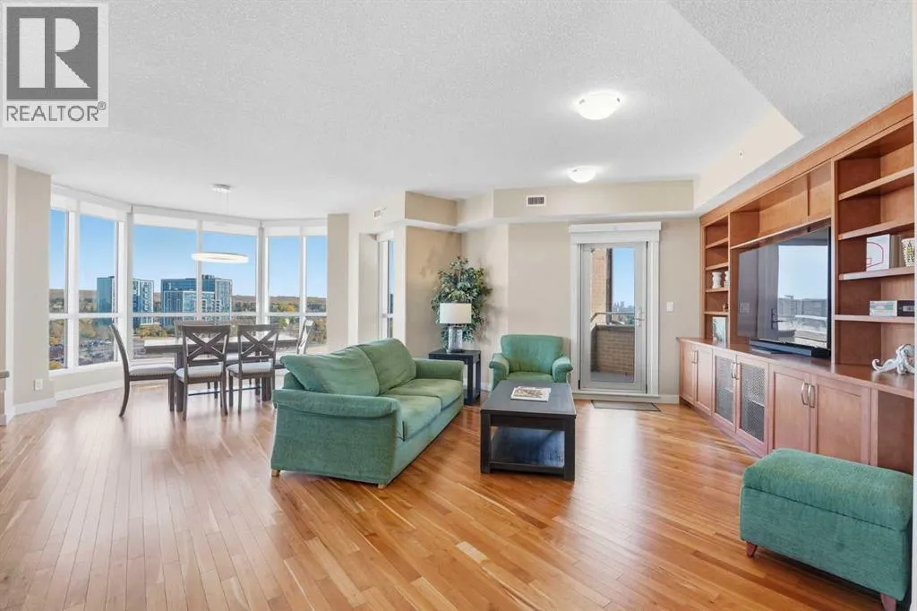*OPEN HOUSE: SUNDAY NOV 16, 11AM-1PM* A rare opportunity to own a luxury residence at The Groves of Varsityâone of Calgaryâs most distinguished steel and CONCRETE condominium buildings. This 10TH-FLOOR unit offers unobstructed DOWNTOWN VIEWS, soaring 10-FOOT CEILINGS, and elevated finishings throughout. Step inside to discover EXPANSIVE WINDOWS that fill the home with natural light, and HARDWOOD flooring that flows seamlessly through the open layout. The modern kitchen is both functional and refined, featuring QUARTZ countertops, ample cabinetry, a large CENTRAL ISLAND, and premium stainless-steel appliancesâperfect for everyday living or entertaining. The living and dining area opens to a spacious private balcony, ideal for morning coffee or evening sunsets over the city skyline. The primary suite offers generous proportions, a WALK-IN CLOSET, and a well-appointed ensuite bathroom. The second bedroom is full-sized and enjoys DOWNTOWN views right from your window, providing an inviting space for yourself, family or guests. A separate den adds versatilityâperfect for a home office, hobby area, or additional storage. This home includes AIR CONDITIONING, TWO TITLED UNDERGROUND PARKING STALLSâSIDE BY SIDEâplus a dedicated STORAGE LOCKER. Comfort is ensured year-round with solid CONCRETE construction providing superior soundproofing and peace of mind. Residents enjoy access to exclusive rooftop amenities, including a fully equipped fitness centre, steam rooms, ownersâ lounge, and a large terrace with BBQsâperfect for entertaining or relaxing in every season. The adjacent professional building adds everyday convenience with a pharmacy, medical and dental offices, and two coffee shops right next door. Located within walking distance of groceries, restaurants, shopping, banks, and the LRT, this is a rare opportunity to own a high-floor residence in one of Calgaryâs most sought-after and well-managed communitiesâcombining luxury, lifestyle, and location in one exceptional pa ckage. (id:27476)