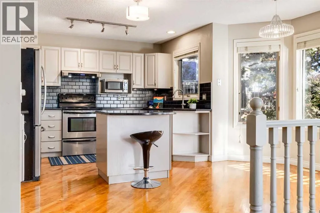 OPEN HOUSE SUNDAY, NOVEMBER 23RD, FROM 2PM TO 4PM. Located in the exclusive area of Sienna Hills Estates and within the community of Signal Hill on Calgaryâs desirable âWest Sideâ, this incredible family home offers four bedrooms, four bathrooms, a double attached garage and a fully finished walk-out basement. Gigantic mature trees and landscaping create a welcoming curb appeal while providing maximum privacy from neighbouring homes. Upon entering, you are welcomed by soaring vaulted ceilings, a âshowpieceâ curved central staircase and formal living and dining room spaces. The well-appointed kitchen boasts stainless steel appliances, including a new dishwasher and hood vent fan, dove grey cabinets, a central granite island and a cozy breakfast nook set into a bay window. The sunken family room is centered around a wood-burning fireplace flanked by custom built-ins and a coordinating mantle. The upper level is adorned with new carpet and offers two large childrenâs bedrooms with a full bathroom. The primary suite boasts plenty of space for a king-sized furniture set, a city skyline view, a spacious walk-in closet and a luxurious ensuite with dual vanities, a glass shower and a jetted corner tub. The lower-level walk-out includes a fourth bedroom with a fabulous luxury office, a full bathroom, a games room with a wet bar and a cozy family room. Enjoy the outdoors on the backyard covered patio, the main floor balcony or the private balcony off the primary suite. Located within walking distance of some of Calgaryâs most desirable schools, restaurants, shops and professional facilities and within a short drive to the downtown core, this well-established neighborhood is the ideal place to raise a family. (id:27476)